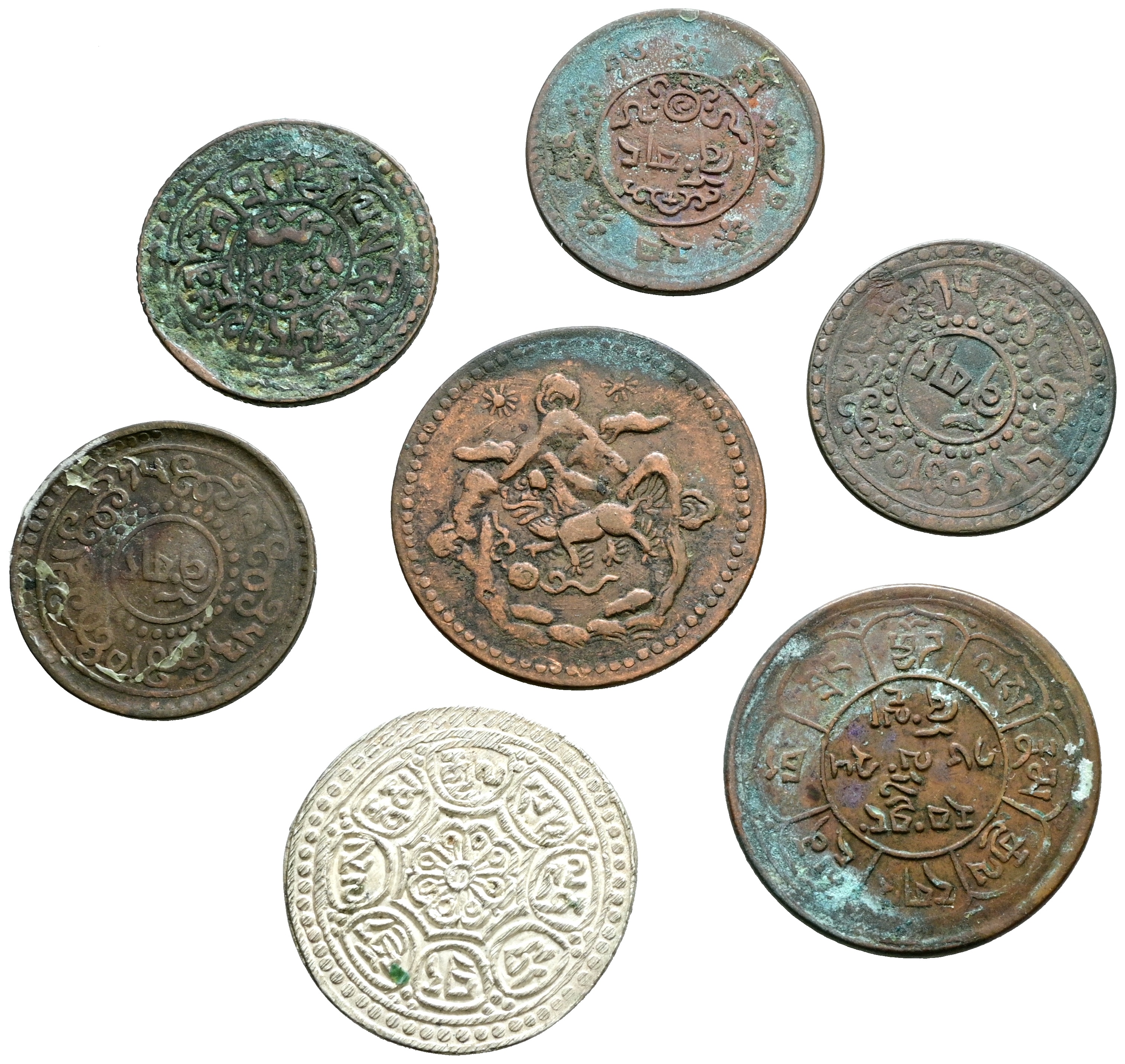 TIBET. Interesante conjunto de 7 monedas de diferentes módulos, épocas así como estados de conservación. A EXAMINAR.