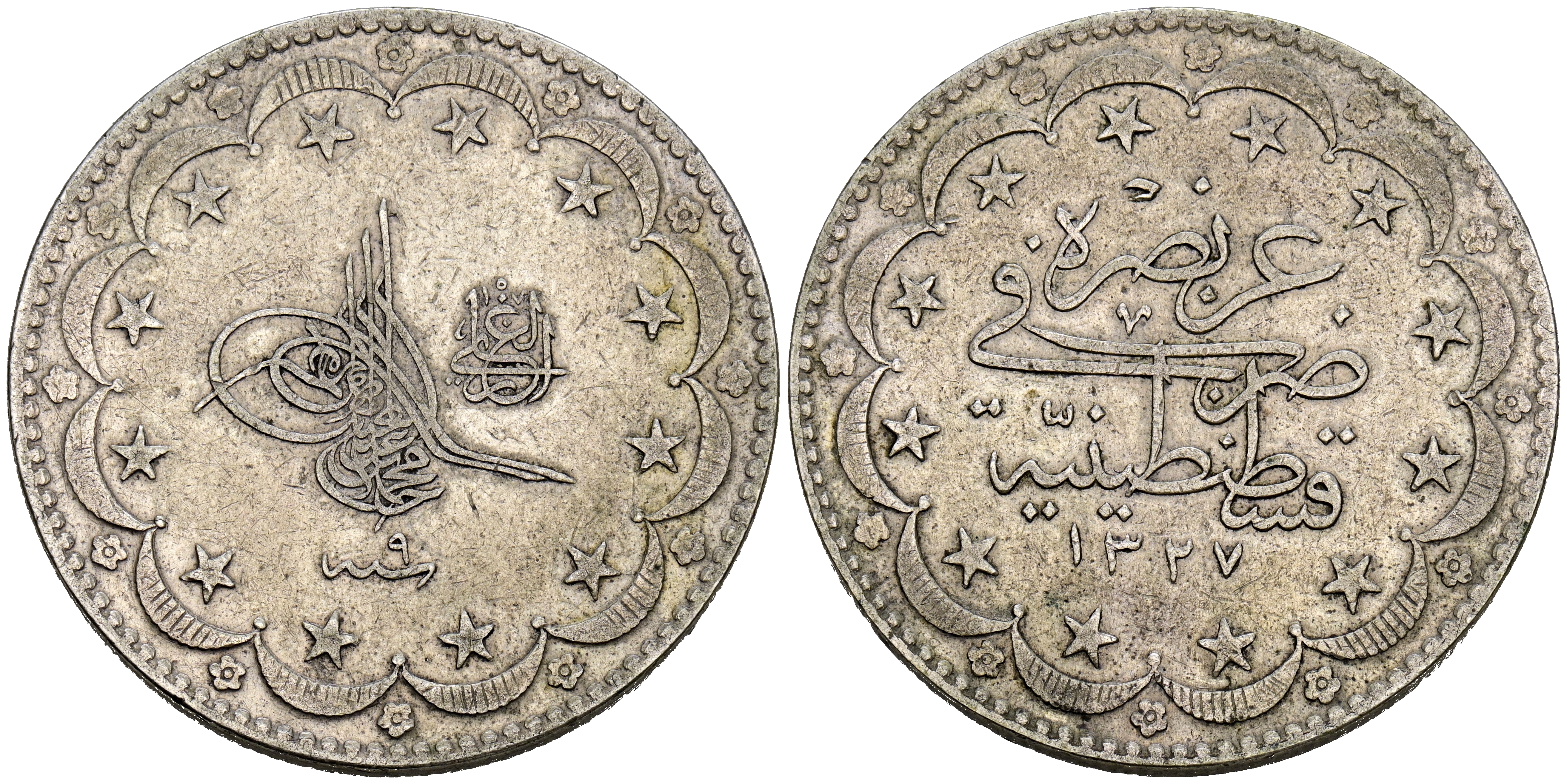 TURQUÍA, Muhammad V. 20 Kurush. (Ar. 23,80g/37mm). 1917. MBC.