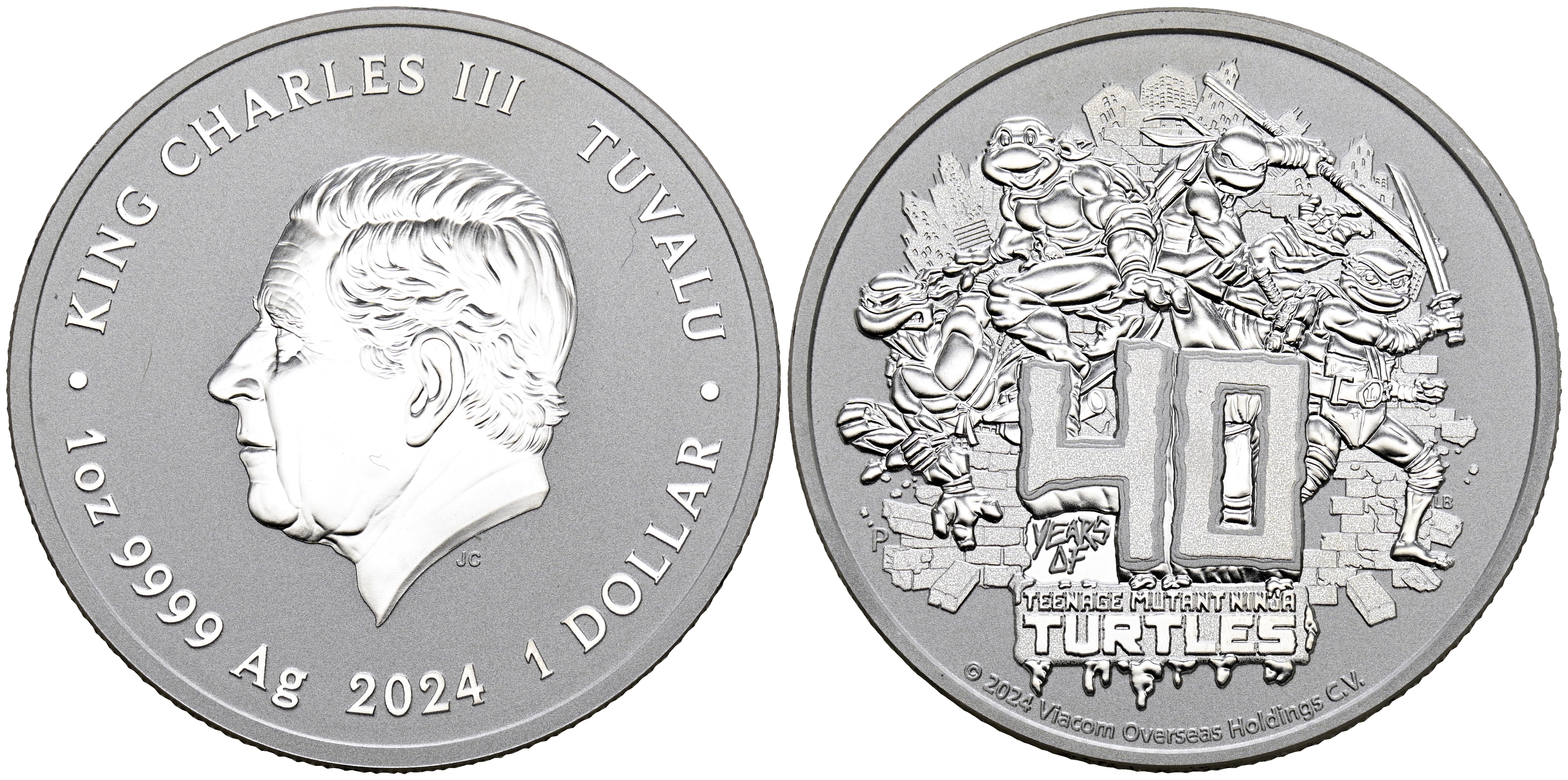TUVALU. 1 Dollar. (Ar. 31,33g/41mm). 2024. Perth. 40 Aniversario de las Tortugas ninjas. SC. Escasa.
