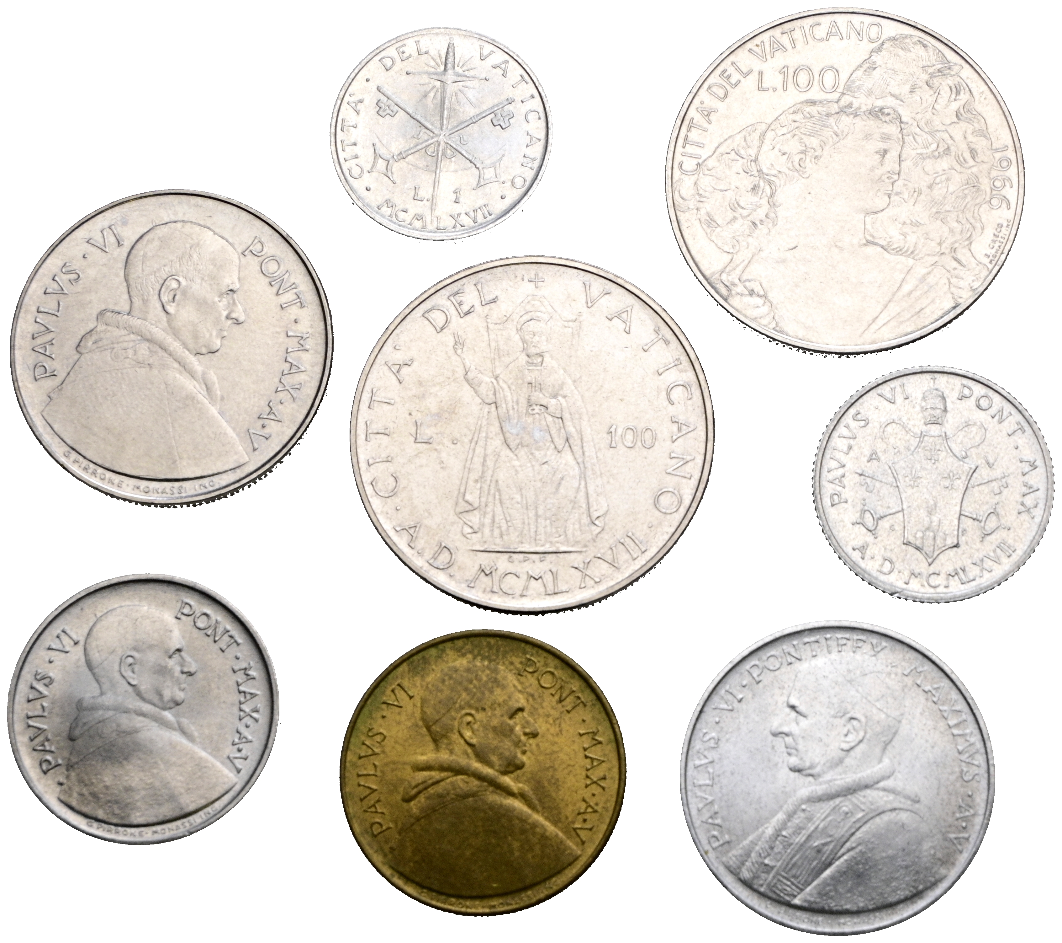 VATICANO. Bonito conjunto de 8 monedas de diferentes módulos, acuñadas bajo el Papado de Pablo VI (1963-1978). Sin piezas repetida. Excelente estados de conservación. A EXAMINAR.