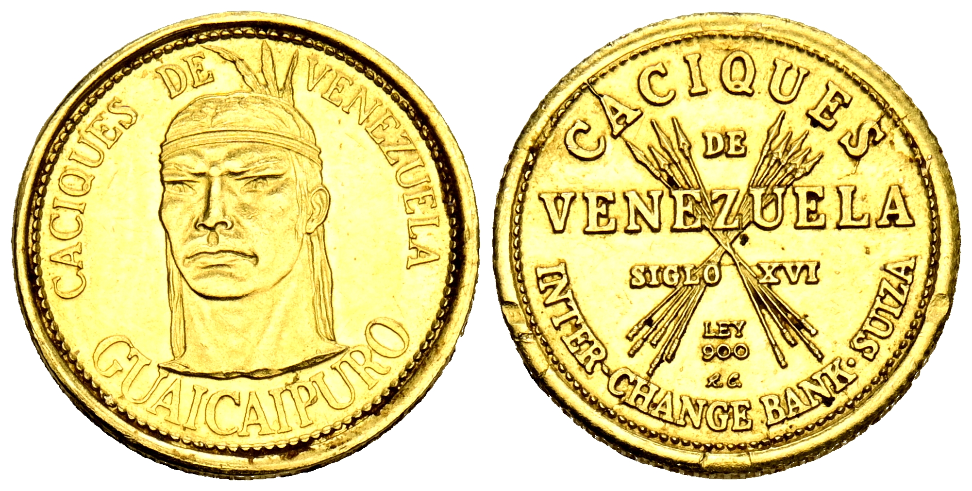 VENEZUELA. Caciques de Venezuela: Guaicaipuro. (Au. 1,48g /14mm). S/D (ca. 1960). MBC+. Muescas en reverso.