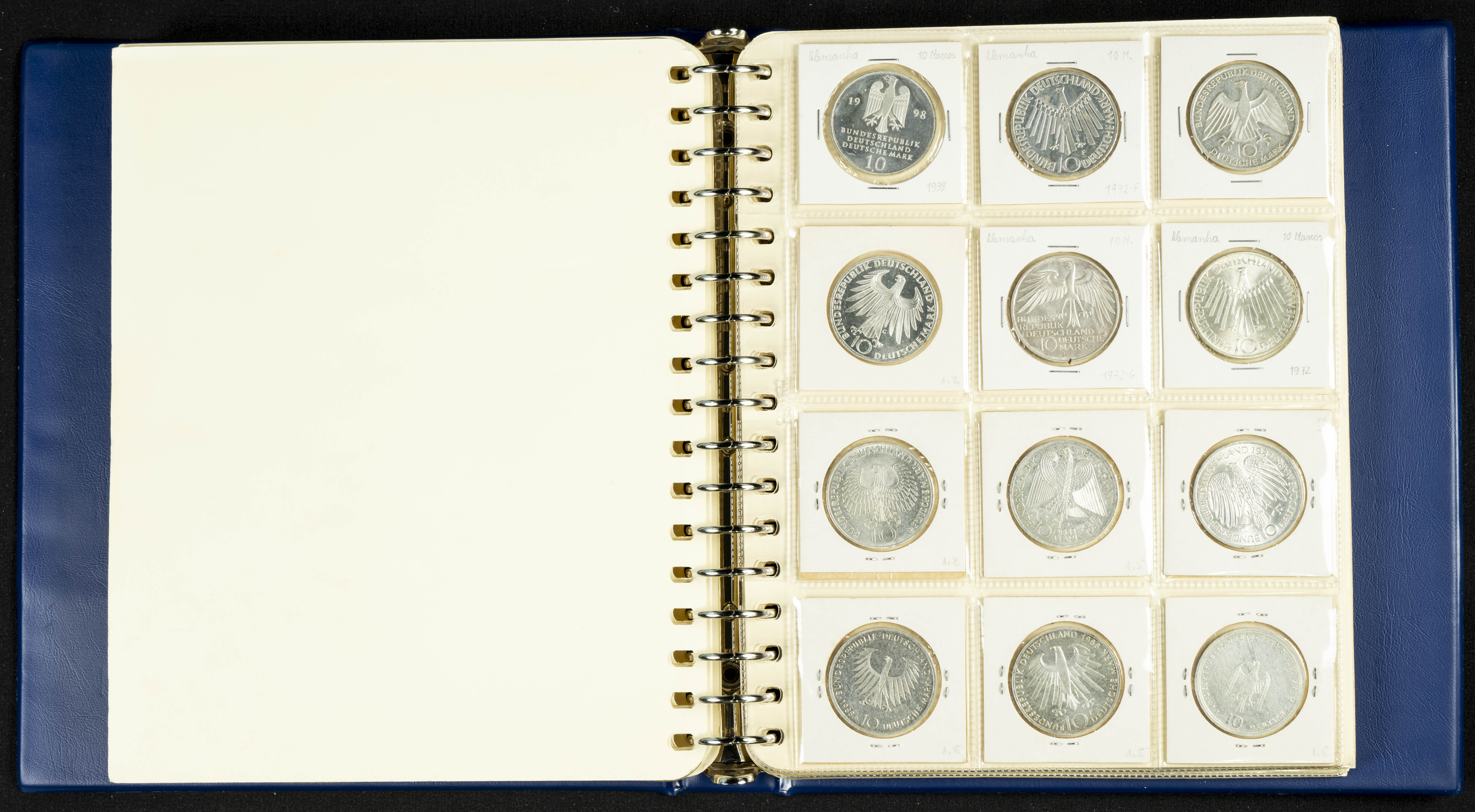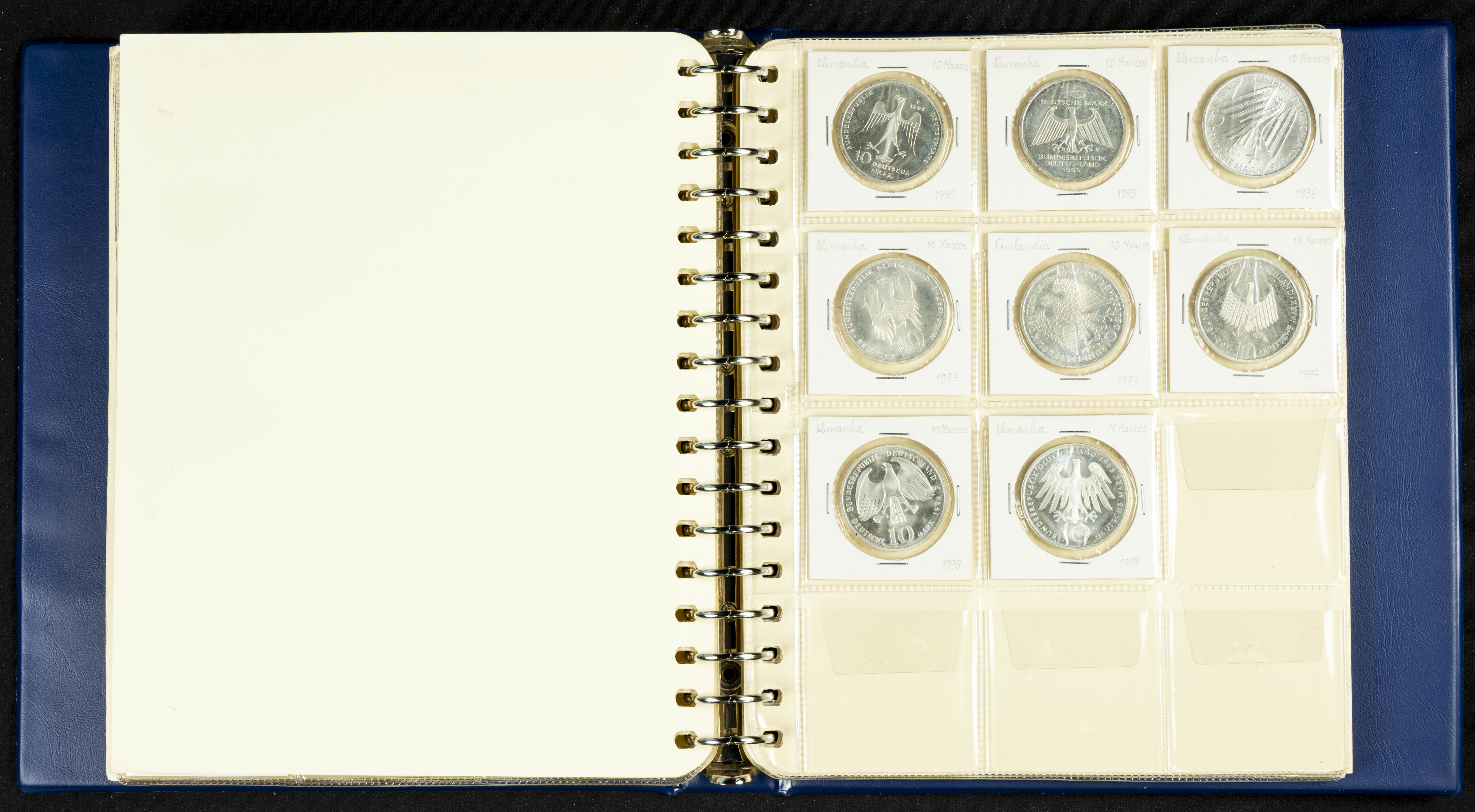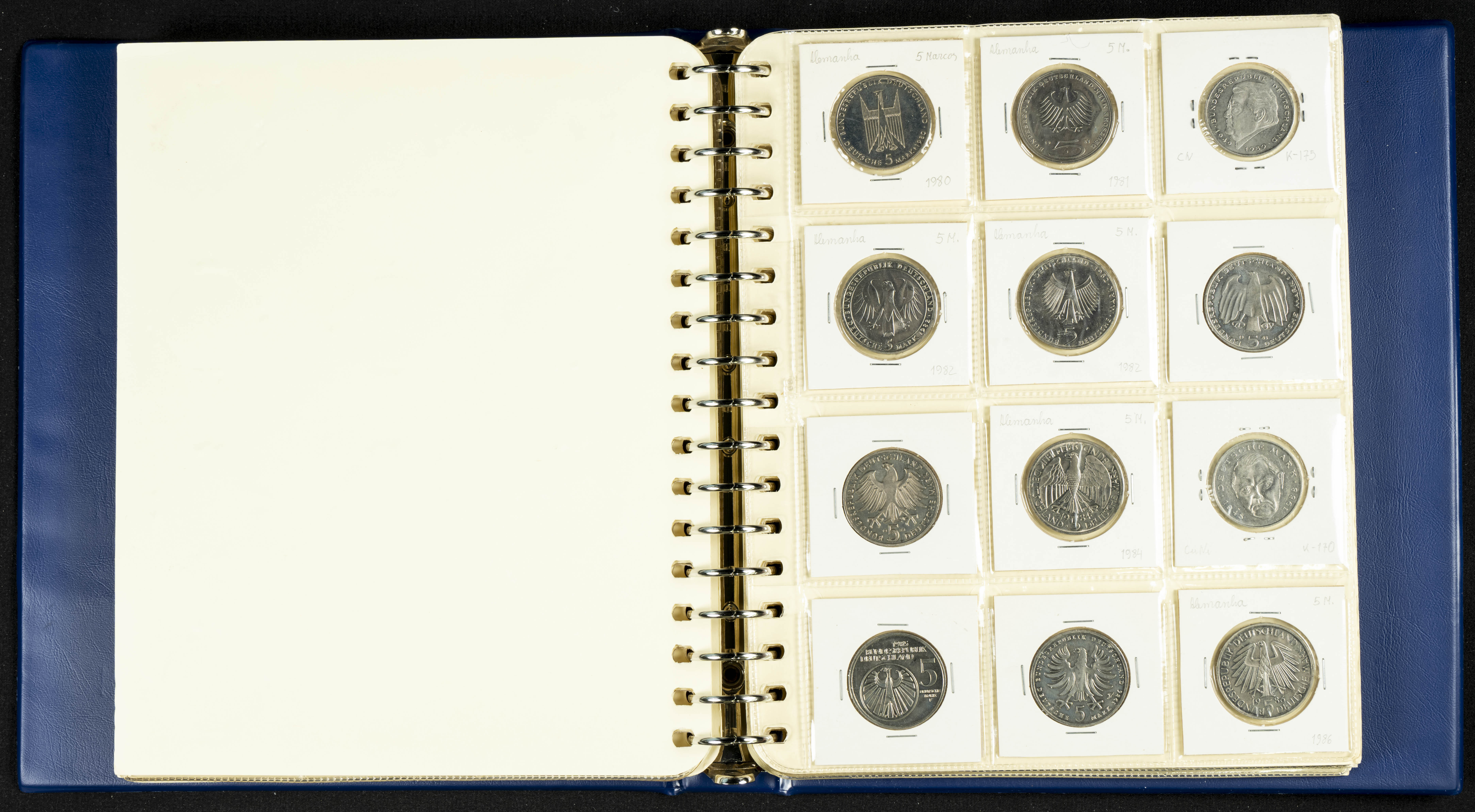 MONEDAS EXTRANJERAS. Magnífica colección de centenares de monedas, principalmente del siglo XX, expuesta en 9 álbumes y que incluye algunos set/estuches. Gran cantidad de países representados de los cinco continentes destacando especialmente Alemania con una gran cantidad de piezas en plata de los módulos de 5 y 10 Mark. Diferentes estados de conservación. A EXAMINAR.