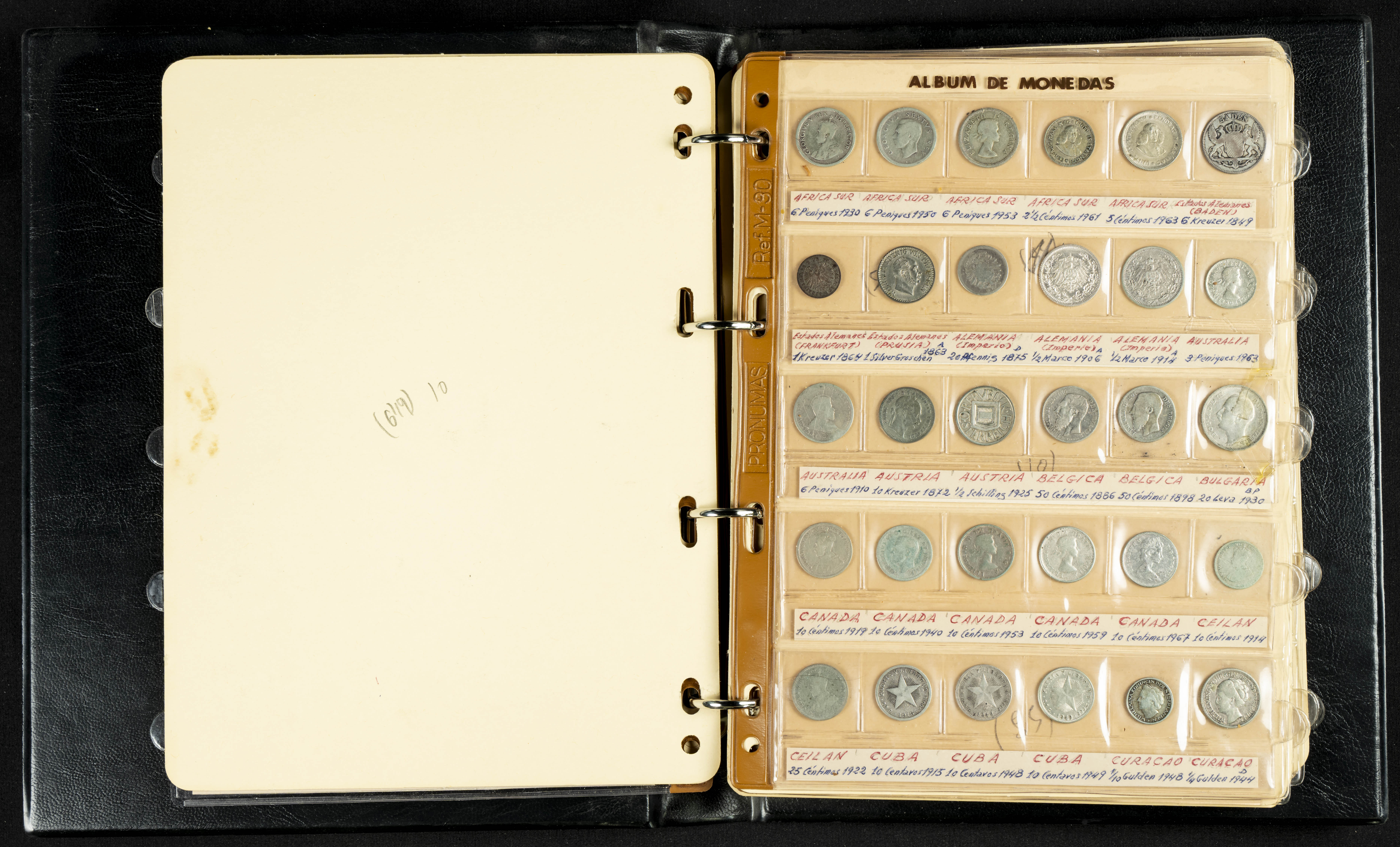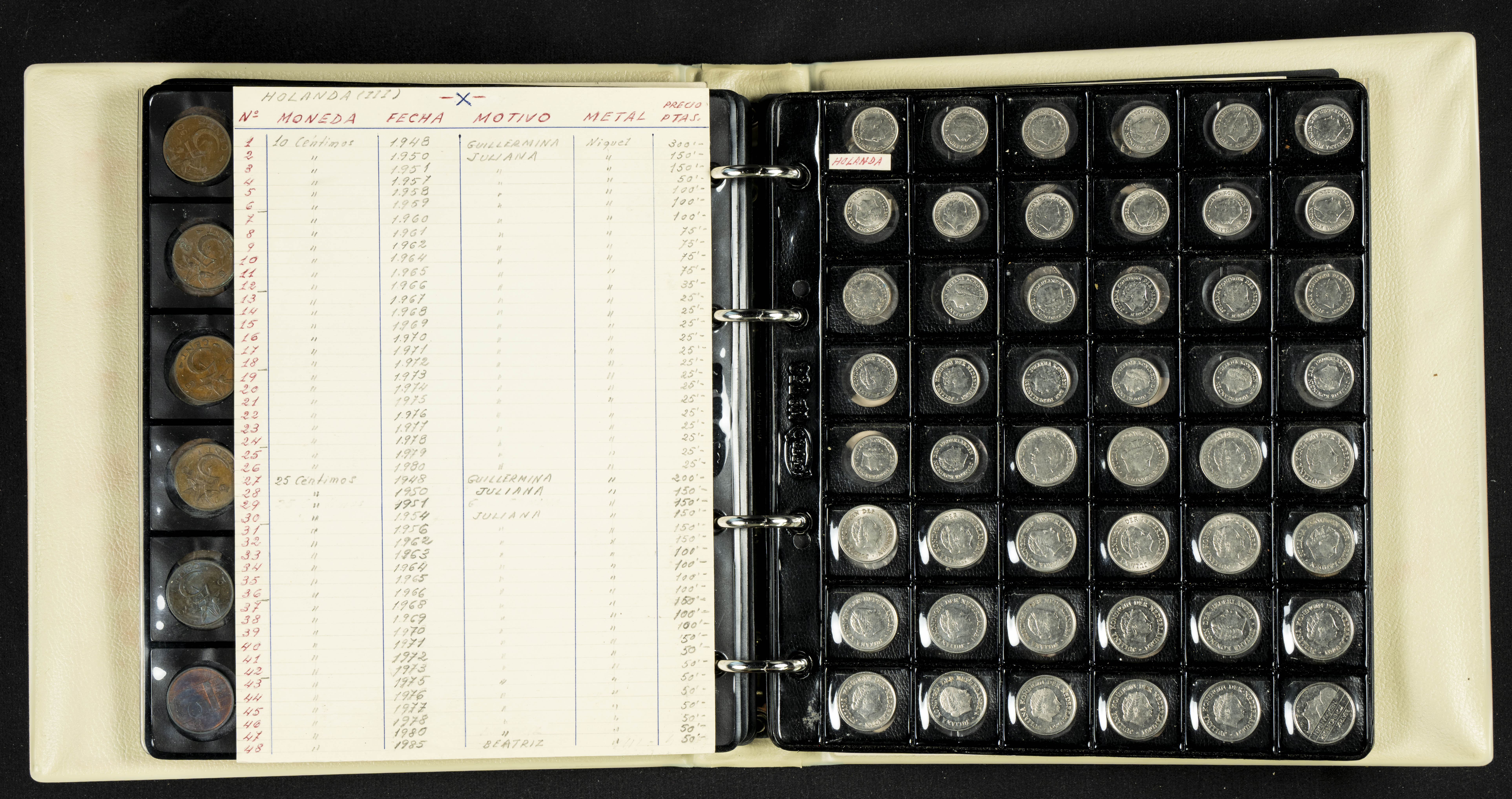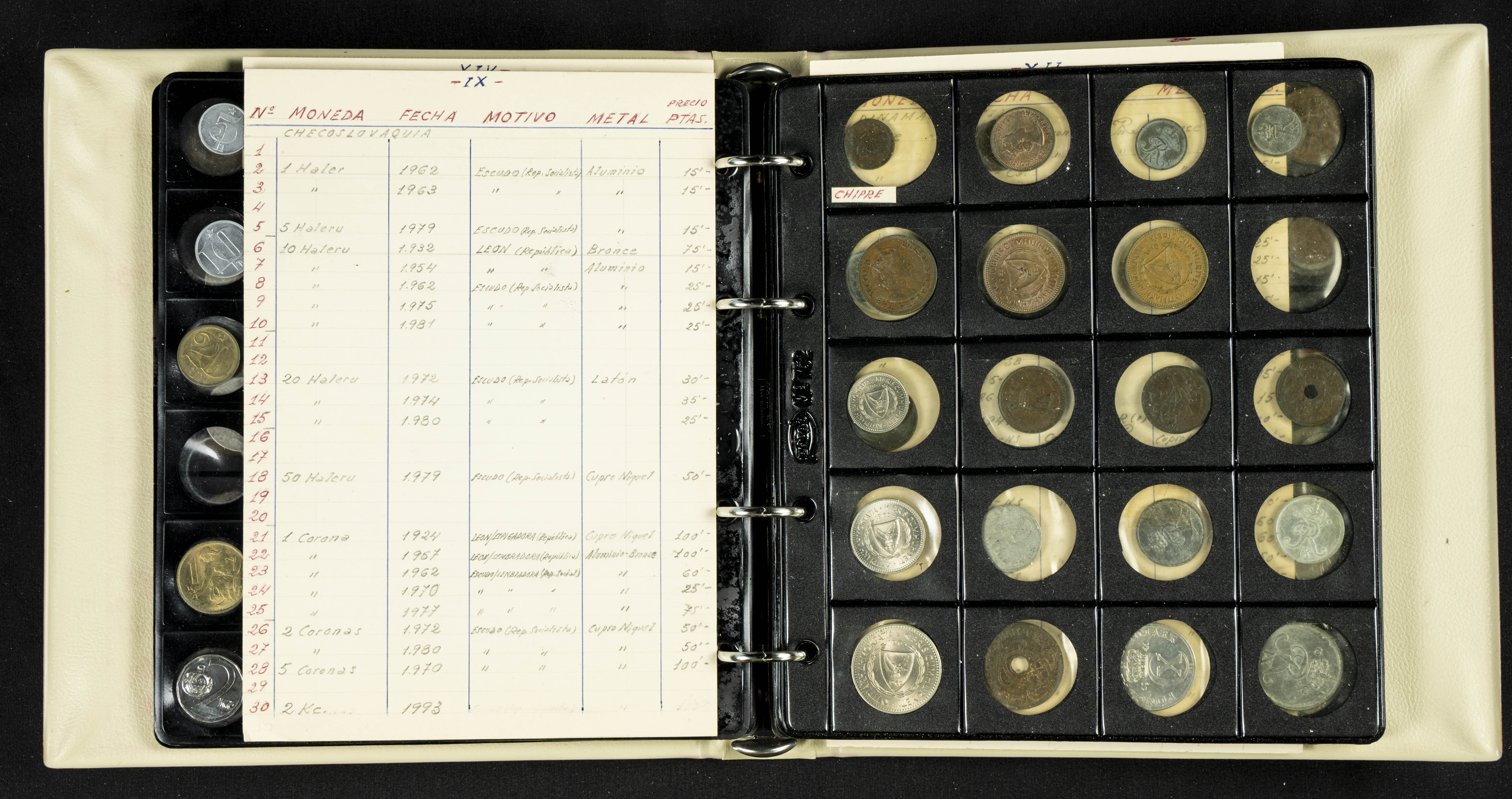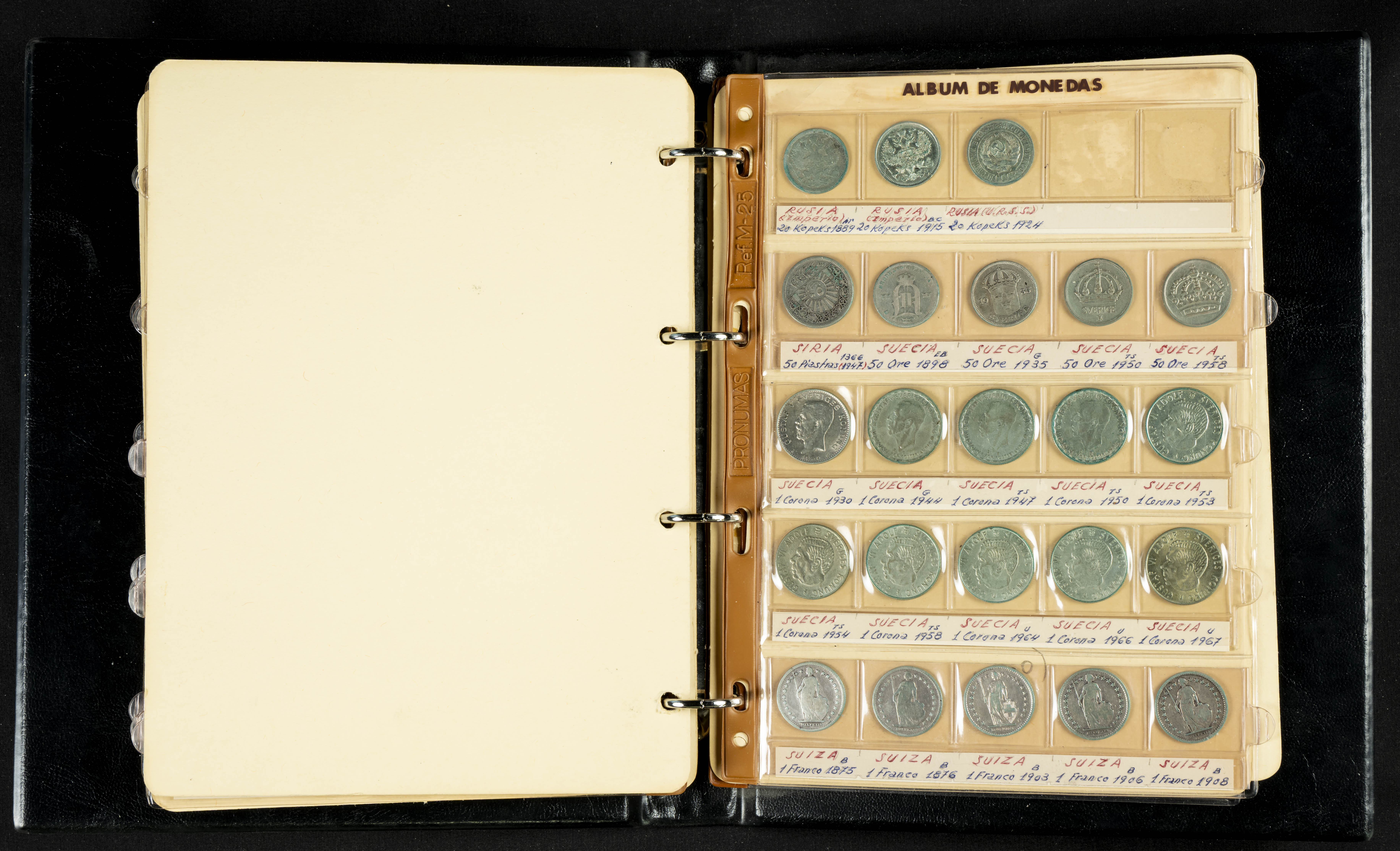MONEDA MUNDIAL. Extraordinaria colección de moneda extranjera con un un número elevadísimo de piezas y expuestas en 16 álbumes. La colección está centrada, fundamentalmente, en el siglo XX, pero tiene también una interesante representación de moneda del siglo XIX. Gran cantidad de países, fechas, módulos, materiales (incluye un buen número de ejemplares en plata) representados y alguna reproducción. Diferentes estados de conservación. A EXAMINAR.