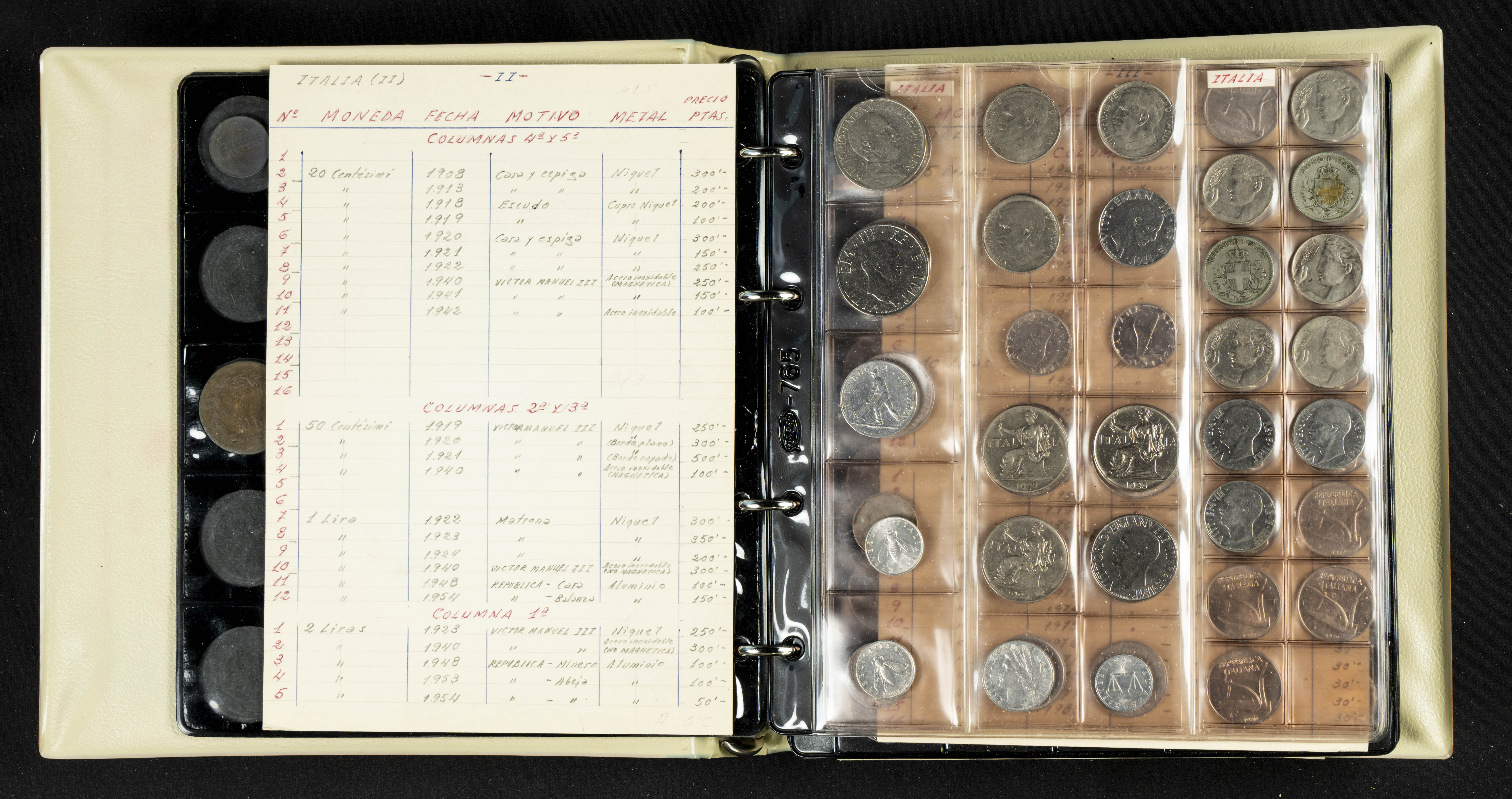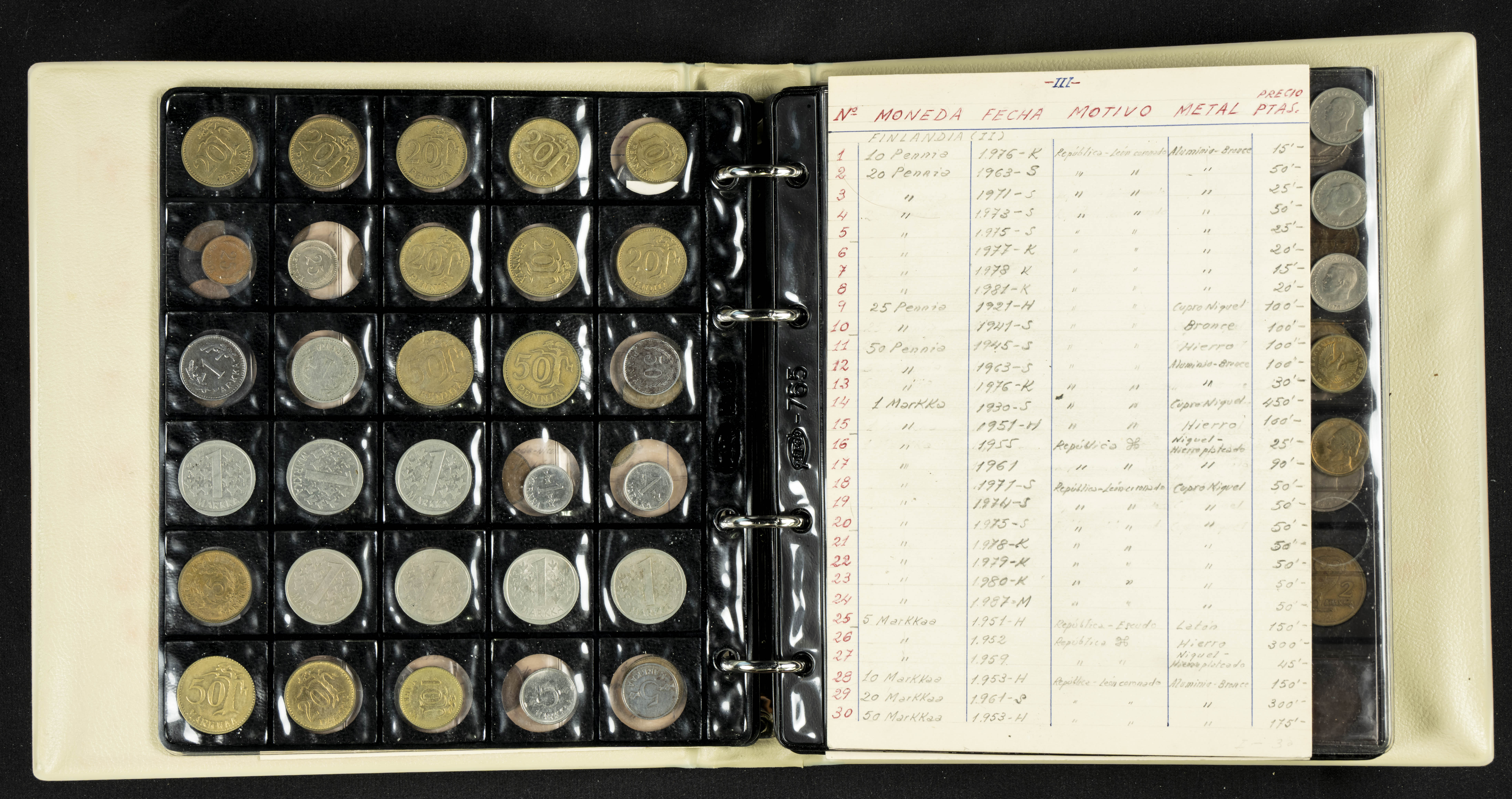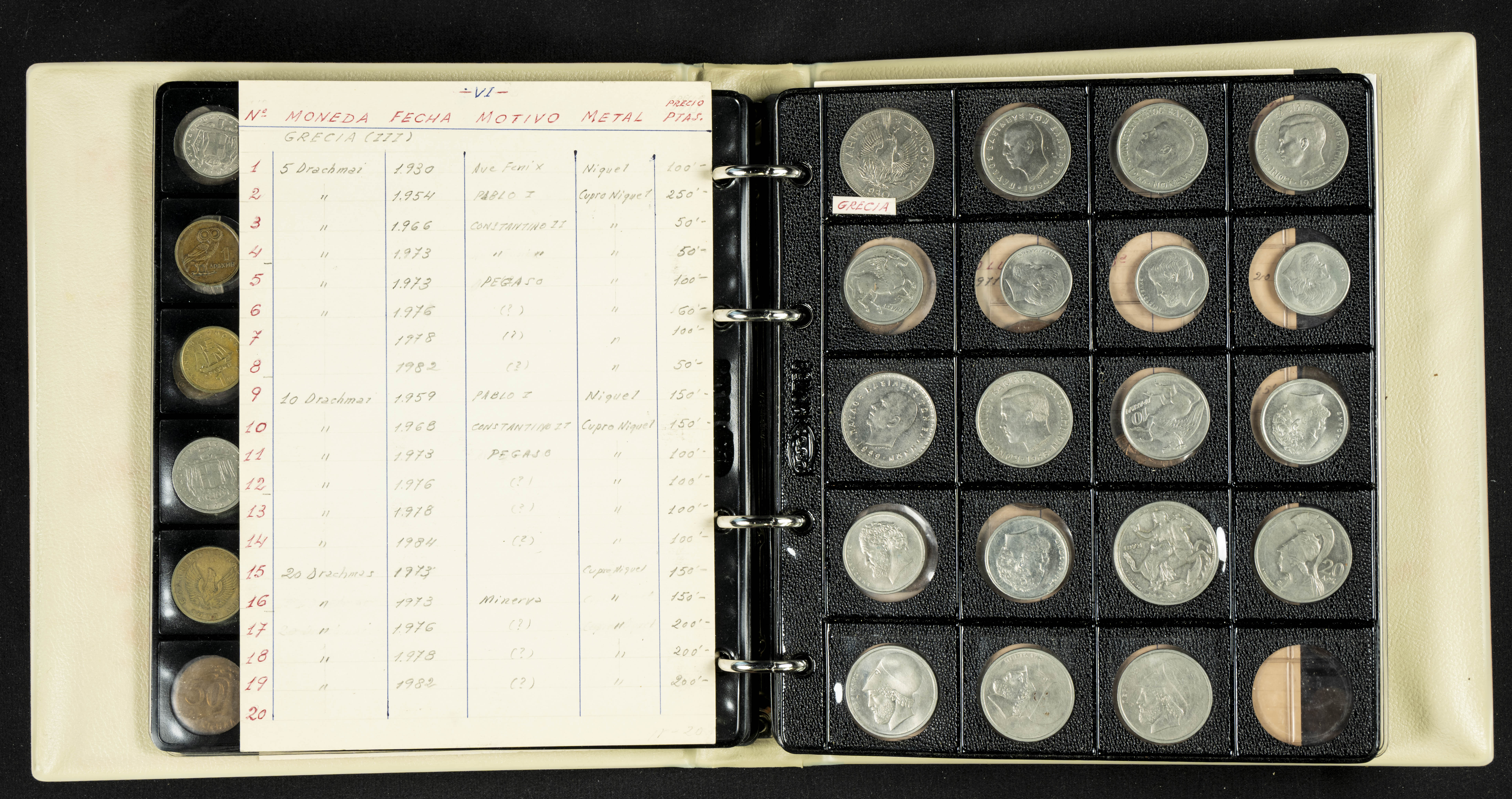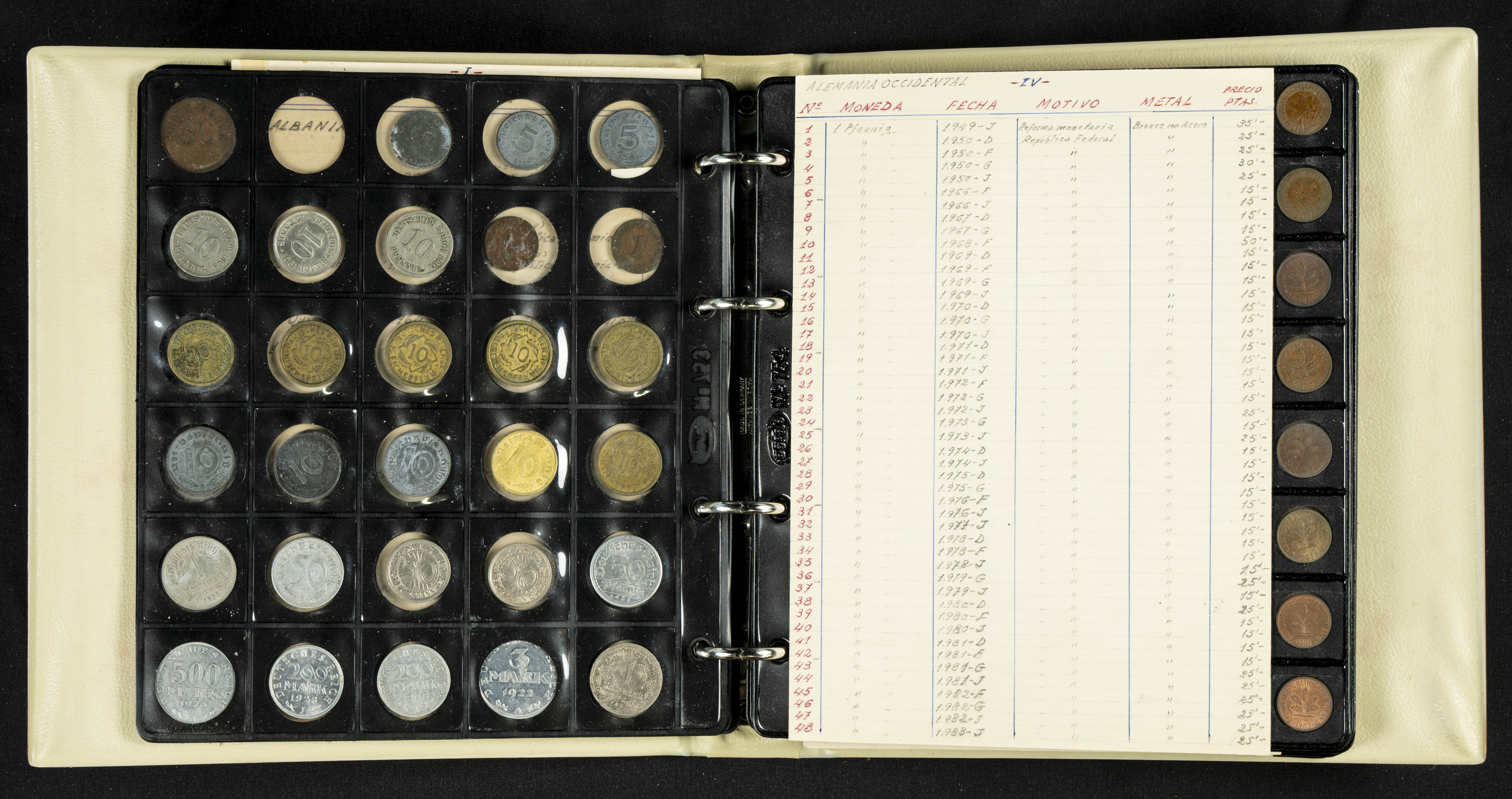 MONEDA MUNDIAL. Extraordinaria colección de moneda extranjera con un un número elevadísimo de piezas y expuestas en 16 álbumes. La colección está centrada, fundamentalmente, en el siglo XX, pero tiene también una interesante representación de moneda del siglo XIX. Gran cantidad de países, fechas, módulos, materiales (incluye un buen número de ejemplares en plata) representados y alguna reproducción. Diferentes estados de conservación. A EXAMINAR.