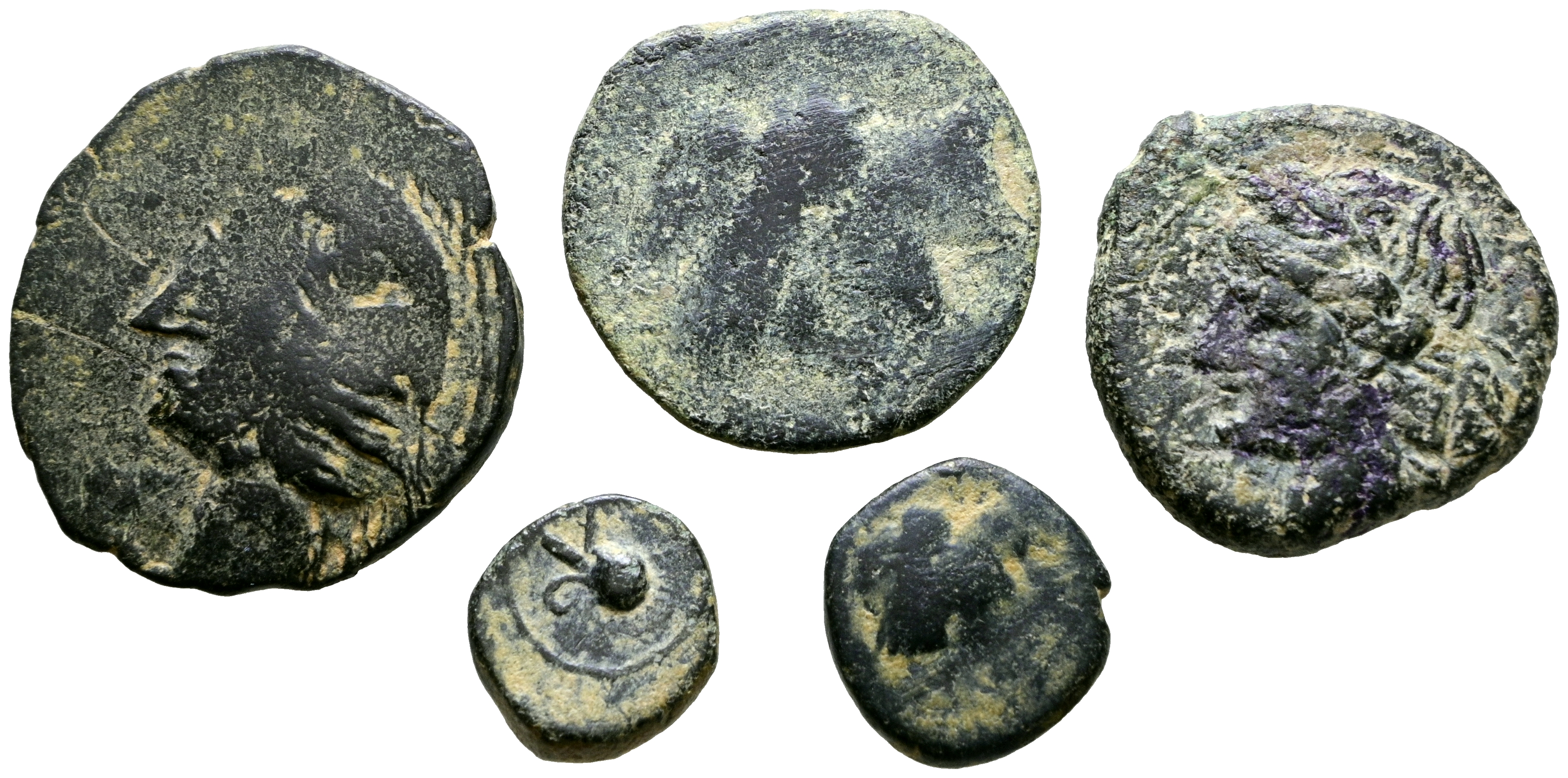 HISPANIA ANTIGUA. Interesante conjunto formado por 5 acuñaciones de Cartagonova. Diferentes medidas y estados de conservación. A EXAMINAR.