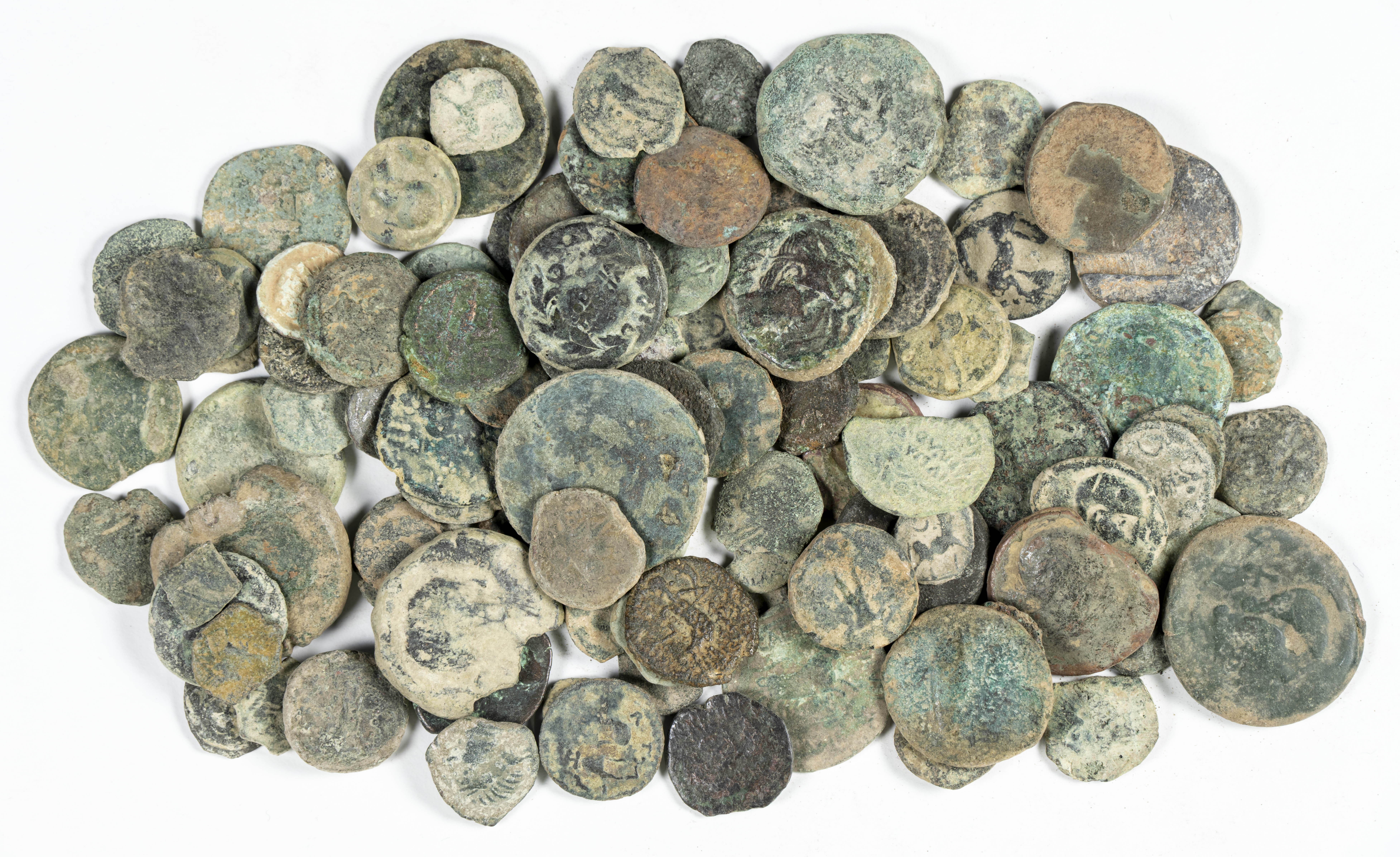 HISPANIA ANTIGUA. Interesante y gran conjunto formado por 100 bronces de diferentes cecas, principalmente del sur peninsular. A destacar una gran variedad de módulos, pesos y estados de conservación. A EXAMINAR.