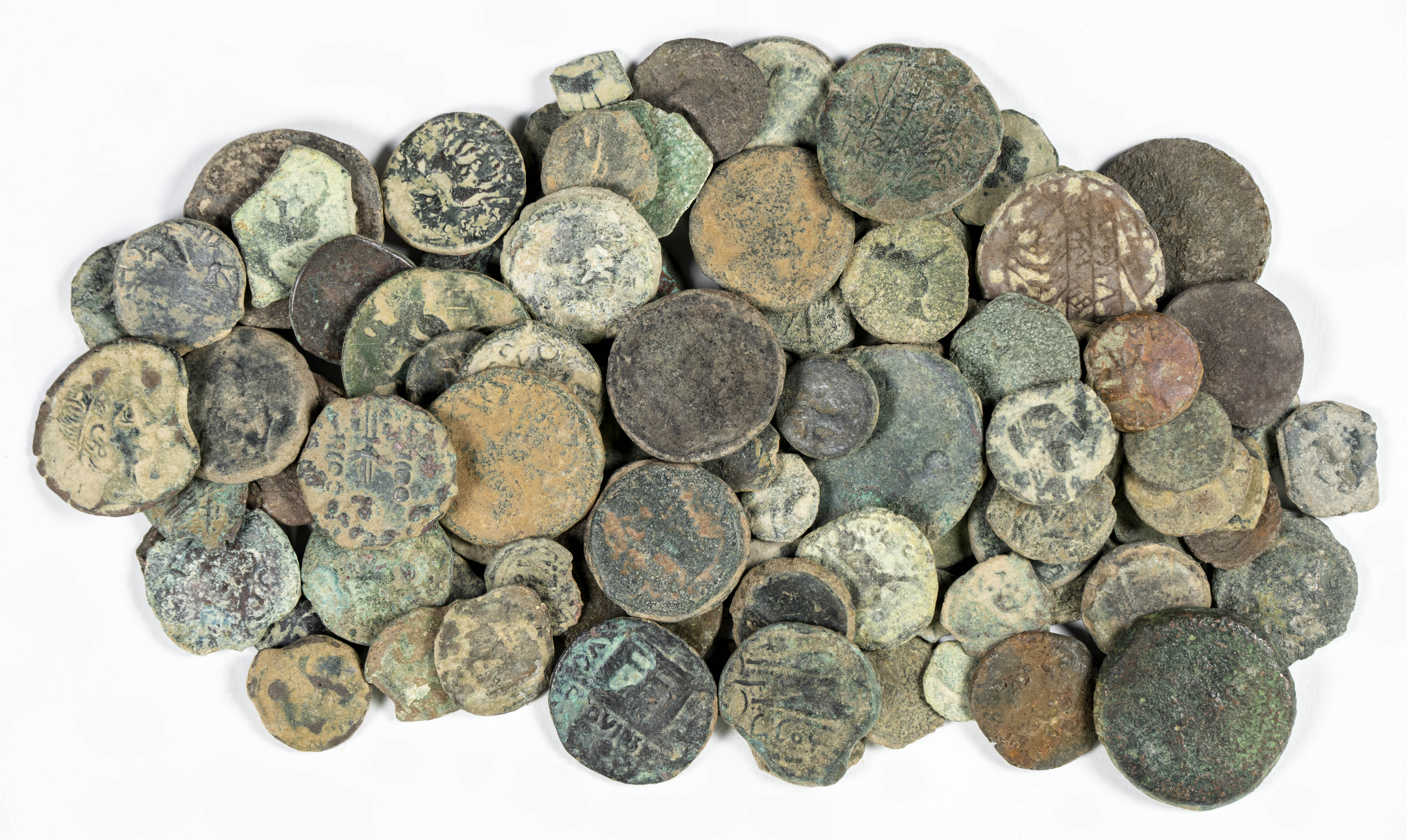 HISPANIA ANTIGUA. Interesante conjunto formado por 100 bronces de diferentes cecas como: Malaca, Carteia, Iulia Traducta, Colonia Patricia, Cástulo y Obulco entre otras. Diferentes módulos, pesos y estados de conservación. A EXAMINAR.