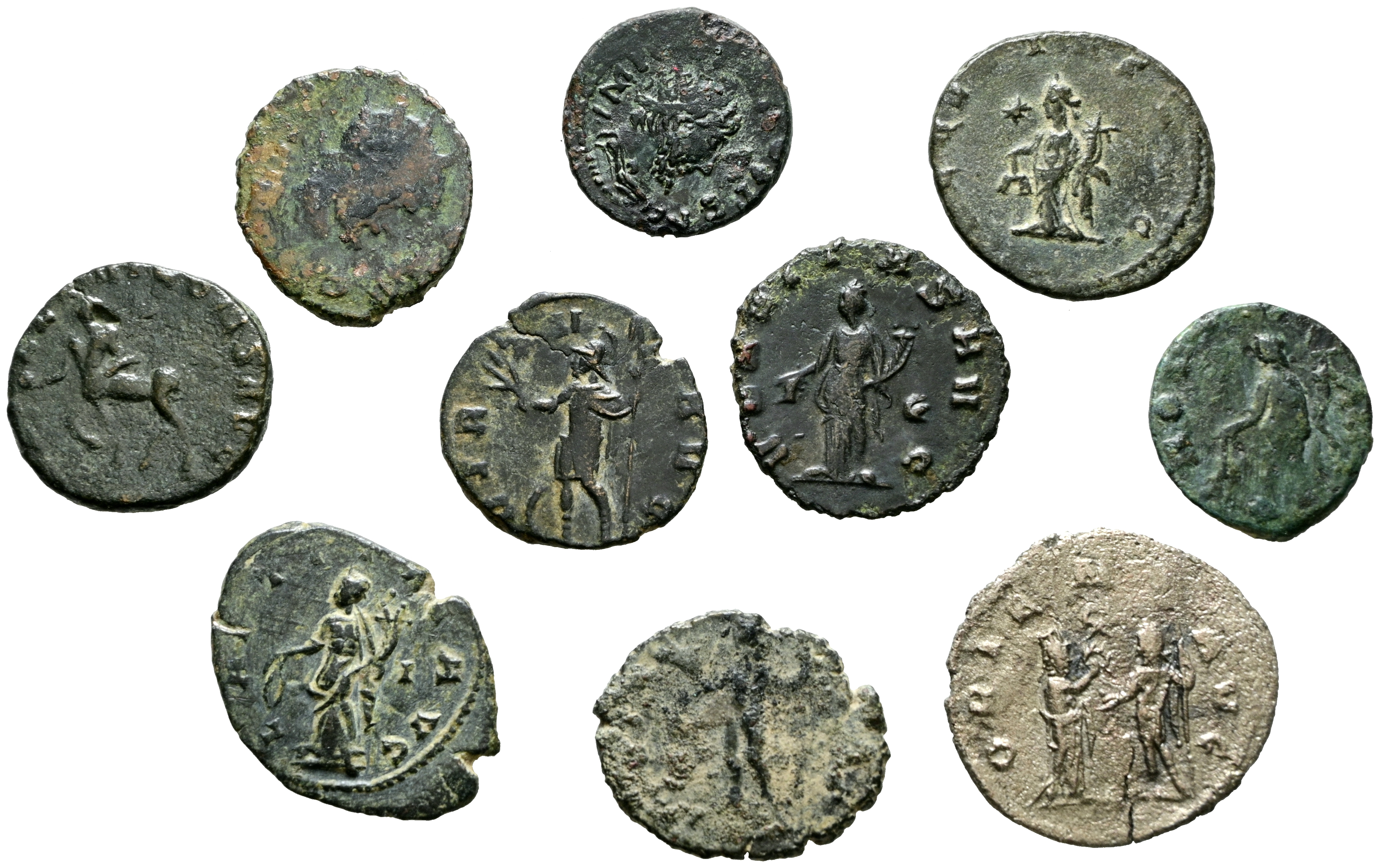 IMPERIO ROMANO. Interesantísimo conjunto formado por 10 Antoninianos. Diferentes emperadores, cecas, medidas y estados de conservación. A EXAMINAR.