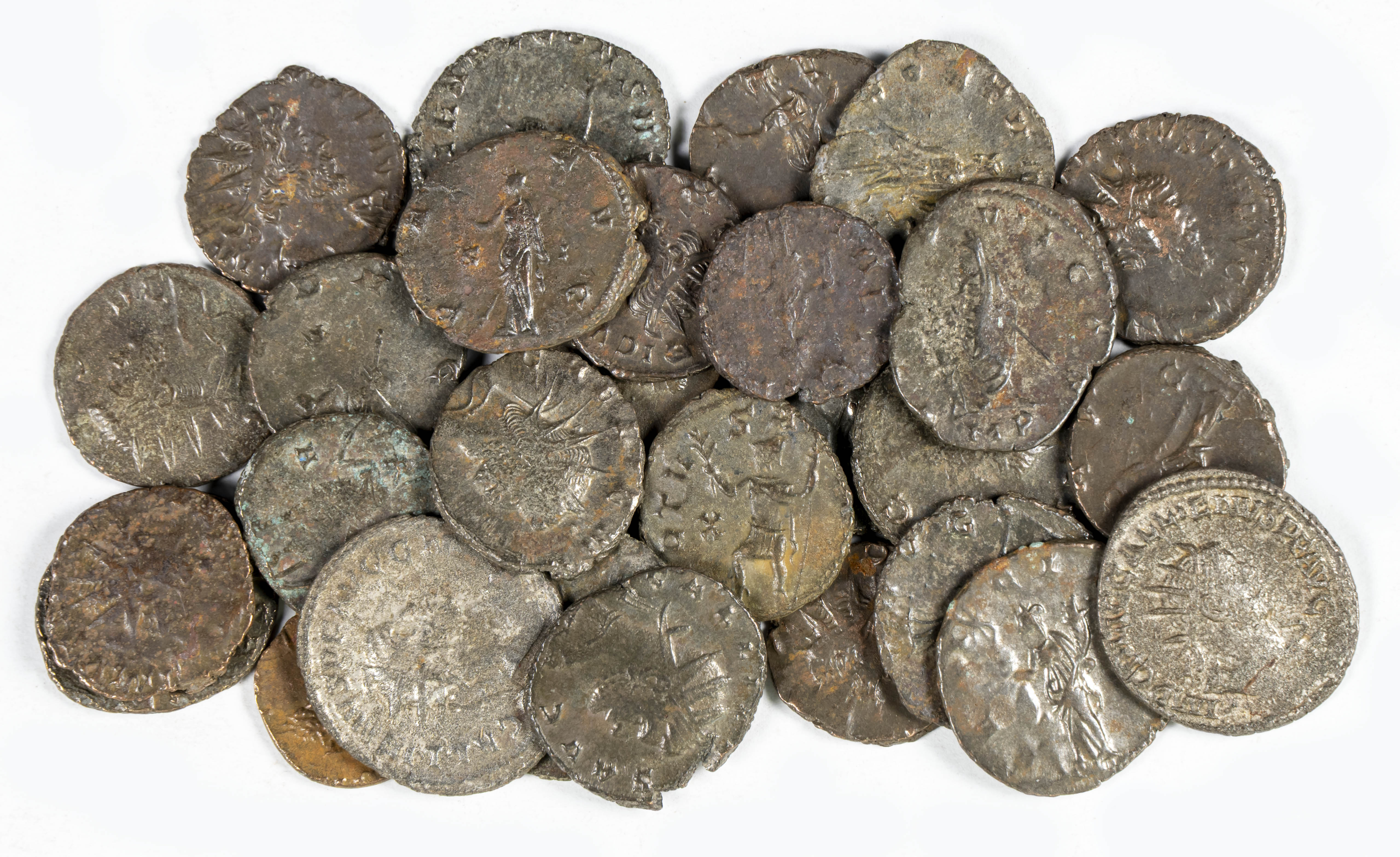 IMPERIO ROMANO. Interesantísimo conjunto formado por 30 Antoninianos correspondientes a Tétrico I (10) y Galieno (20). Diferentes reversos, medidas y estados conservación. A EXAMINAR.