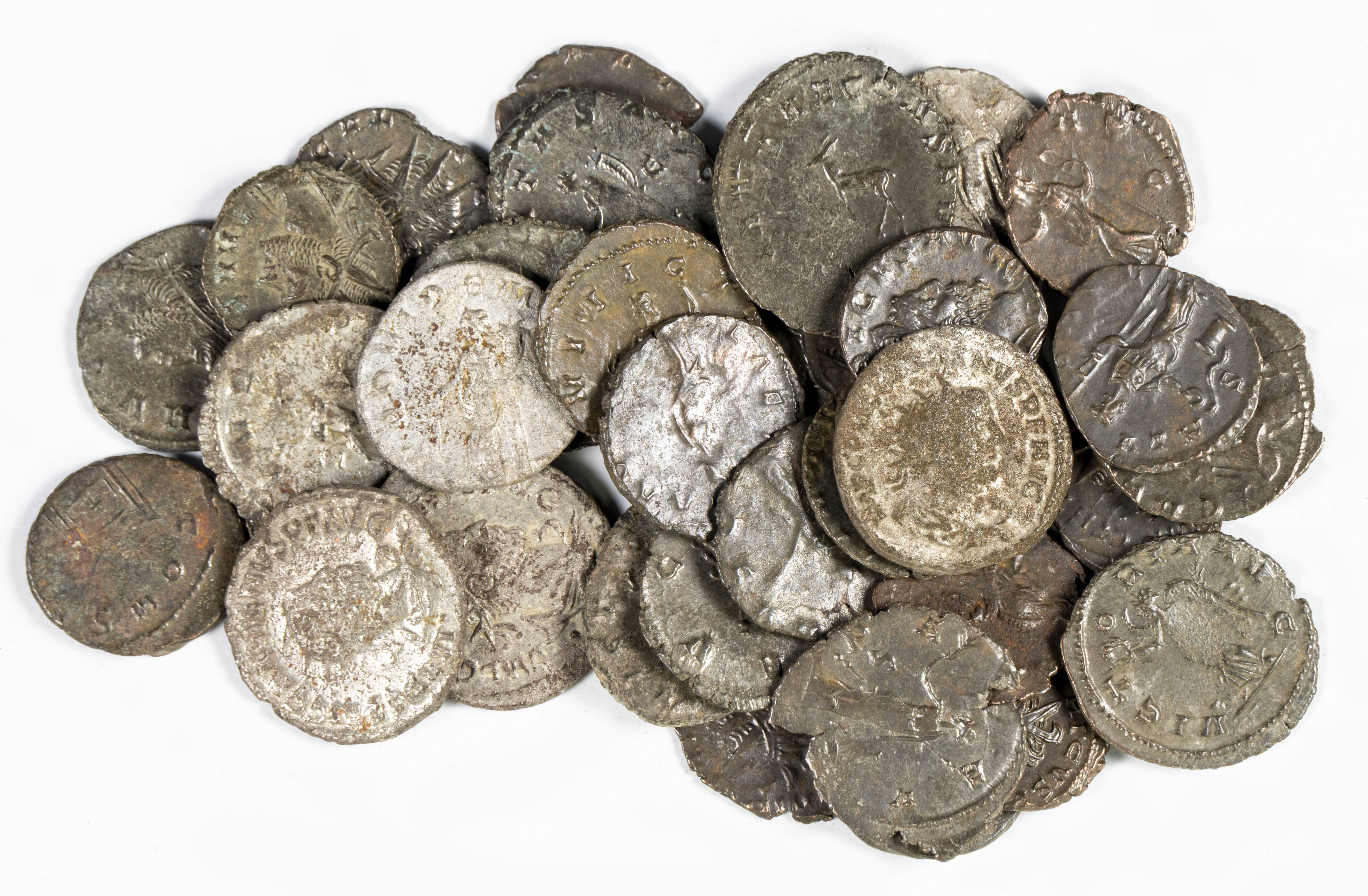 IMPERIO ROMANO. Interesantísimo conjunto formado por 35 Antoninianos correspondientes a Tétrico I (10), Claudio II (5) y Galieno (20). Diferentes reversos, medidas y estados conservación. A EXAMINAR.