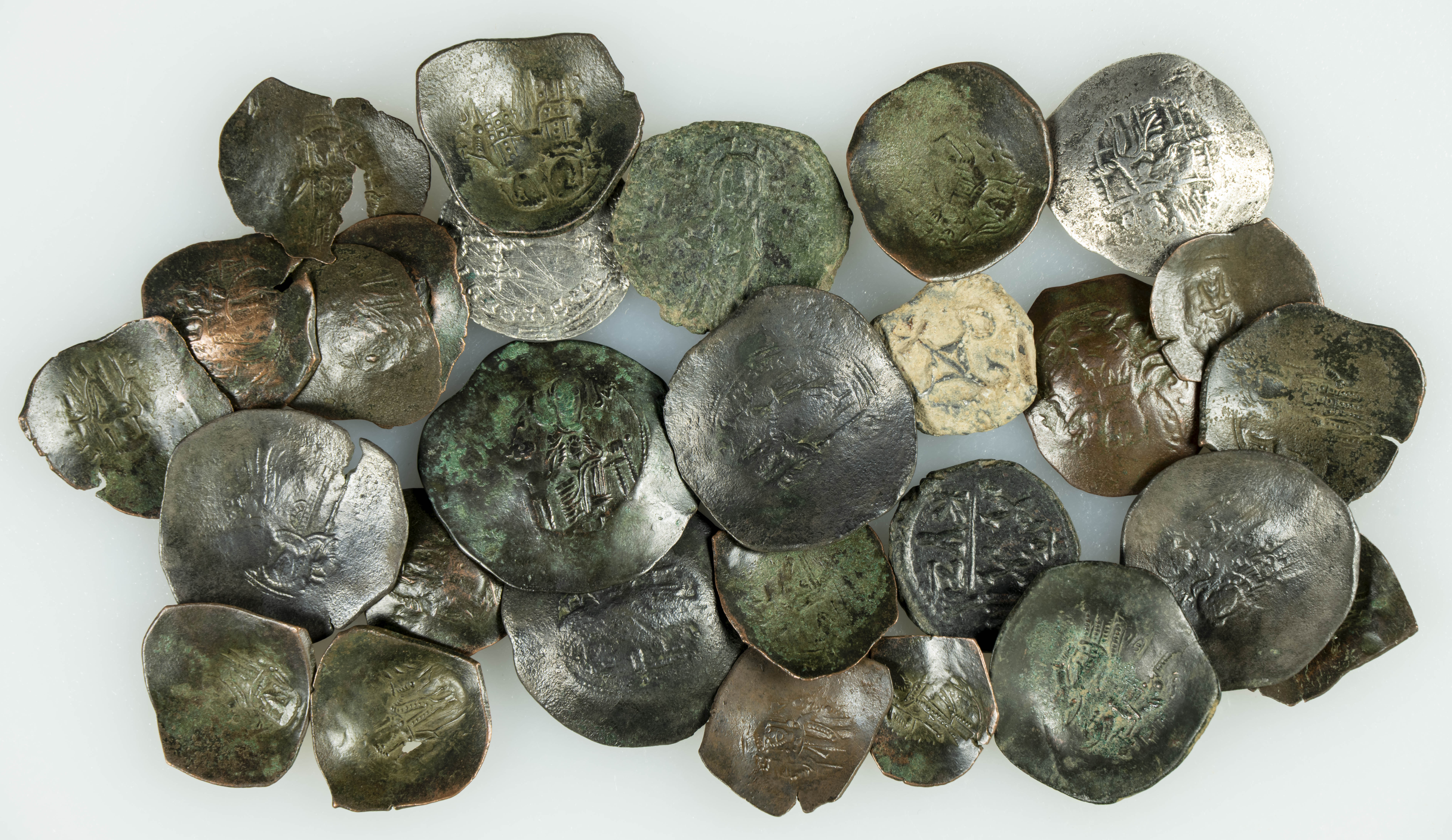 IMPERIO BIZANTINO. Conjunto de 29 monedas del imperio bizantino, de diferentes metales, emperadores y tipos. A EXAMINAR.