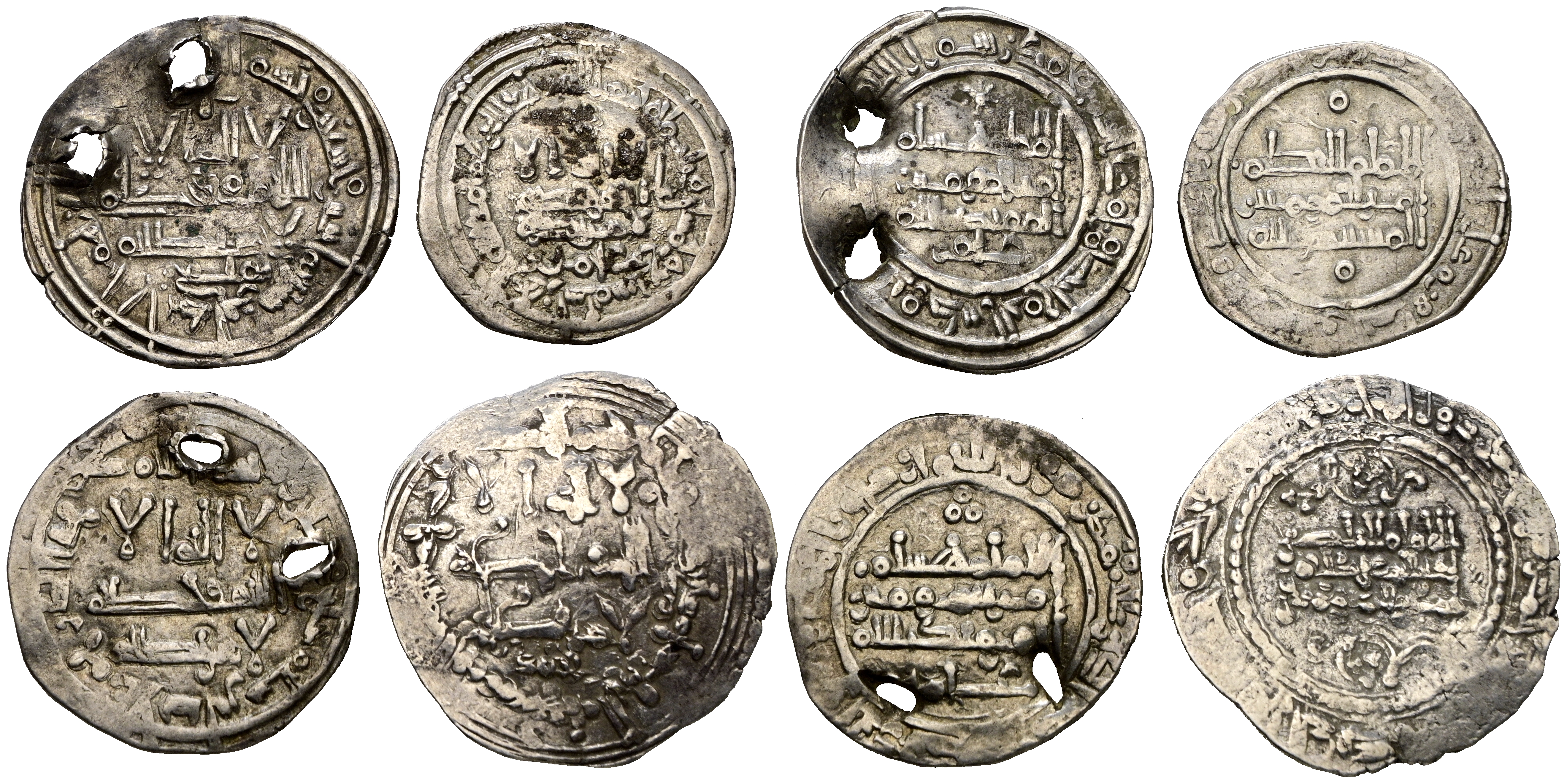 HISPANO ARABE. Interesante conjunto formado por 4 dirham califales correspondientes a los reinados de Abd al-Rahman III, Al-Hakam II y Hisham II. Diferentes años, cecas, medidas y estados de conservación. A EXAMINAR.