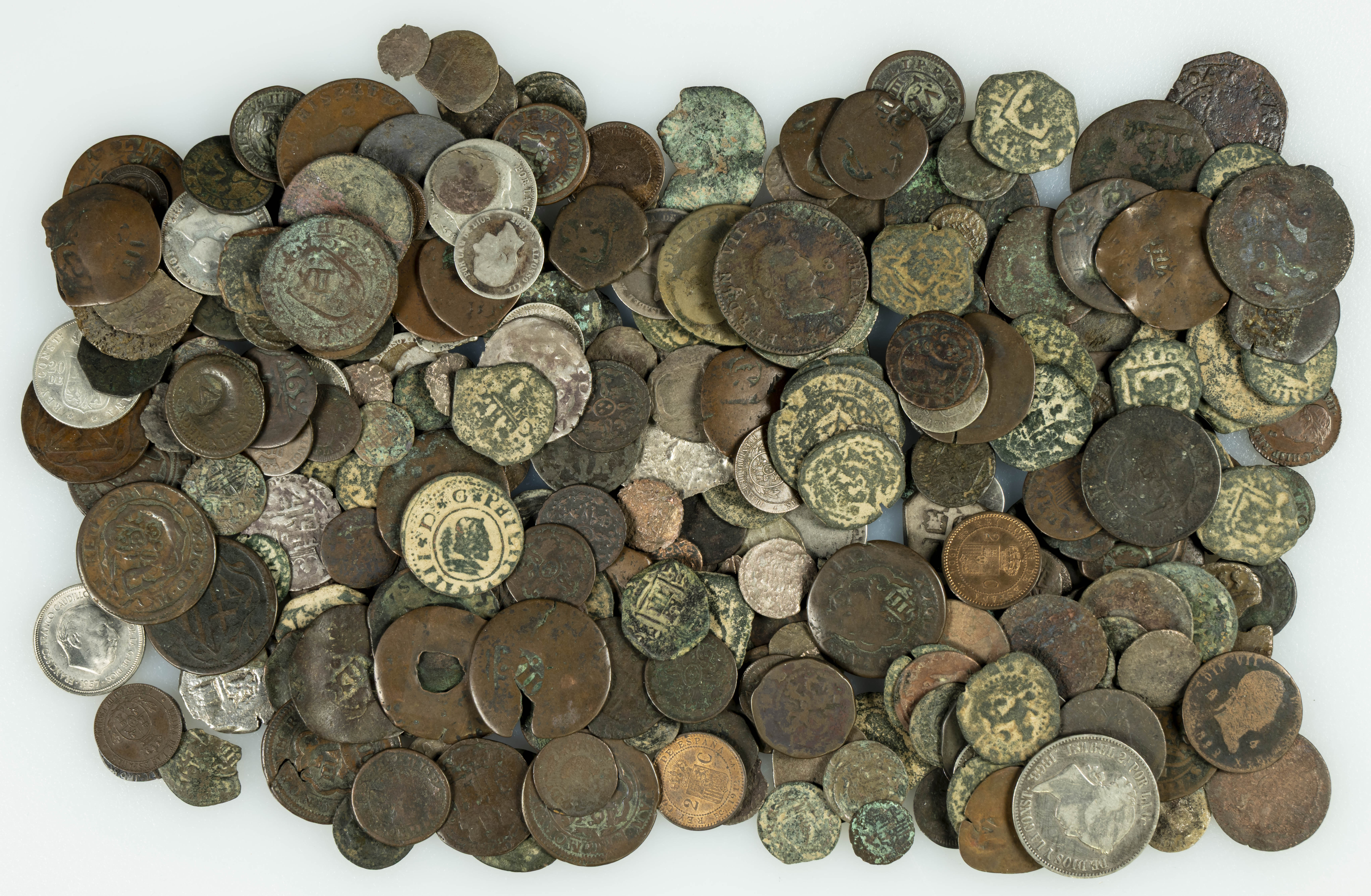 ESPAÑA. Conjunto de más de 300 piezas, cobres fundamentalmente, y platas, con acuñaciones comprendidas entre el periodo de Monarquía Española hasta el reinado de Juan Carlos I. Gran variedad de módulos, fechas así como estados de conservación. A EXAMINAR.