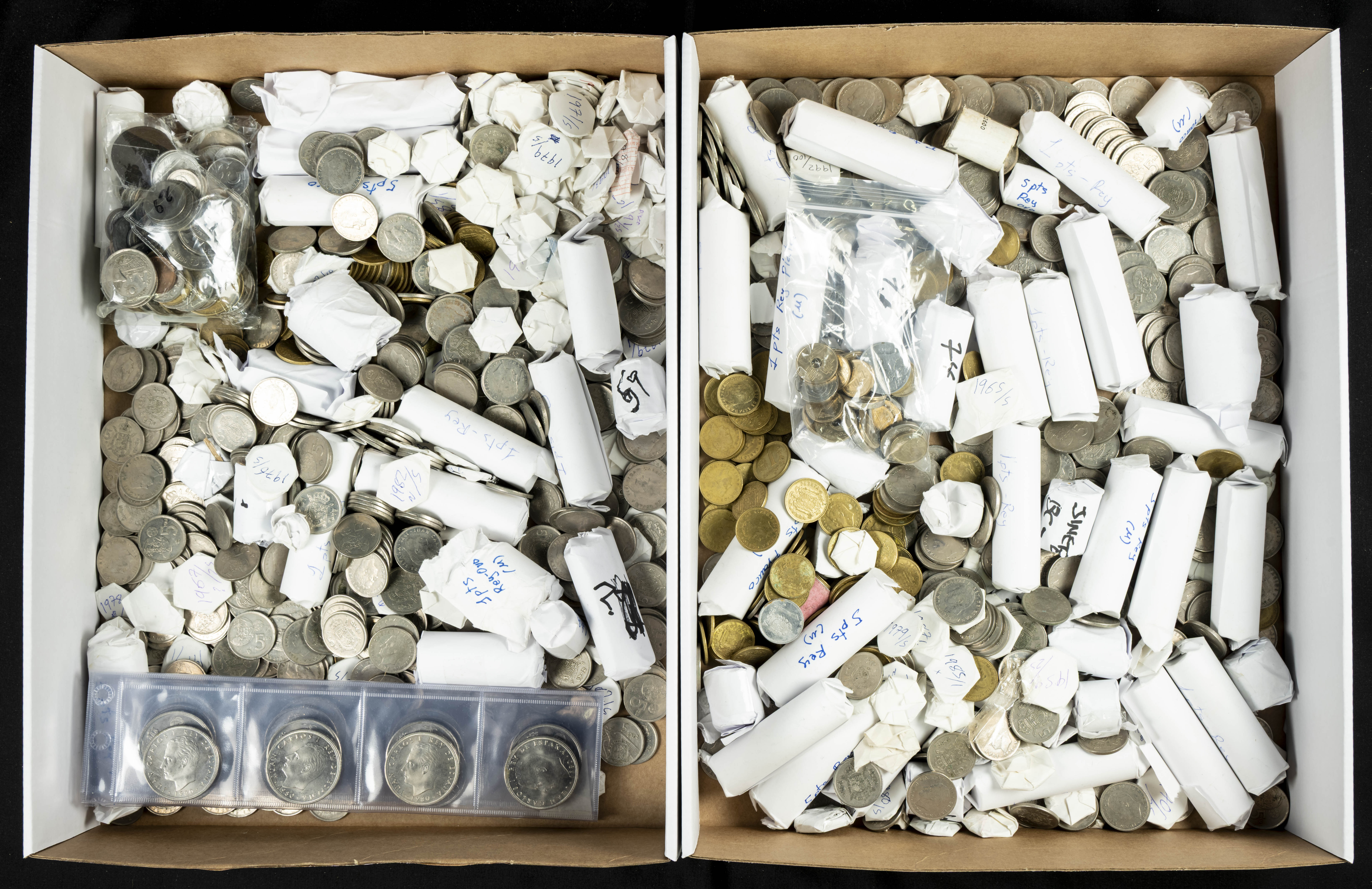 ESTADO ESPAÑOL Y JUAN CARLOS I. Enorme conjunto formado por centenares de piezas con una gran variedad de módulos y fechas y con un peso de algo más de 15kg. El lote se completa con un pequeño conjunto de monedas extranjeras. Diferentes estados de conservación. A EXAMINAR.