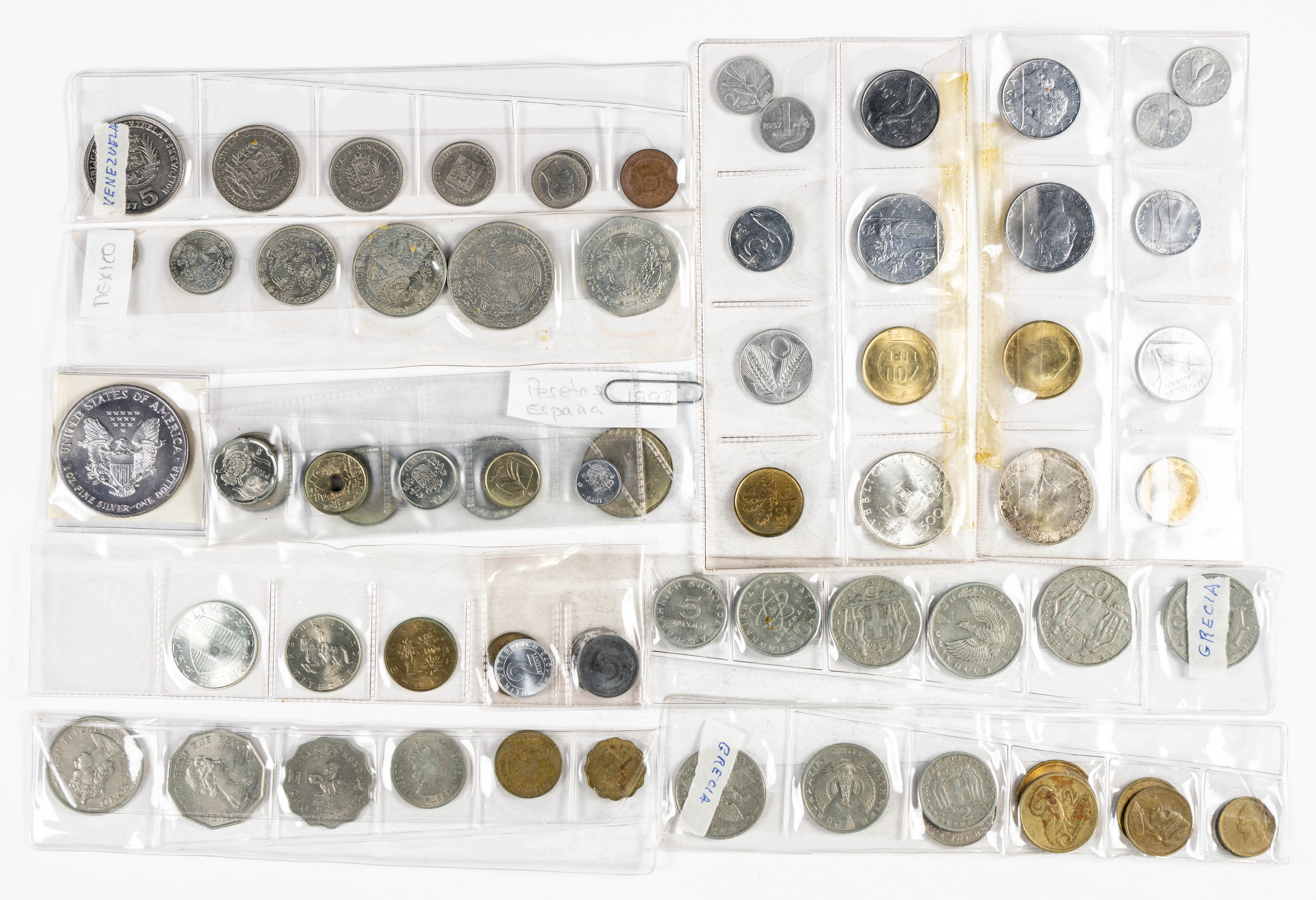 Interesante conjunto formado por cientos de piezas tanto españolas como extranjeras donde destacan algunos ejemplares en plata, incluyendo algunos pequeños lingotes y adornos. El conjunto incluye una pequeña parte de piezas de réplicas de colección. Diferentes estados de conservación. A EXAMINAR.