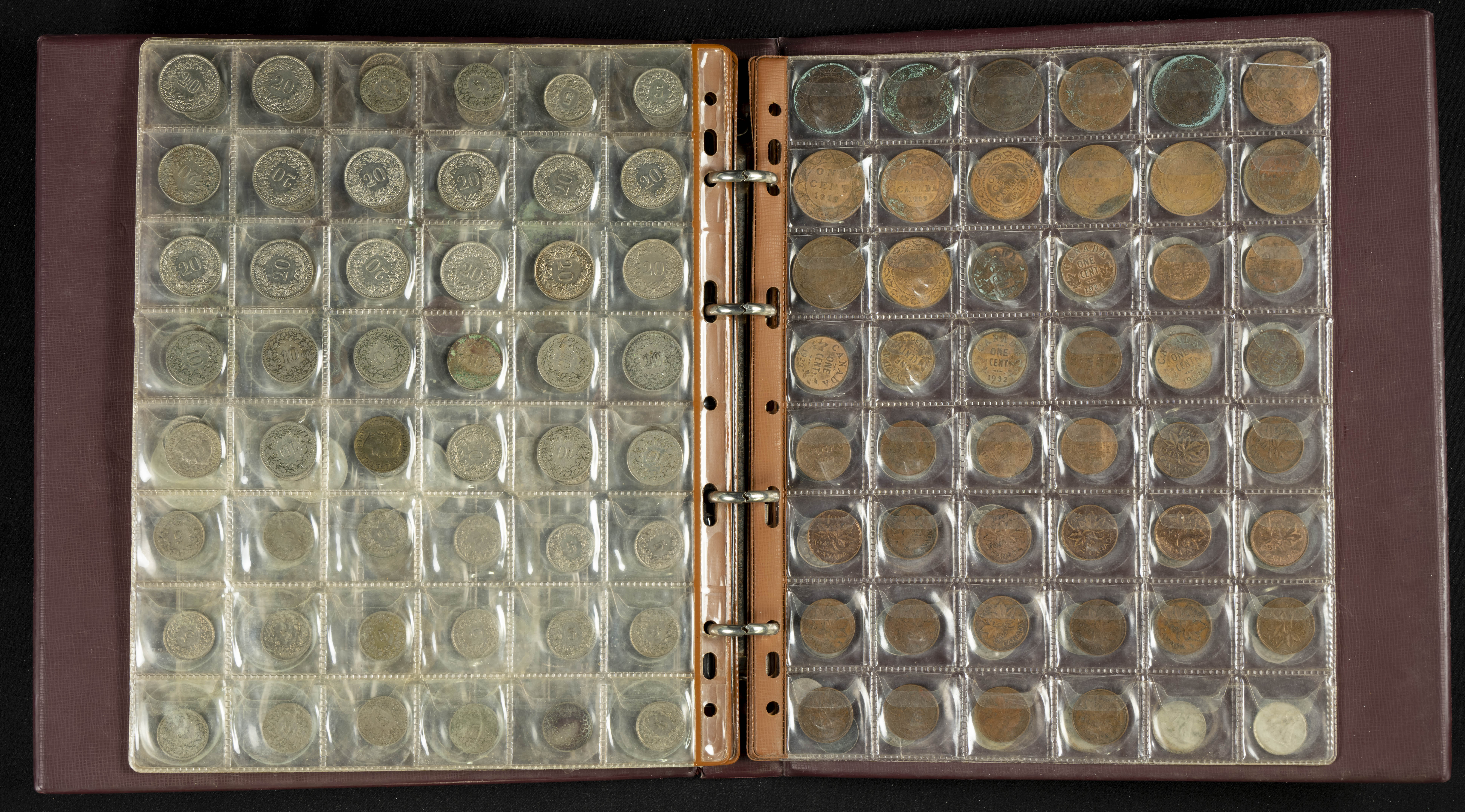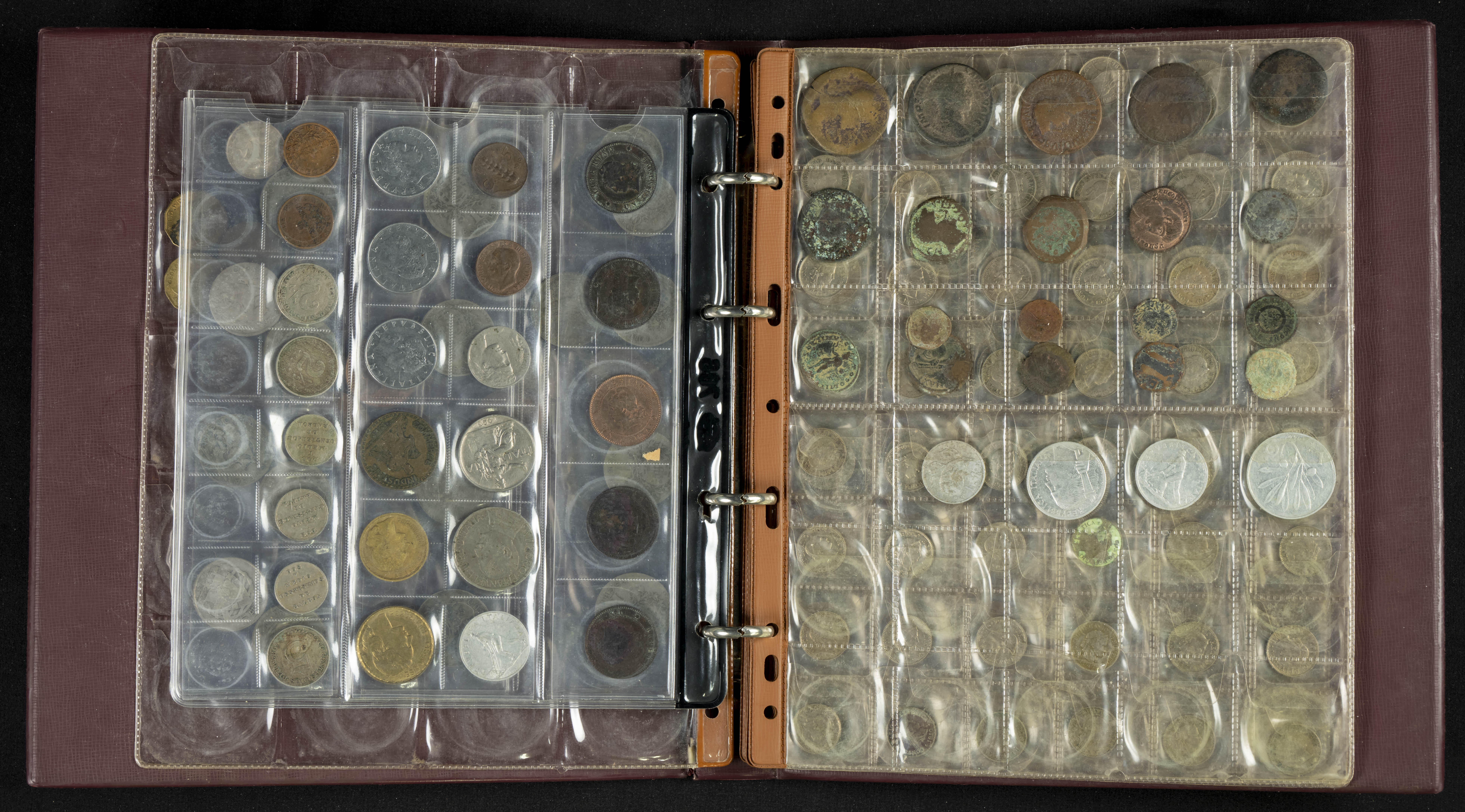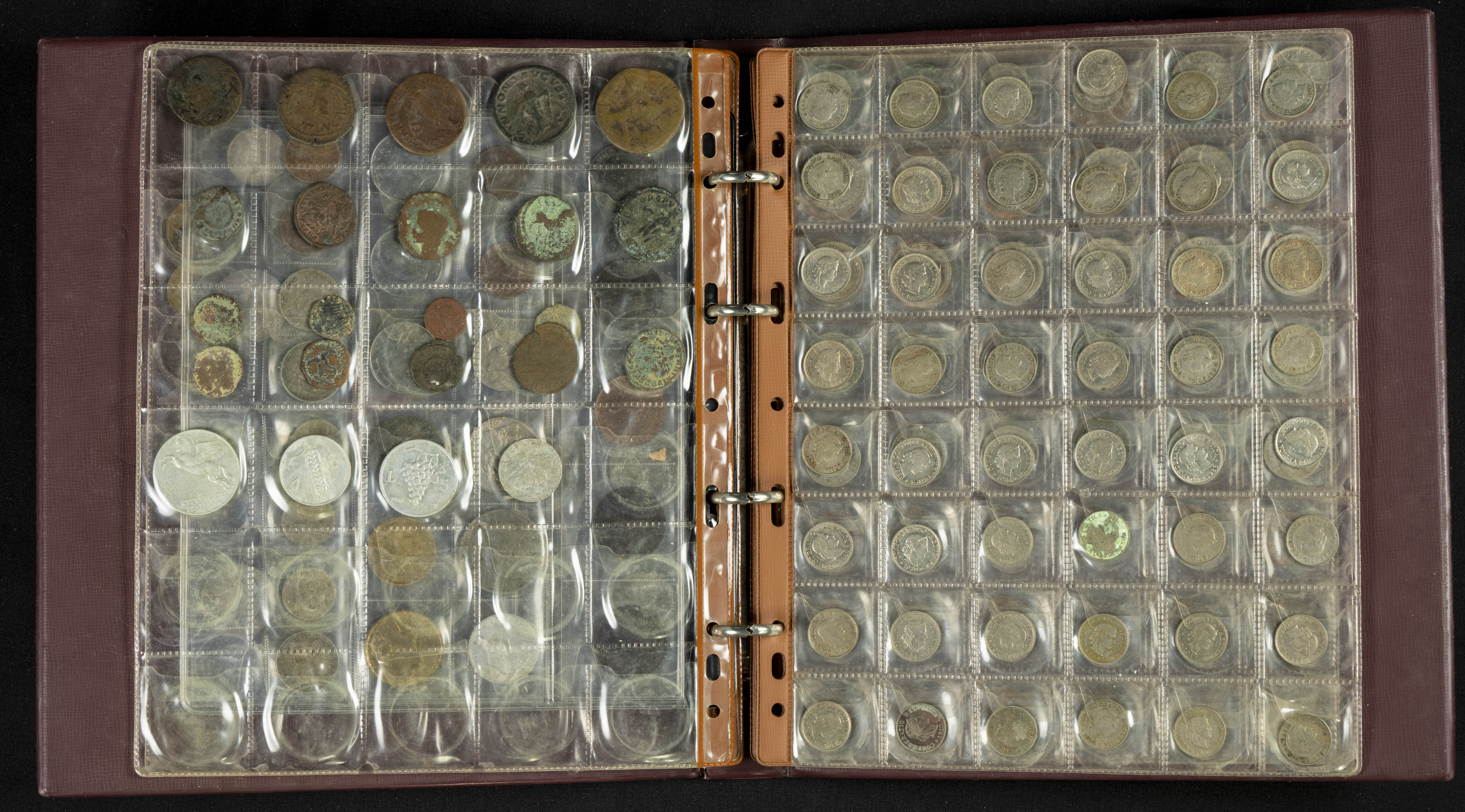 MONEDAS EXTRANJERAS. Conjunto, expuesto en álbum, de aproximadamente 250 monedas de diferentes países. Módulos y materiales. Incluye un pequeño resto de bronces romanos. Diferentes estados de conservación. A EXAMINAR.