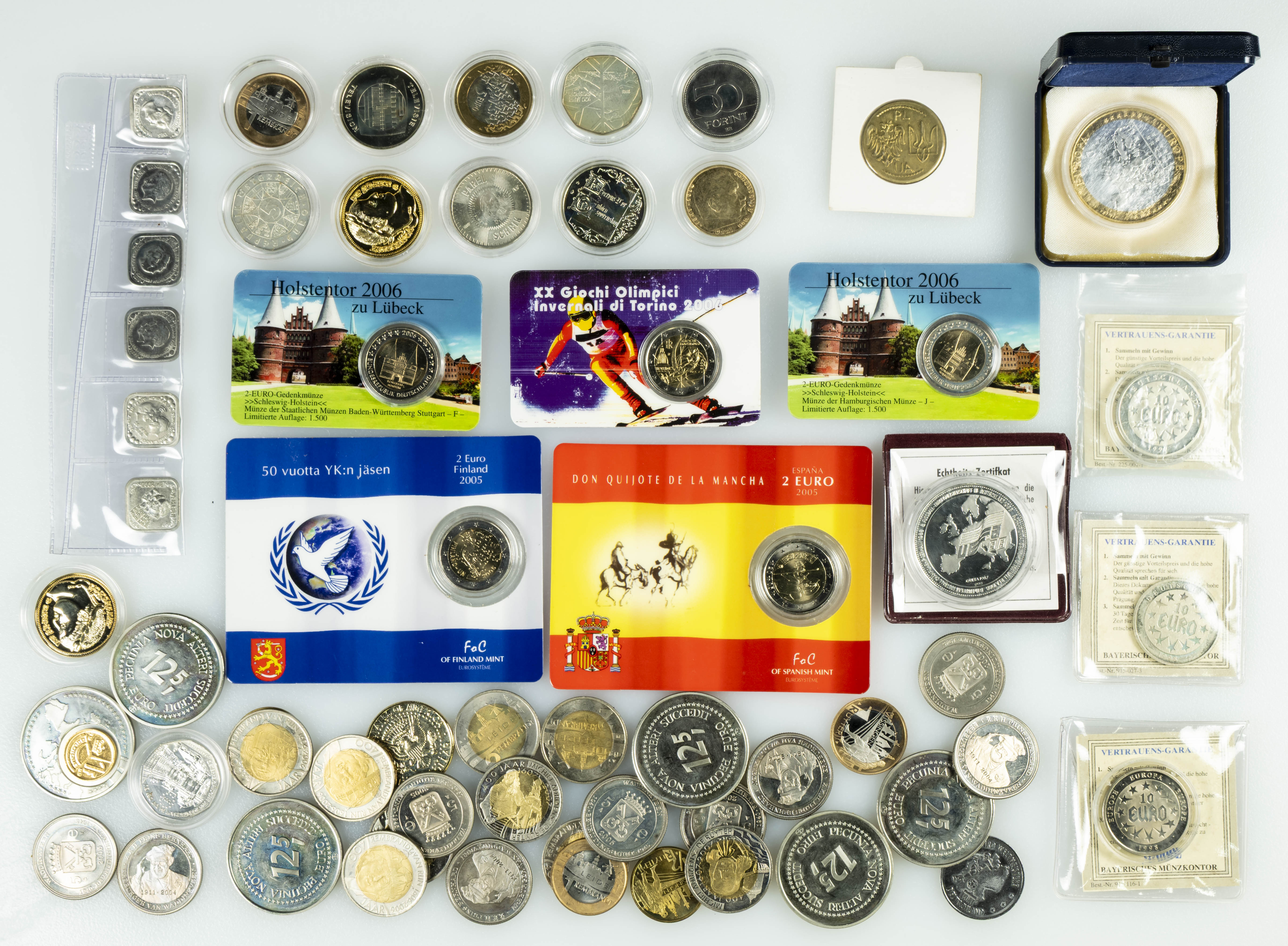 MONEDAS EXTRANJERAS. Interesante conjunto de decenas de monedas, principalmente Euros, de diferentes países y módulos incluyendo estuches y carteras. Magnífico estado de conservación general. A EXAMINAR.