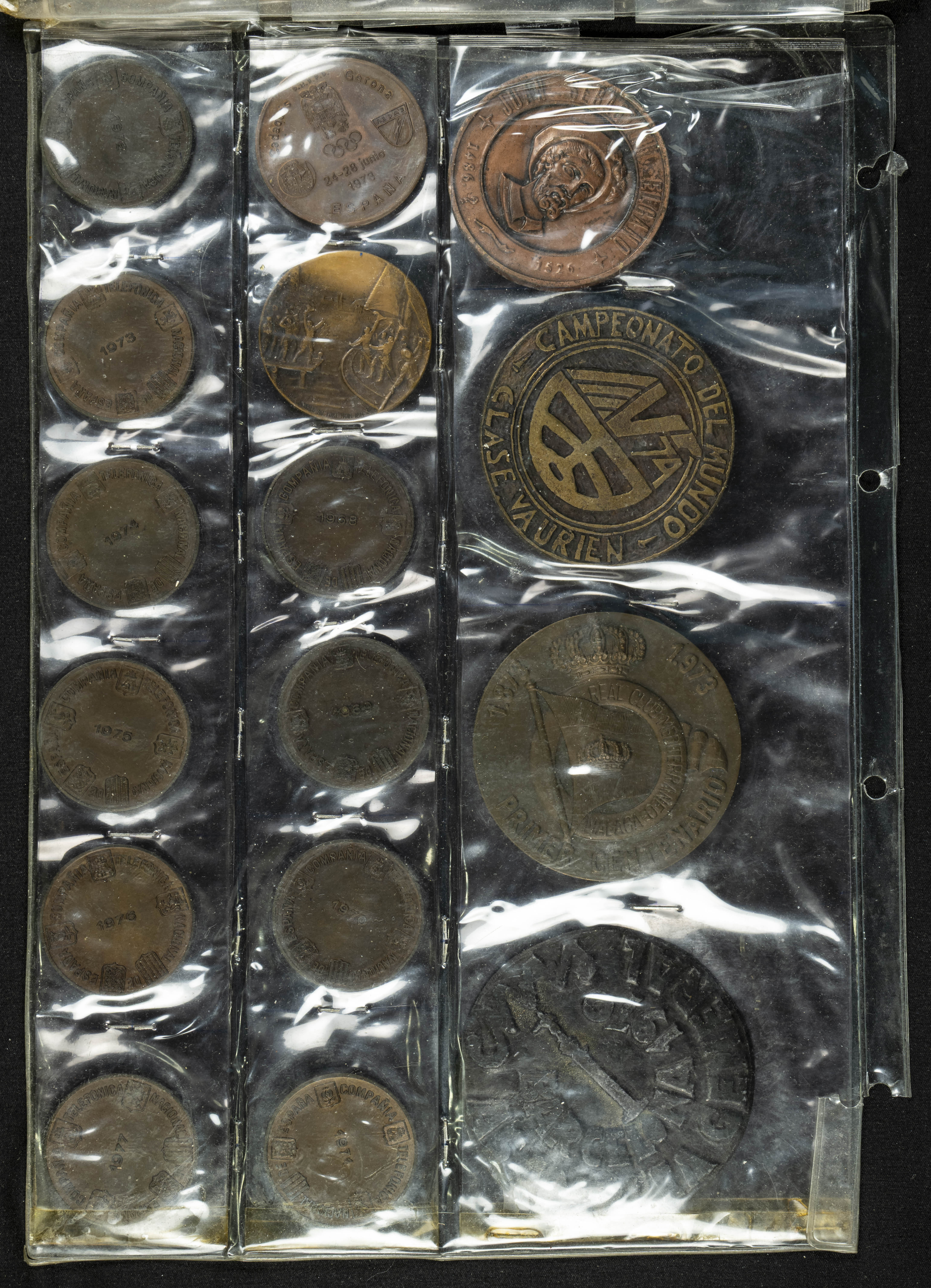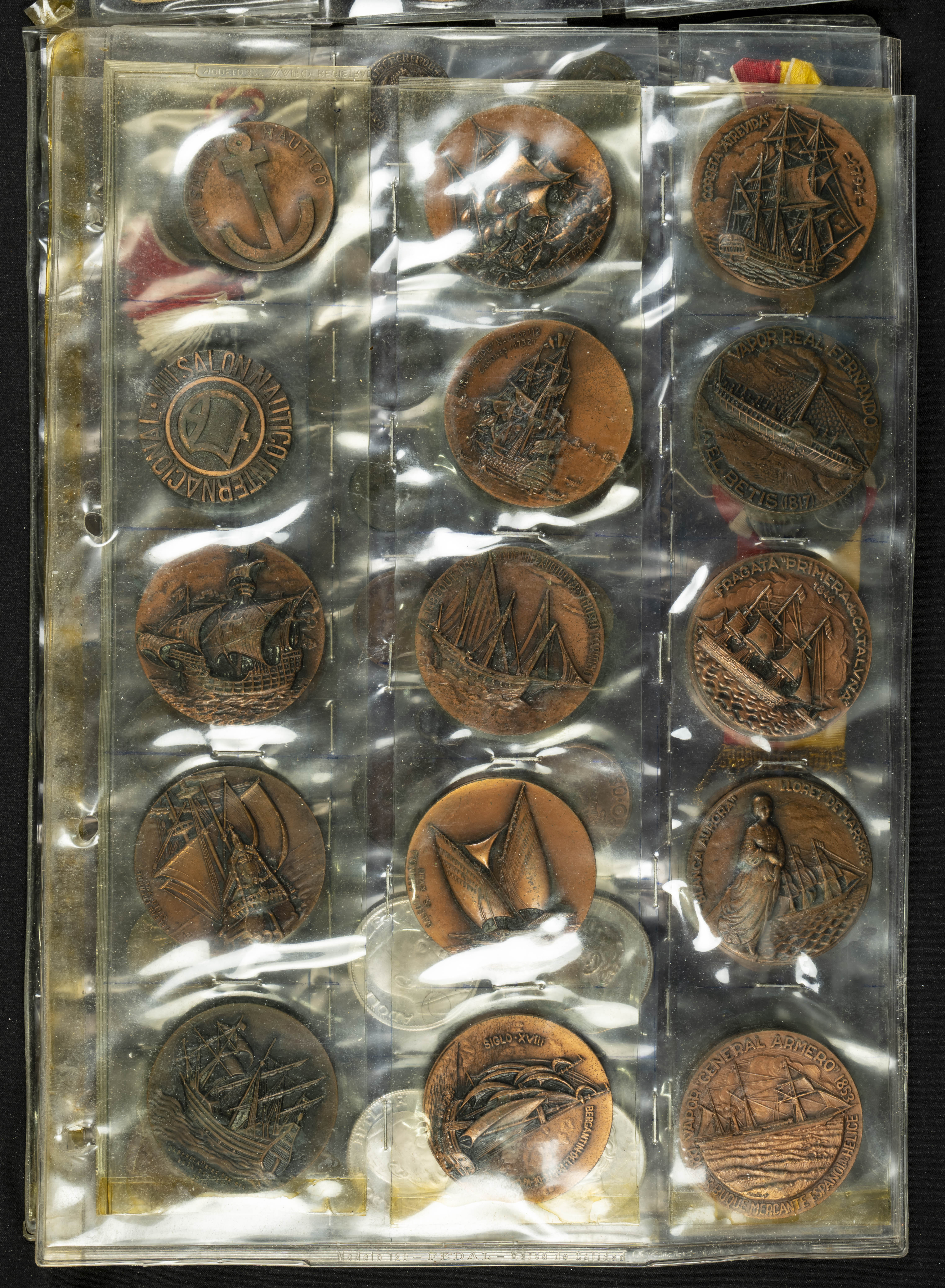 MEDALLAS. Interesante y variado conjunto de medallas, más de 70, tanto españolas como extranjeras y acuñadas en los siglos XIX y XX. Variedad temática incluyendo algunos ejemplos también de insignias militares. Diferentes estados de conservación. A EXAMINAR