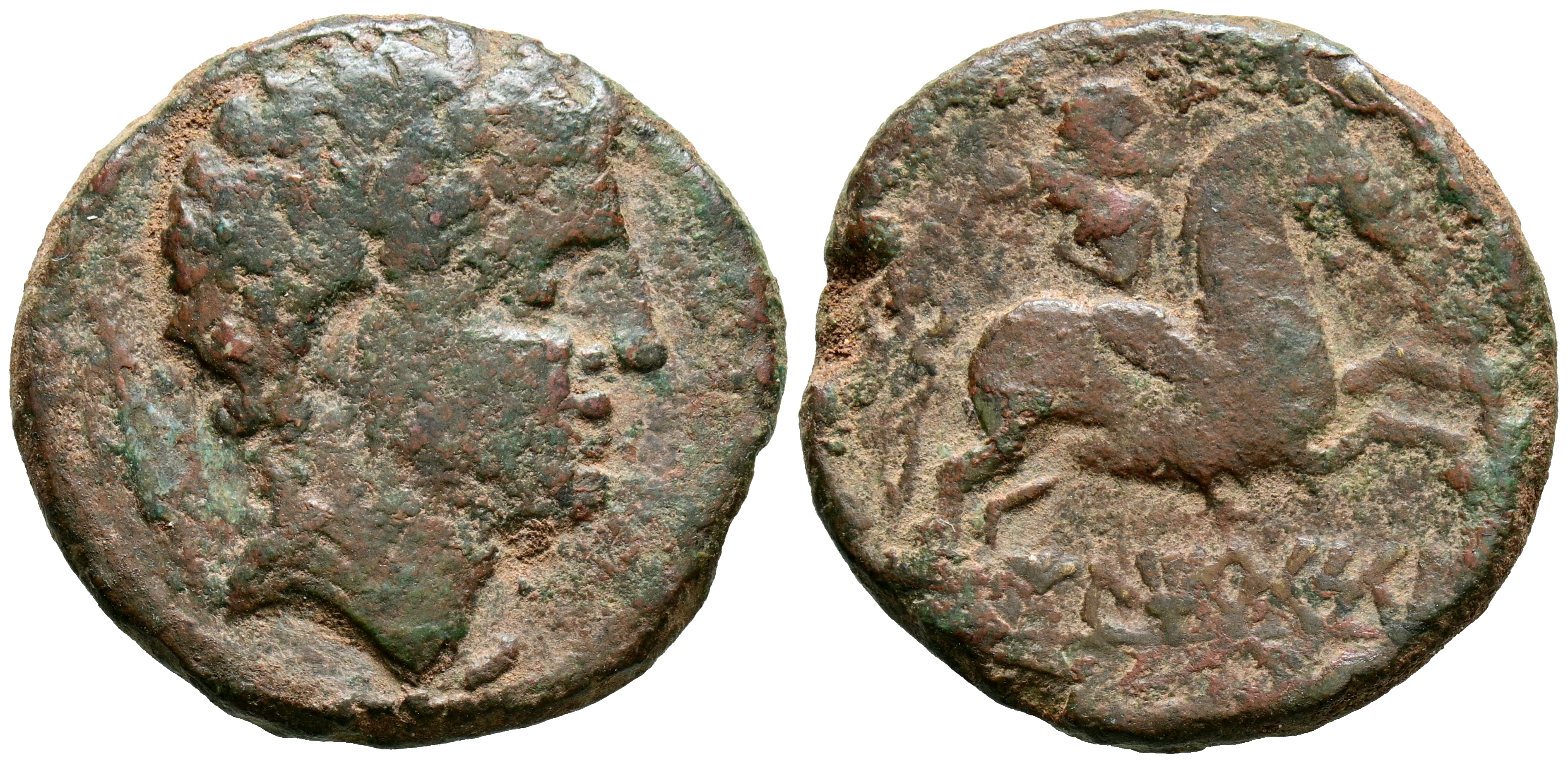 ILTIRCESCEN (Lérida). As. (Ae. 11,56g/26mm). 120-20 a.C. (FAB-1446). Anv: Cabeza masculina a derecha, detrás espiga. Rev: Jinete con palma a derecha, debajo leyenda: ILTIRCeSCeN. MBC-.