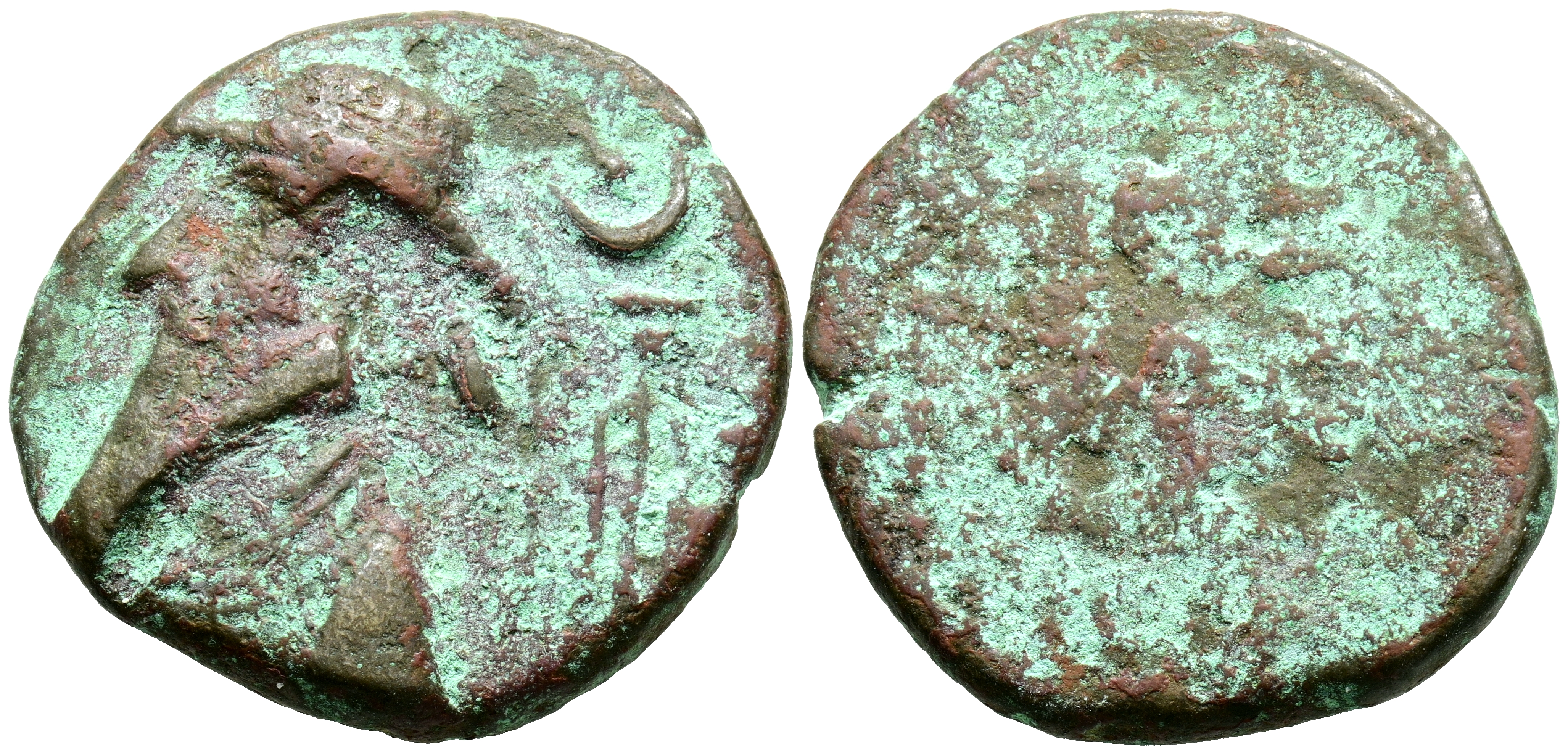 REYES DE ELYMAIS. Kamnaskires VI. Tetradracma de vellón. (Ve. 14,88g/29mm). Siglo I-II d.C. (MITCHINER-703/706). Anv: Busto diademado a izquierda, detrás creciente con estrella y ancla. MBC-/RC.