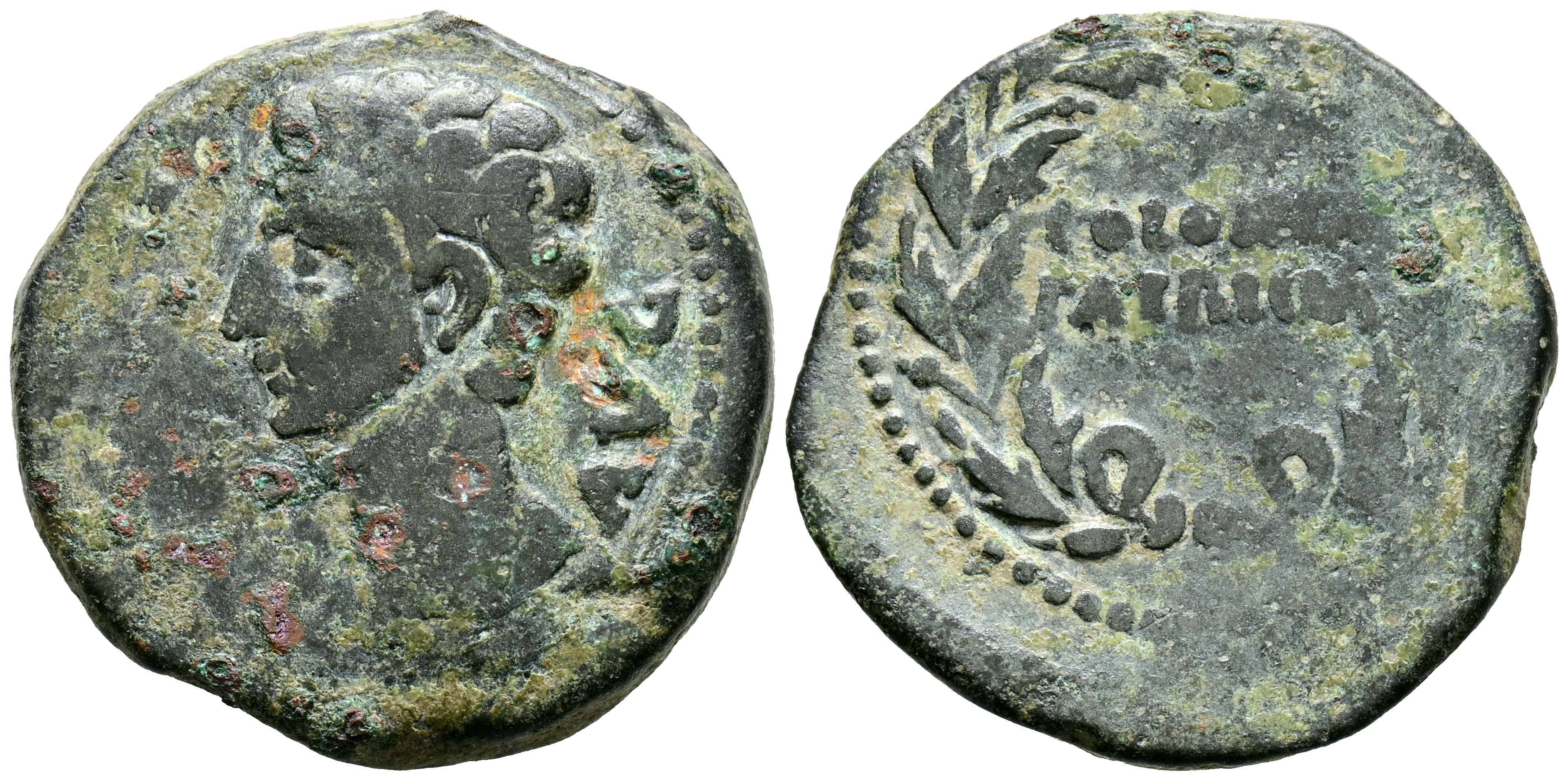 COLONIA PATRICIA (Córdoba). As. (Ae. 9,76g/26mm). 27 a.C.-14 d.C. (FAB-1989). Anv: Cabeza de Augusto a izquierda, alrededor leyenda: PERM CAES AVG. Rev: Leyenda: COLONIA PATRICIA, dentro de corona de laurel. MBC.
