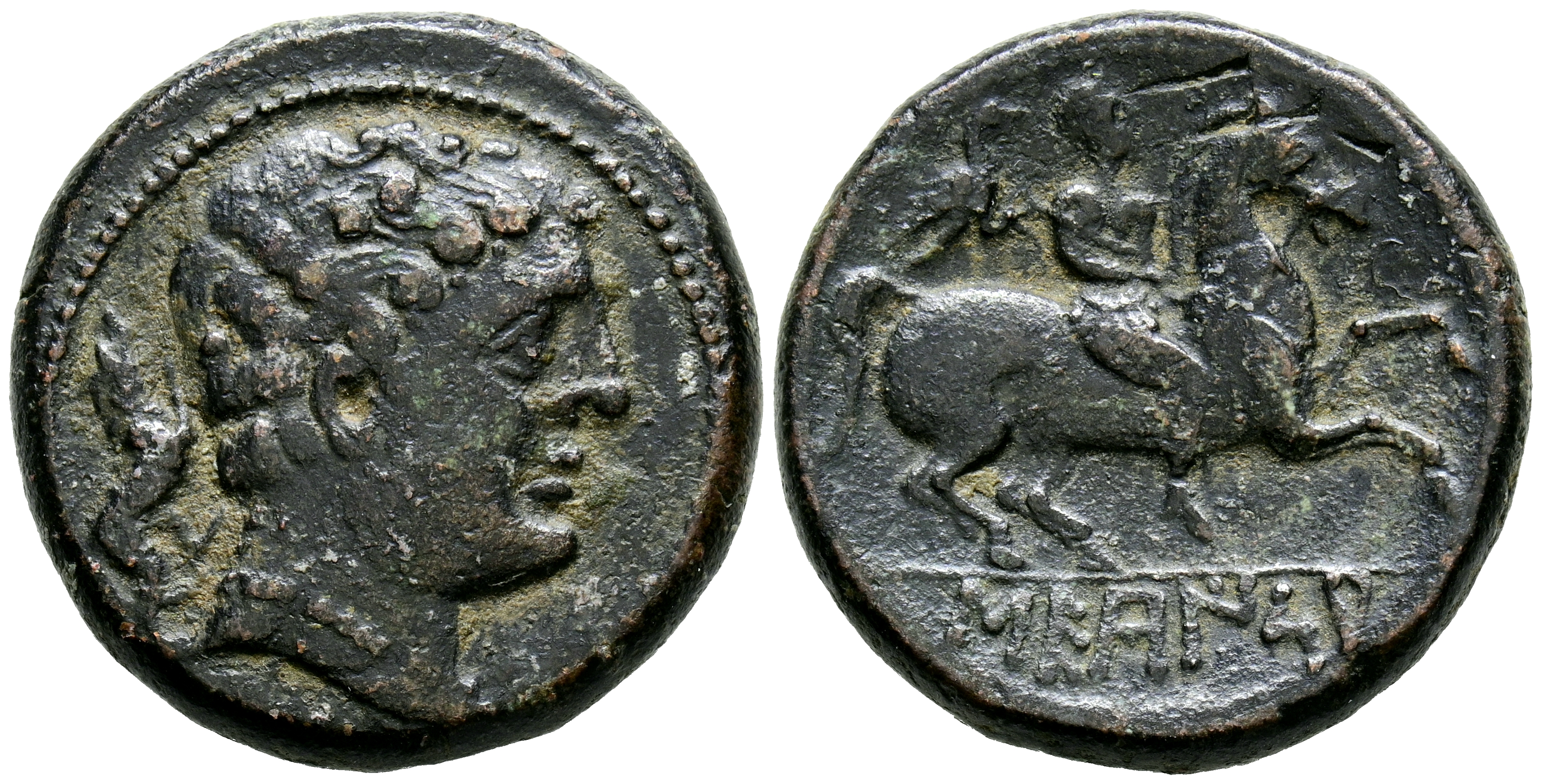 SECAISA (Segeda, Zaragoza). As. (Ae. 14,67g/27mm). 120-20 a.C. (FAB-2129). Anv: Cabeza masculina a derecha, detrás león. Rev: Jinete con estandarte con águila a la derecha, debajo leyenda ibérica: SECaISA. MBC. Escasa.