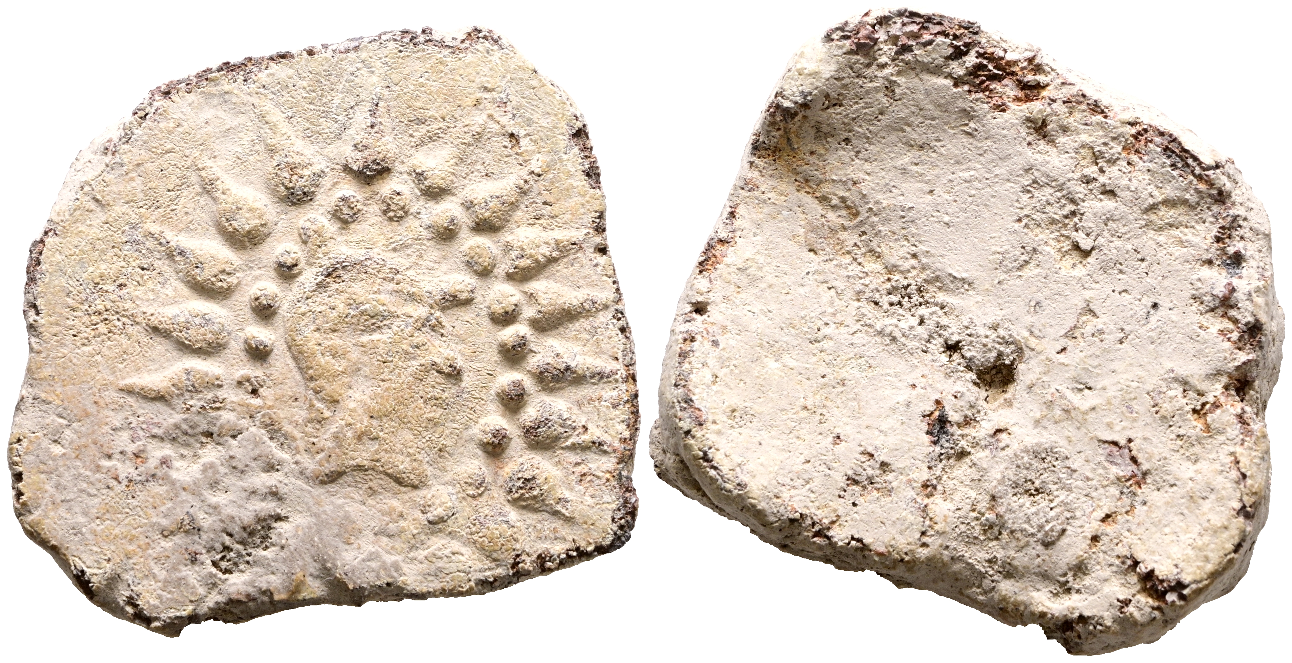 PLOMO INCIERTO. Plomo monetiforme. (Pb. 49,26g/41mm). (CCP no cita). Anv: Cabeza con casco a derecha dentro de corona de glóbulos y rayos. Rev: liso. MBC-.