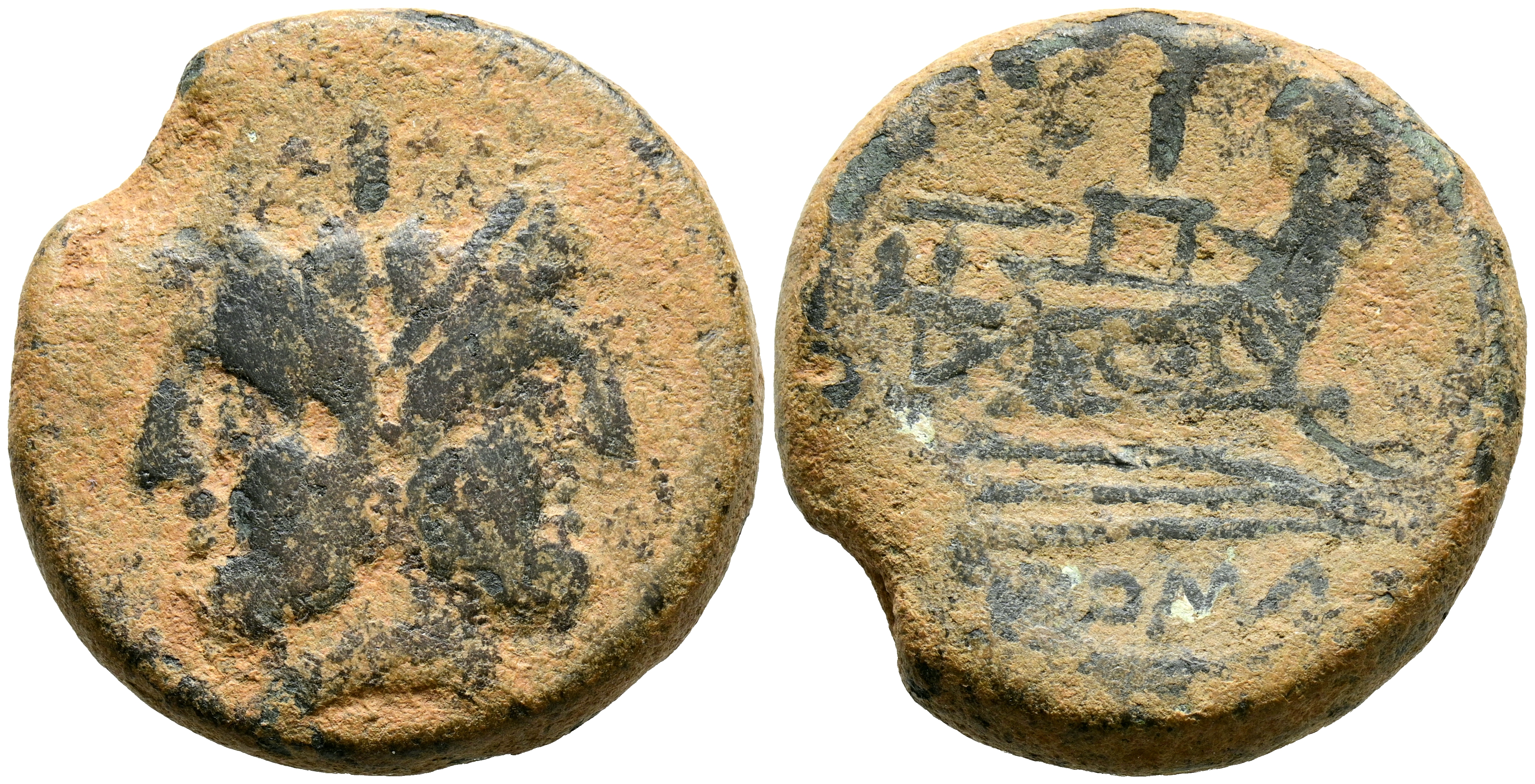 ACUÑACIONES ANONIMAS. As. (Ae. 31,94g/32mm). 211 a.C. Roma. (Crawford 56/2). Anv: Cabeza laureada de Jano bifronte, encima I. Rev: Proa a derecha, debajo ROMA. MBC-.