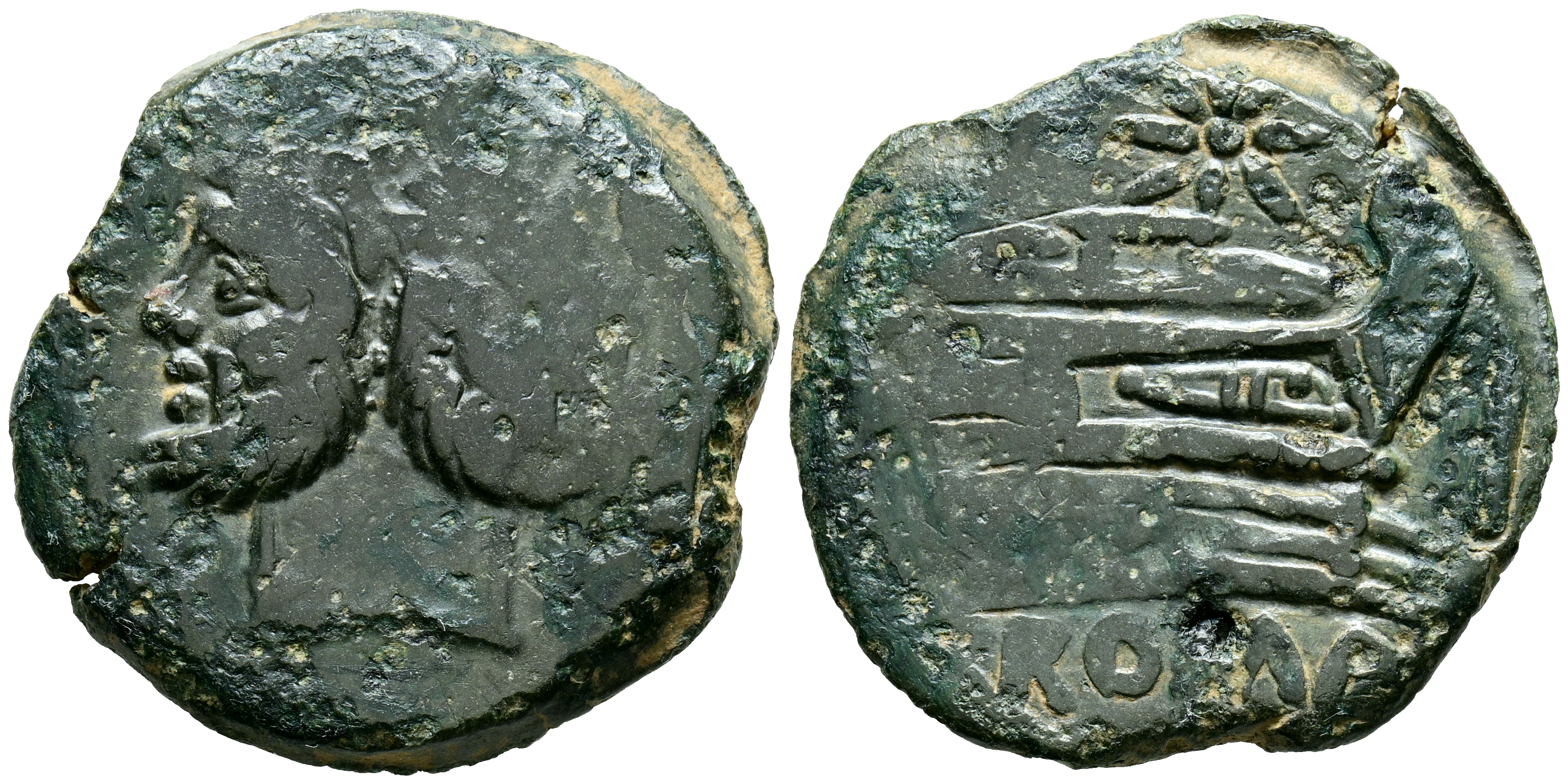 ACUÑACIONES ANONIMAS. As. (Ae. 15,09g/30mm). 169-158 a.C. Roma. (Crawford 196/1). Anv: Cabeza bifronte laureada de Jano, encima: I. Rev: Proa a derecha, encima estrella, delante I, debajo: ROMA. MBC.