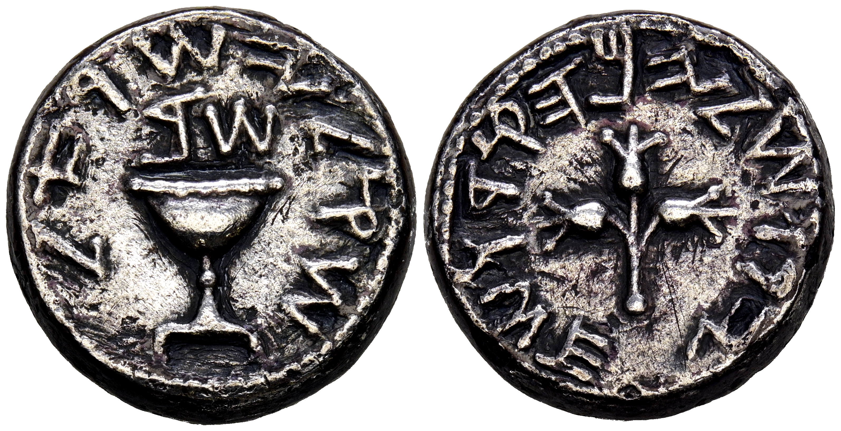 JUDAEA, 1º Guerra Judía (66-70 d.C.). Shekel. (Ar. 13,17g/22mm). Año 2 (67-68 d.C.). Jerusalén. (Hendin 1358; Meshorer 193). Anv: Copa Omer con decoración perlada, encima año 2 en hebreo, alrededor leyenda en hebreo. Rev: Tallo con tres granadas, alrededor leyenda en hebreo. MBC+. Muy raro ejemplar. Limpiada mecánicamente.La Primera Guerra Judía o también llamada Gran Revuelta Judía forma parte de una serie de conflictos bélicos que enfrentó al pueblo judío con el Imperio Romano entre los siglos I y VII d.C. Esta pieza, de enorme trascendencia histórica, pertenece al primero de ellos , teniendo entre sus coetáneos a figuras de la talla de Vespasiano o Tito, este último artífice de la conquista de Jerusalén allá por el año 70 d.C . En el año 68 d.C., año de acuñación de esta moneda, sucedió una de las principales campañas romanas que sometió a gran parte de Judea, Samaria, Idumea y Perea, dejando a la emblemática y estratégica Jerusalén aislada y lista para un gran golpe final. Sin embargo, este hecho no sucedió hasta pasados un par de años ya que las disputas en torno al trono imperial alargaron, más de lo deseado, este conflicto provocando una breve reactivación de las tropas judías que terminaron por, finalmente, sucumbir ante el poderío militar de Tito que terminó no sólo con la revuelta en este primera fase, sino que arrasó completamente la ciudad. Lo ocurrido por estas fechas en Judea no es diferente a lo que acontecía en otros lugares del Imperio, donde las desigualdades sociales, los altos impuestos y los malos gobiernos invitaban a continuas rebeliones. Sin embargo, en el caso de Judea habría que añadir también el aspecto religioso-político como diferenciador: no ser judío era motivo suficiente para cuestionar la legitimidad de un gobierno romano sobre Judea.