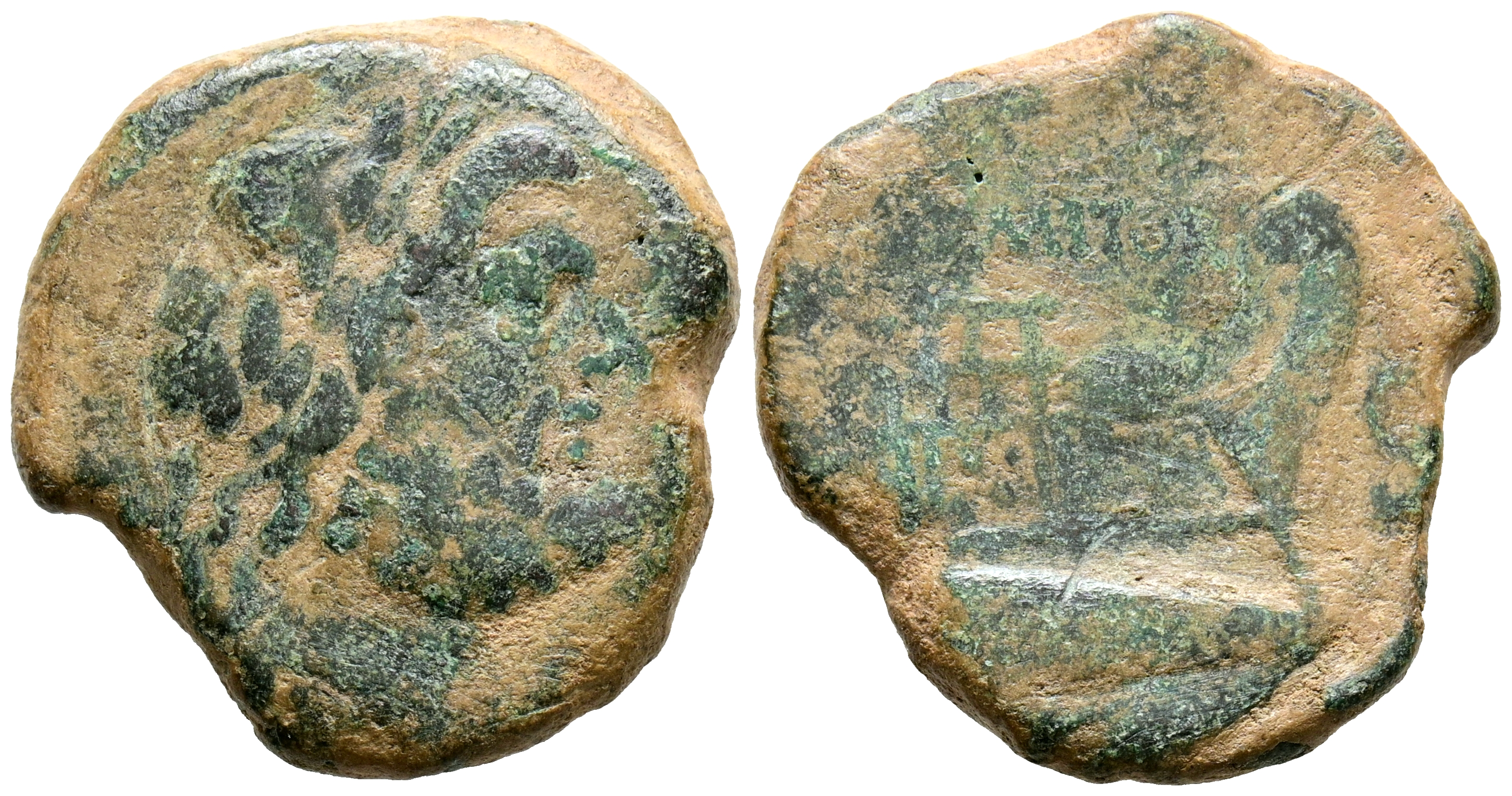 GENS NUMITORIA. Semis. (Ae. 7,93g/23mm). 127 a.C. Roma. (Crawford 263/3a). Anv: Cabeza laureada de Zeus a derecha, detrás S. Rev: Proa a derecha, encima leyenda: C NVMITORI, debajo: ROMA, delante S. MBC-/BC+.