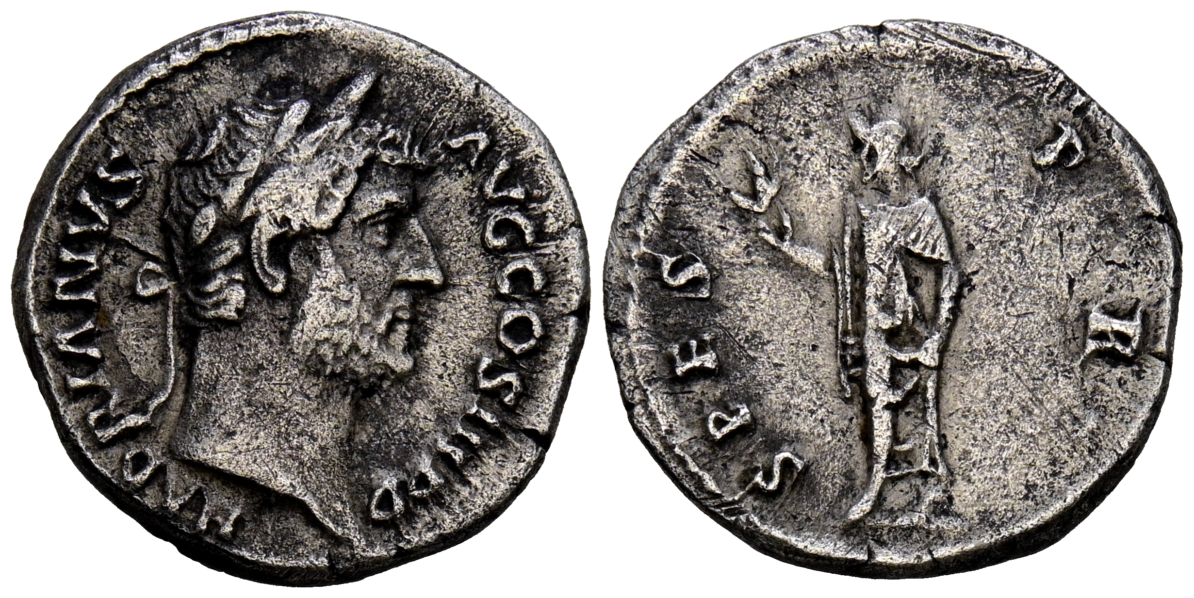 ADRIANO. Denario. (Ar. 3,17g/17mm). 134-138 d.C. Roma. (RIC 274). Anv: Cabeza laureada de Adriano a derecha, alrededor leyenda: HADRIANVS AVG COS III P P. Rev: Spes avanzando a izquierda portando flor, alrededor leyenda: SPES P R. MBC.