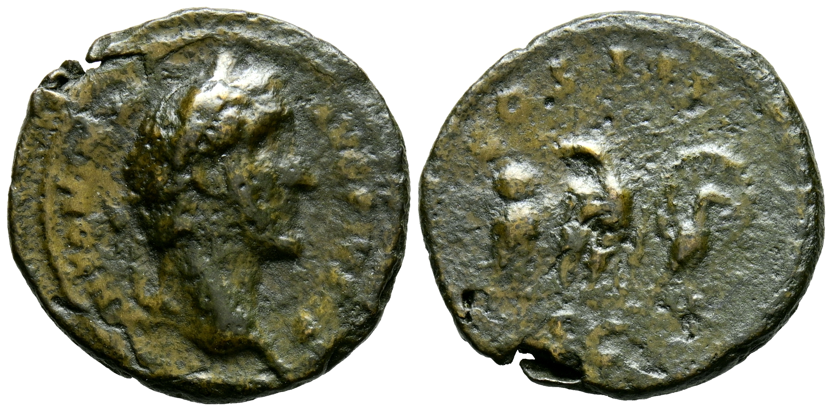 ANTONINO PIO. Cuadrante. (Ae. 3,43g/19mm). 138-161 d.C. Roma. (RIC 709b). Anv: Cabeza laureada de Antonino Pío a la derecha, alrededor leyenda: ANTONINVS AVG PIVS P P TR P. Rev: Búho, águila y pavo real estantes de frente, en exergo: SC, encima: COS III. BC+. Raro.