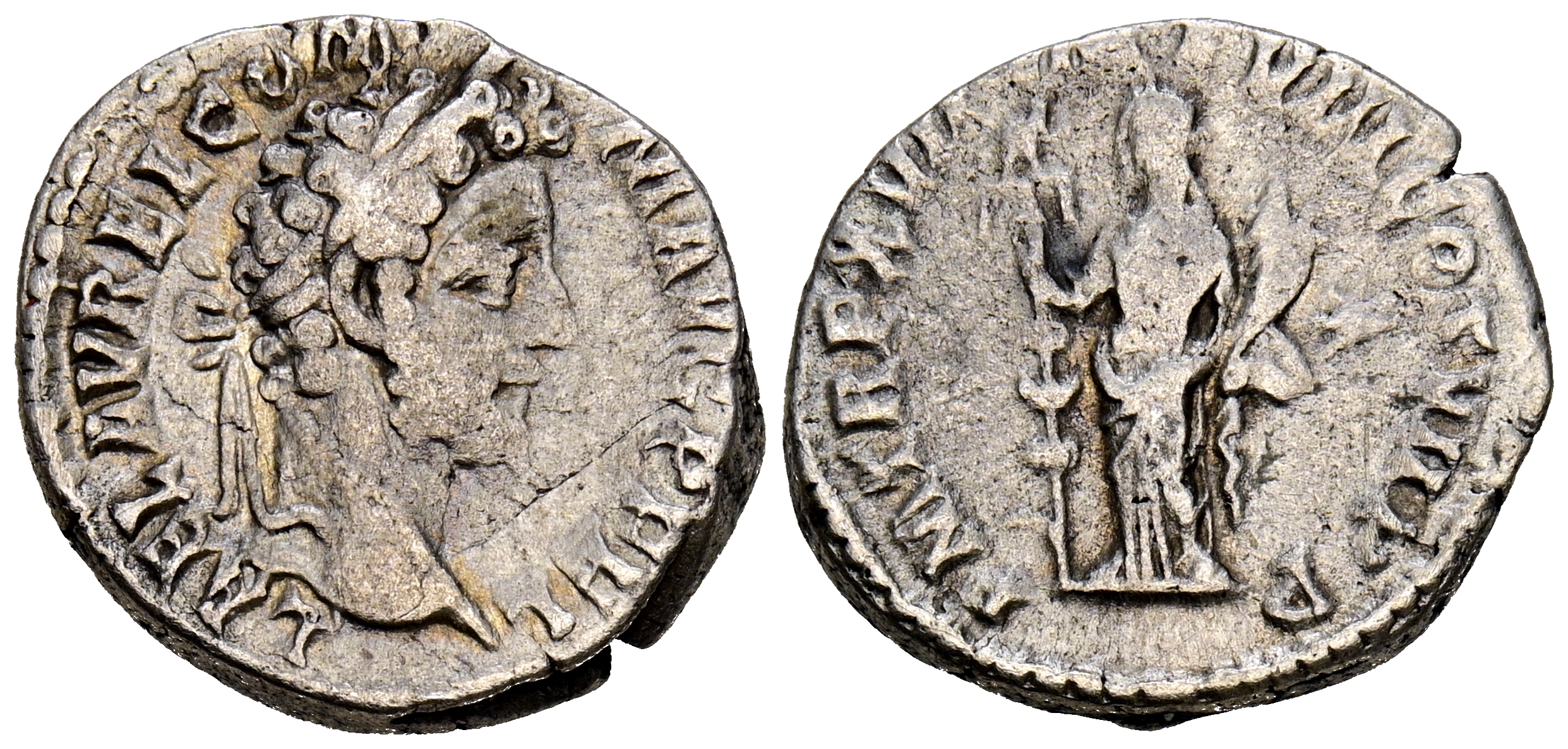 COMODO. Denario. (Ar. 2,95g/17mm). 192 d.C. Roma. (RIC 234 var). Anv: Cabeza laureada de Cómodo a derecha, alrededor leyenda: L AEL AVREL COMM AVG P FEL. Rev: Fides estante a izquierda portando cetro y cornucopia, detrás estrella, alrededor leyenda: P M TR P XVII IMP VIII COS VII P P. MBC+.