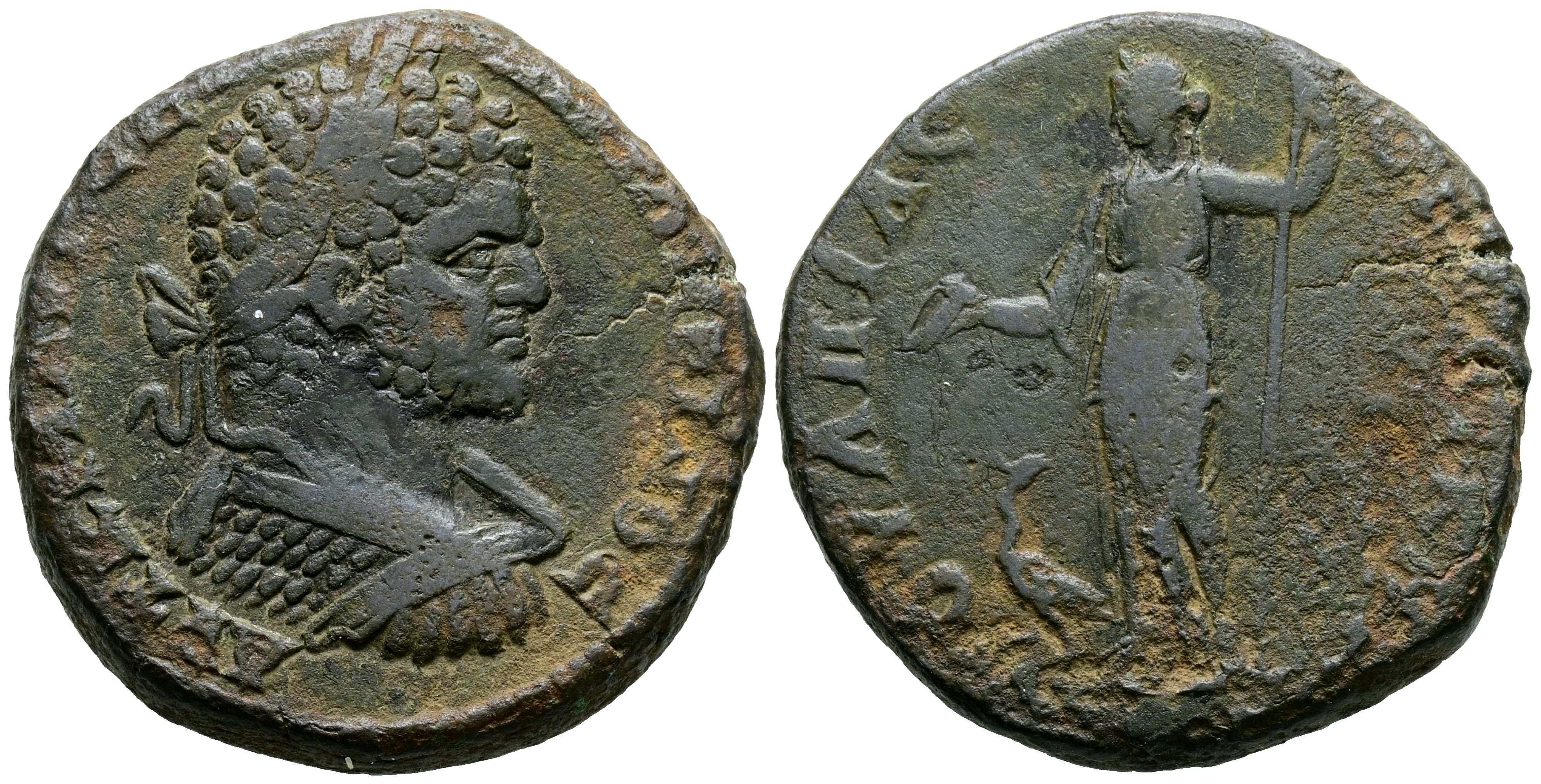 CARACALLA. Ae28. (Ae. 17,08g/28mm). 198-217 d.C. Serdica, Tracia. (Varbanov 2306). Anv: Busto laureado y con coraza de Caracalla a derecha, alrededor leyenda: AVT K M AVP CEV ANTΩNEINOC. Rev: Demetér estante a izquierda portando patera y cetro, a sus pies pavo, alrededor leyenda: OVΛΠIAC CEPΔIKHC. MBC-/BC+.