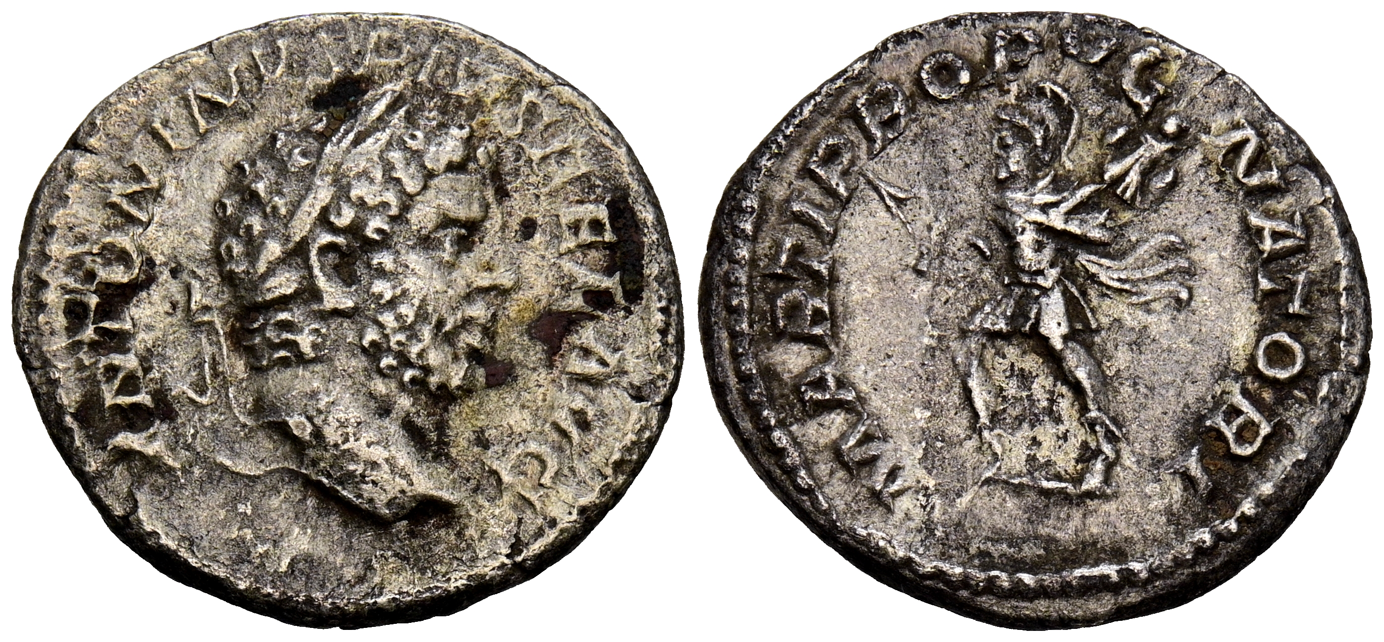 CARACALLA. Denario. (Ar. 3,09g/19mm). 210-213 d.C. Roma. (RIC 235). Anv: Busto laureado de Caracalla a derecha, alrededor leyenda: ANTONINVS PIVS FEL AVG. Rev: Marte avanzando a izquierda portando lanza y trofeo, alrededor leyenda: MARTI PROPVGNATORI. MBC+.
