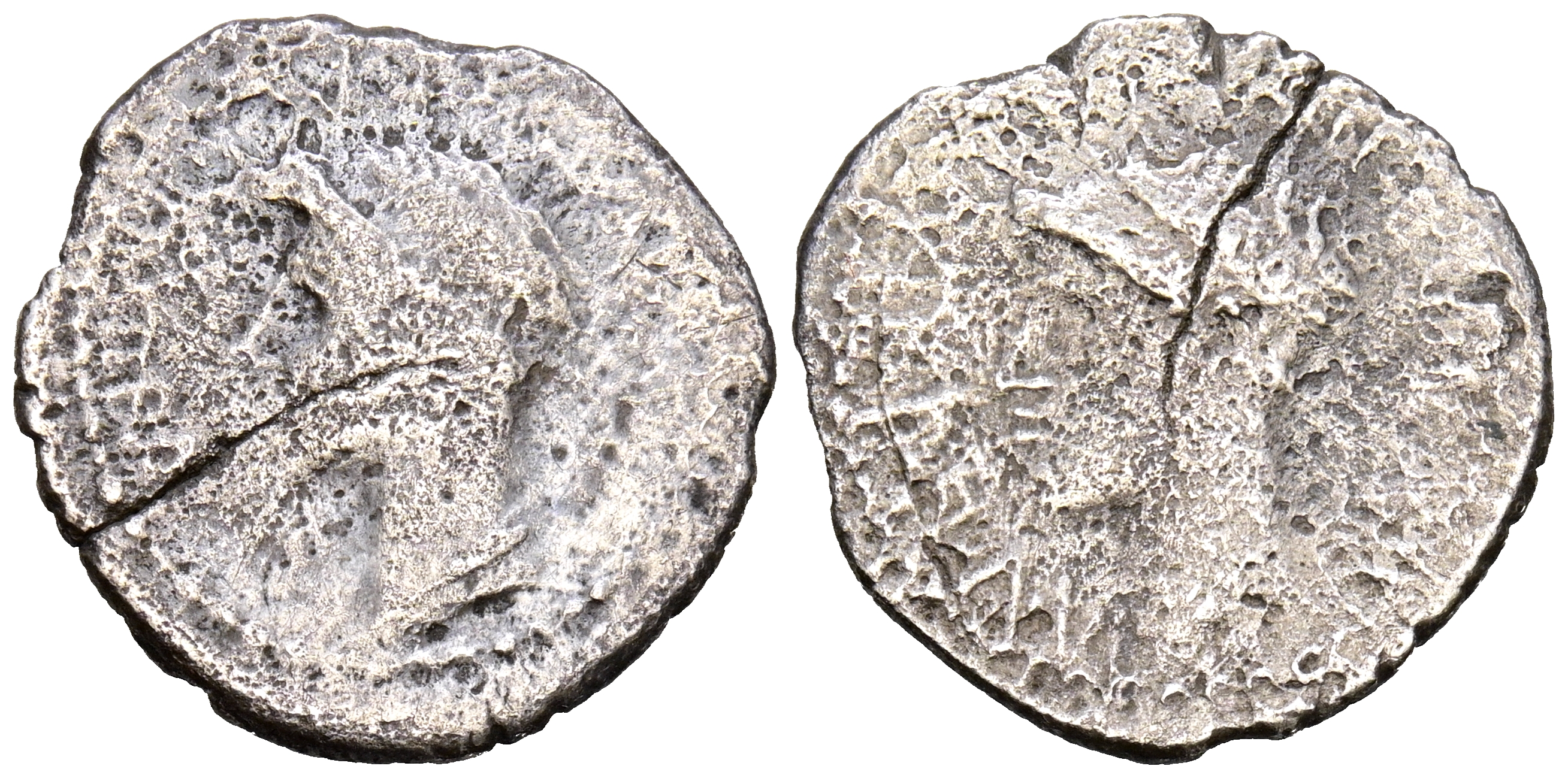 REYES DE MAURITANIA, Juba II con Cleopatra Selene. Denario (Ar. 2,56g/18mm). 20 -19 a.C. Cesarea. (MAA 114; Mazard 357; SNG Copenhague 546). Anv: Cabeza diademada de Juba II a izquierda, alrededor leyenda: REX IVBA REGIS NEAI F R A VI. Rev: Busto dra peado de Cleopatra Selene a la izquierda, alrededor leyenda: BACIΛICCA KΛЄOΠATPA. BC.