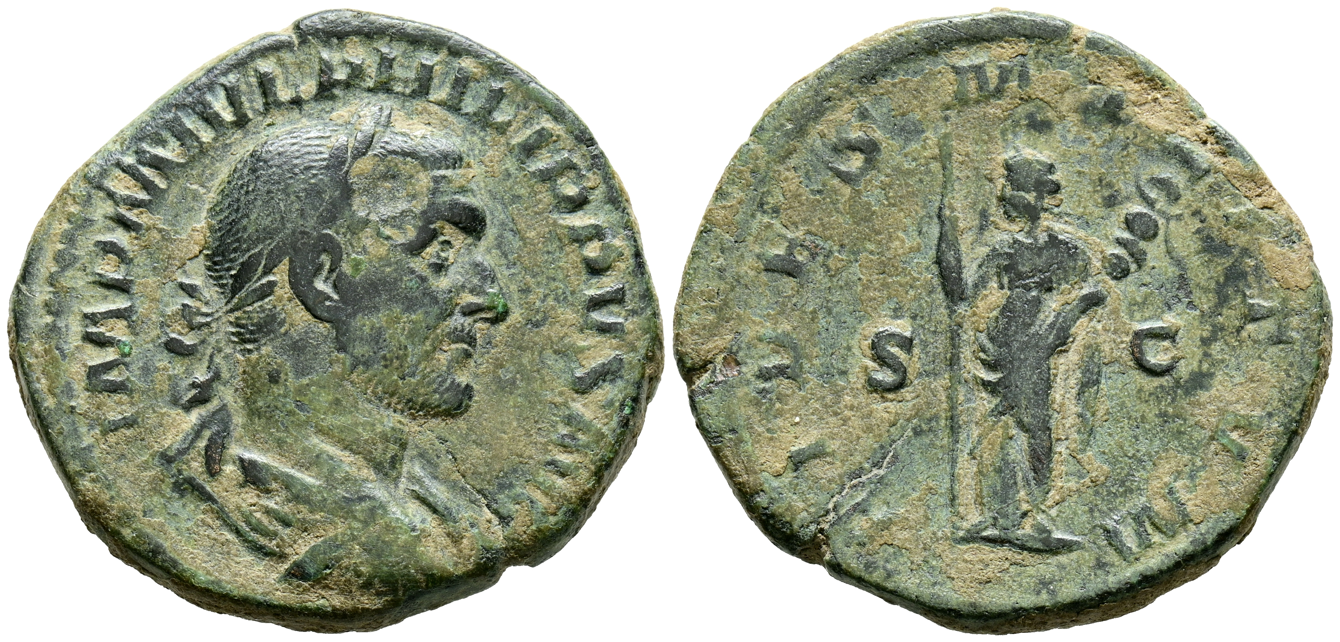 FILIPO I. Sestercio. (Ae. 17,37g/31mm). 244-249 d.C. Roma. (RIC 172a). Anv: Busto laureado y drapeado de Filipo I a derecha, alrededor leyenda: IMP M IVL PHILIPPVS AVG. Rev: Fides estante a izquierda portando dos estandartes, entre S-C, alrededor leyenda: FIDES MILITVM. MBC-. Defecto de acuñación en anverso.