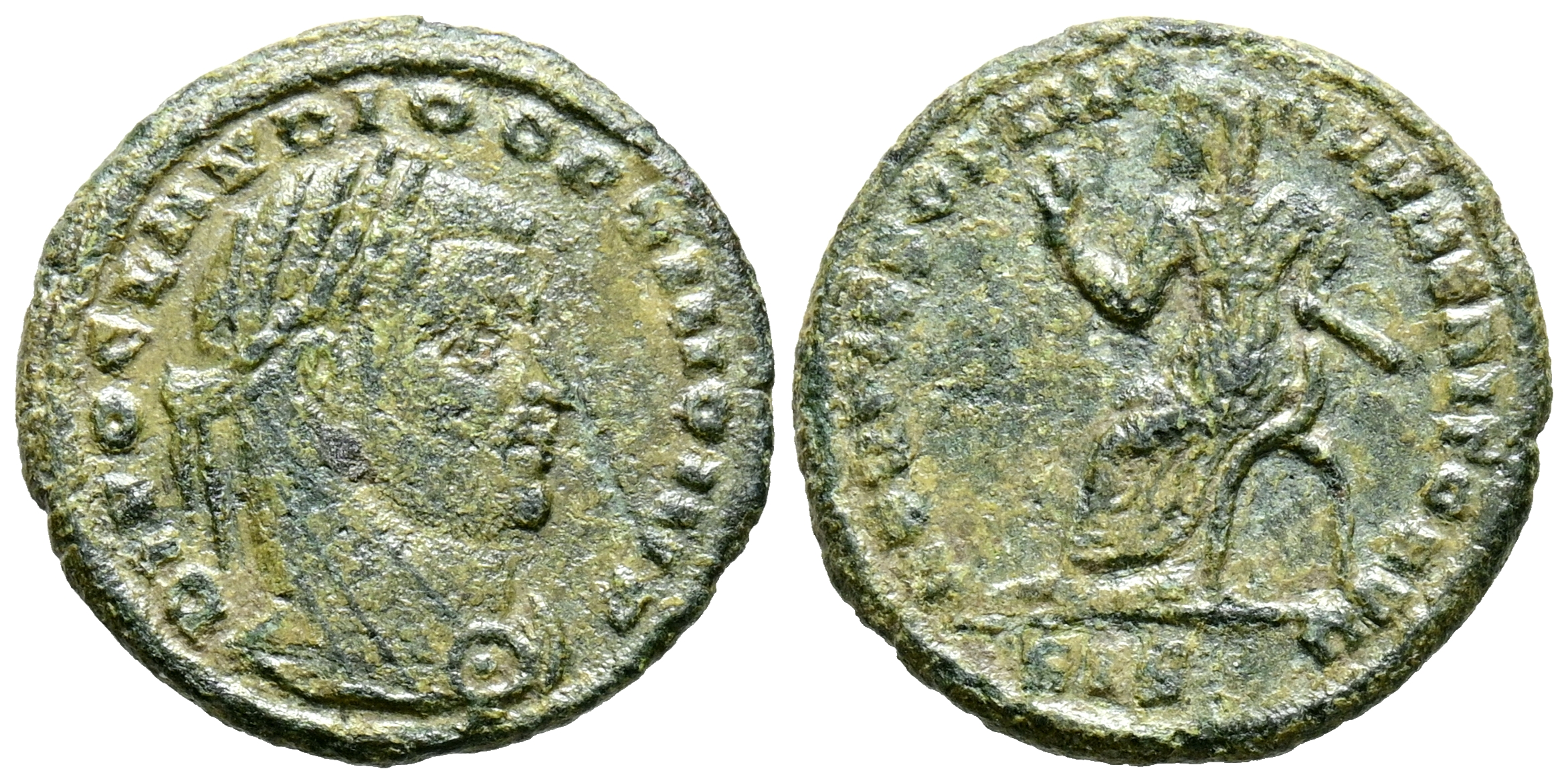 CLAUDIO II, el Gótico. 1/2 Follis. (Ae. 1,59g/16mm). 317-318 d.C. Siscia. (RIC 43). Anv: Busto laureado y velado de Claudio II a derecha, alrededor leyenda: DIVO CLAVDIO OPTIMO IMP. Rev: Claudio II velado y sedente a izquierda, sosteniendo cetro y mano derecha en modo de saludo, en exergo: SIS, alrededor leyenda: REQVIES OPTIMO RVM MERITORVM. MBC. Rara.