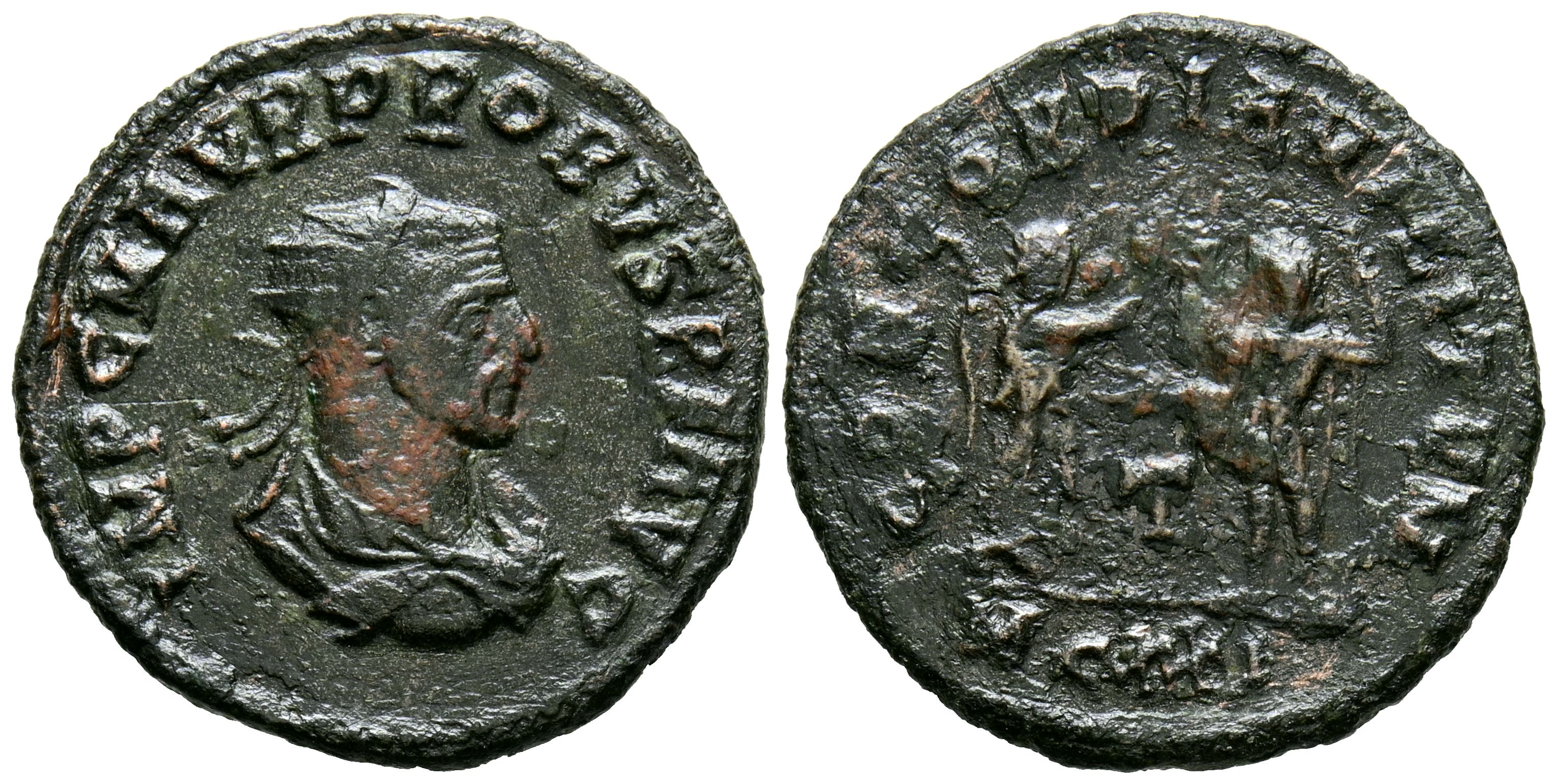 PROBO. Antoniniano. (Ae. 3,61g/21mm). 280 d.C. Cícico. (RIC 907) Anv: Busto radiado, drapeado y coraza de Probo a la derecha, alrededor leyenda: IMP C M AVR PROBVS P F AVG. Rev: Victoria estante a la izquierda, presentando corona de laurel a Probo, estante a la derecha y portando lanza; en campo T, en exergo: MCXXI, alrededor leyenda: CONCORDIA MILITVM. MBC/MBC-.
