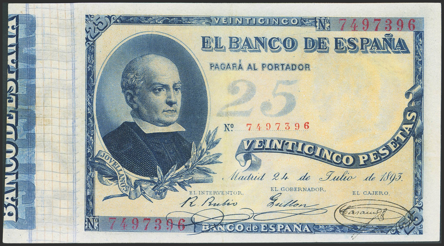 25 Pesetas. 24 de Julio de 1893. Sin serie. (Edifil 2023: 300). Raro, especialmente en esta alta calidad y sin ninguna reparación. EBC-.