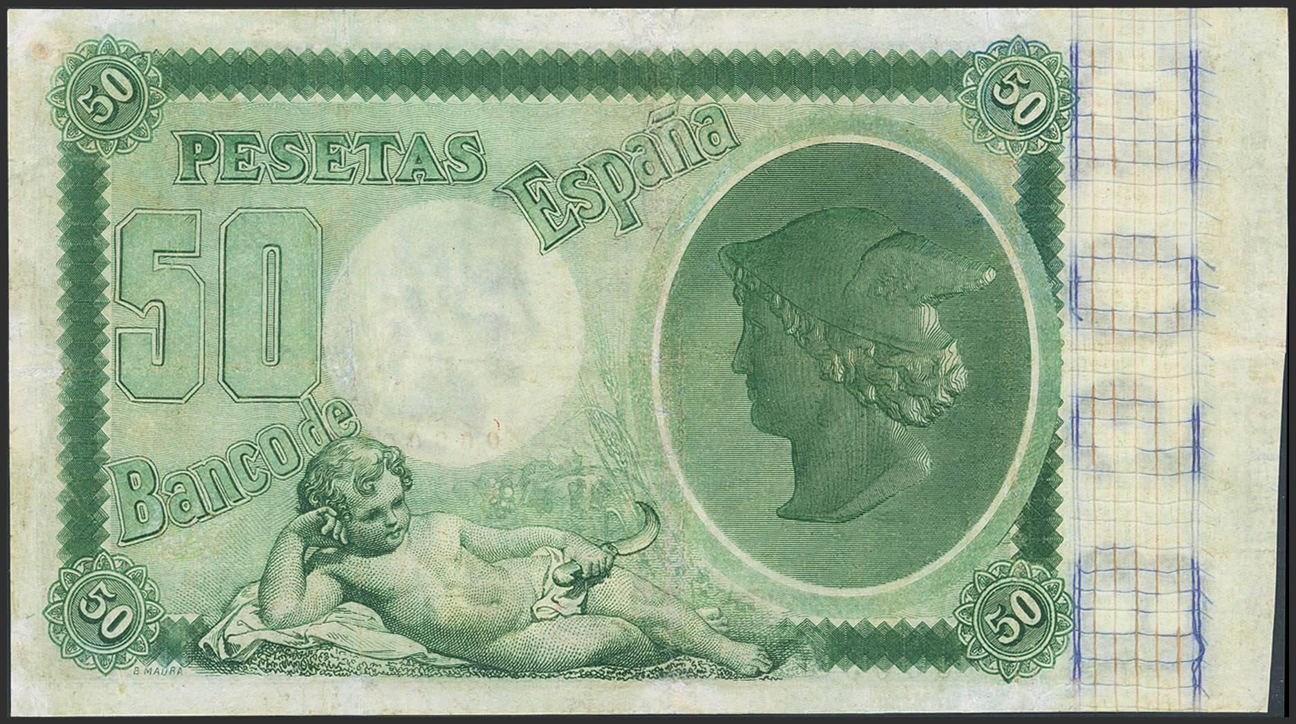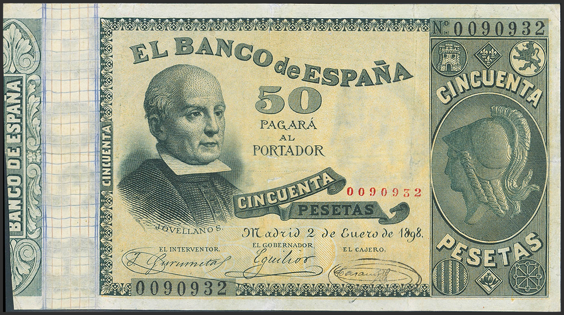 50 Pesetas. 2 de Enero de 1898. Sin serie. (Edifil 2023: 304). Raro, reparado. MBC.