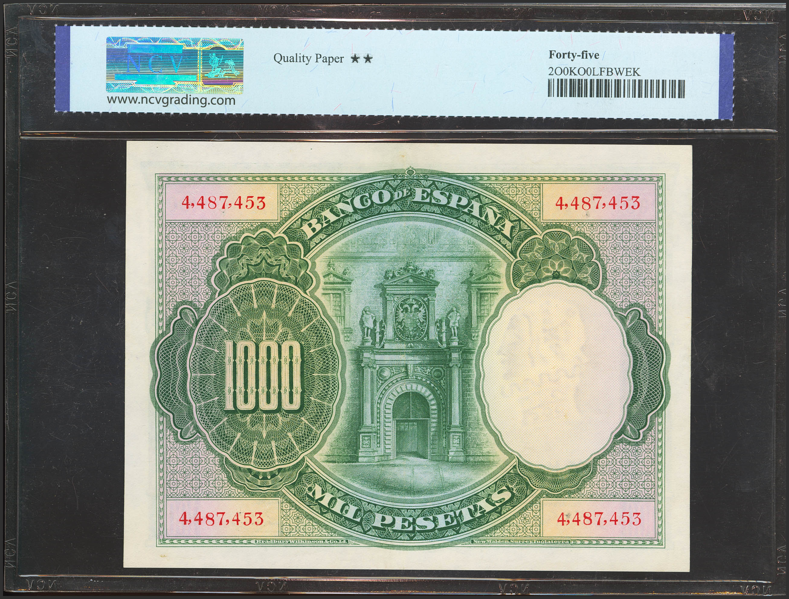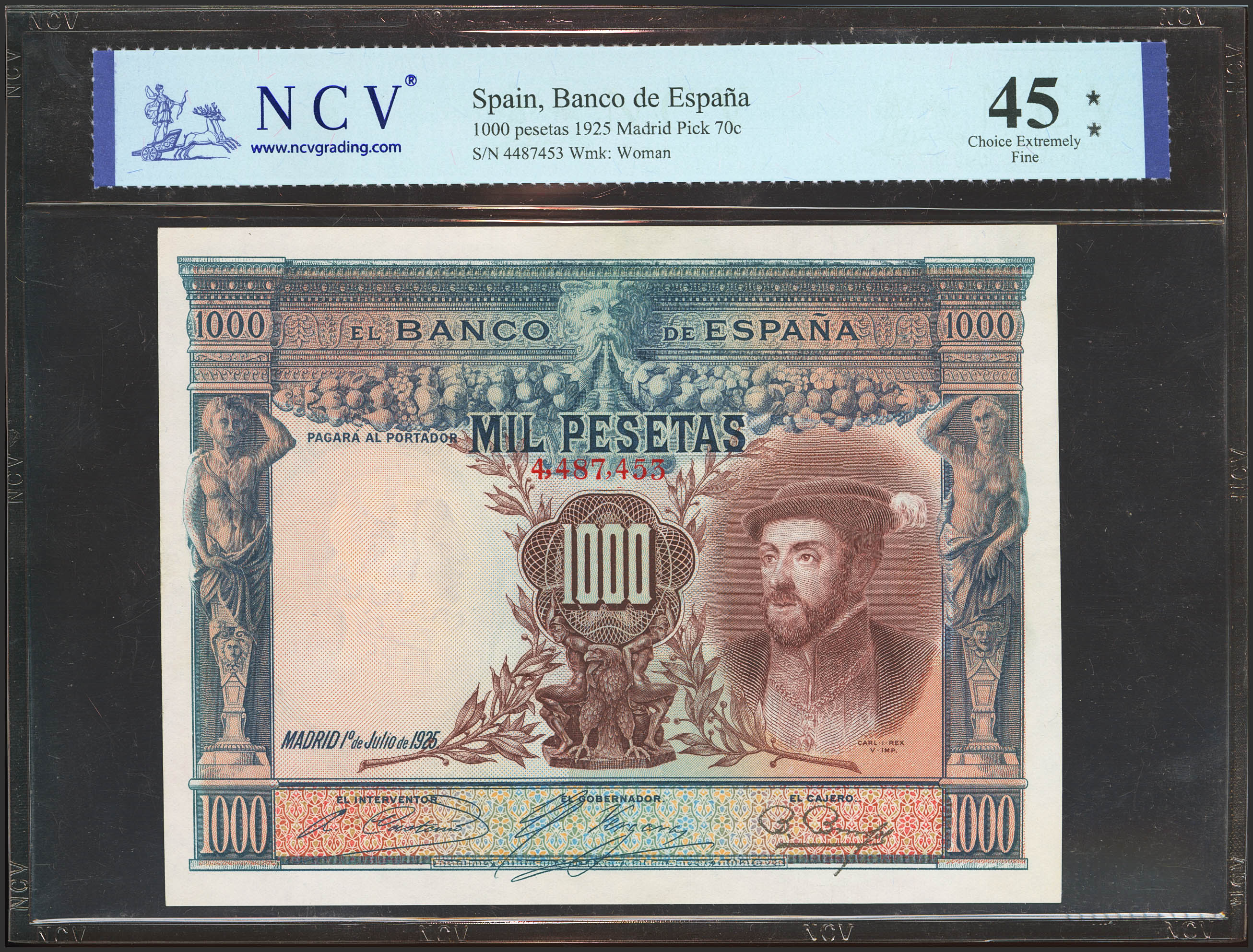 1000 Pesetas. 1 de Julio de 1925. Sin serie y numeración posterior a 3646000. (Edifil 2023: 351, Pick: 70c). EBC-. Encapsulado NCV45.