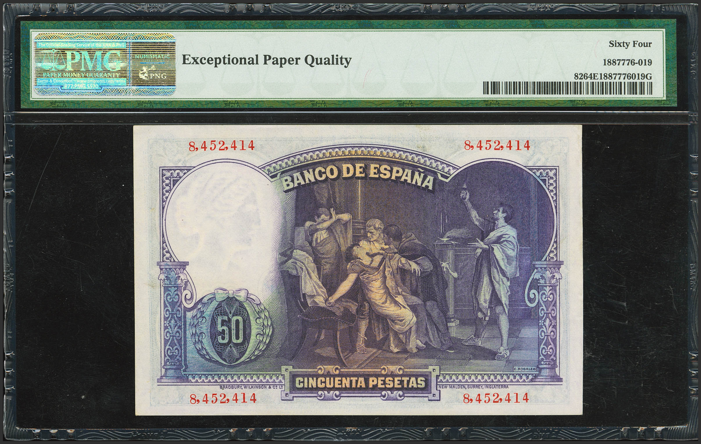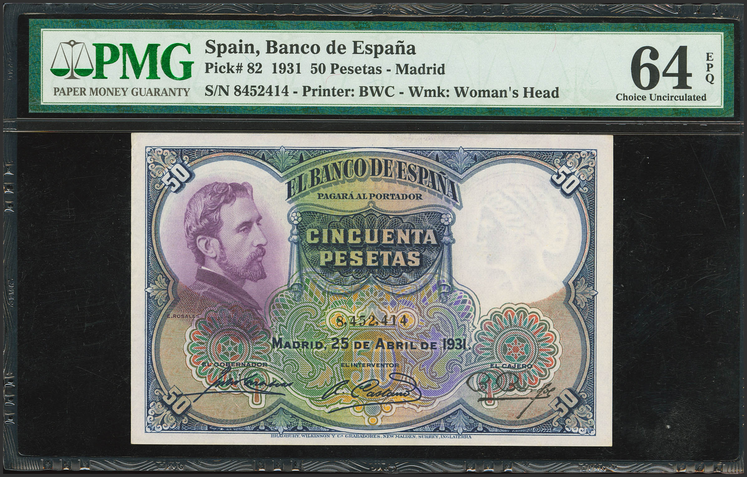 50 Pesetas. 25 de Abril de 1931. Sin serie. (Edifil 2023: 359, Pick: 82). Raro en esta excepcional calidad, apresto original. SC. Encapsulado PMG64EPQ.