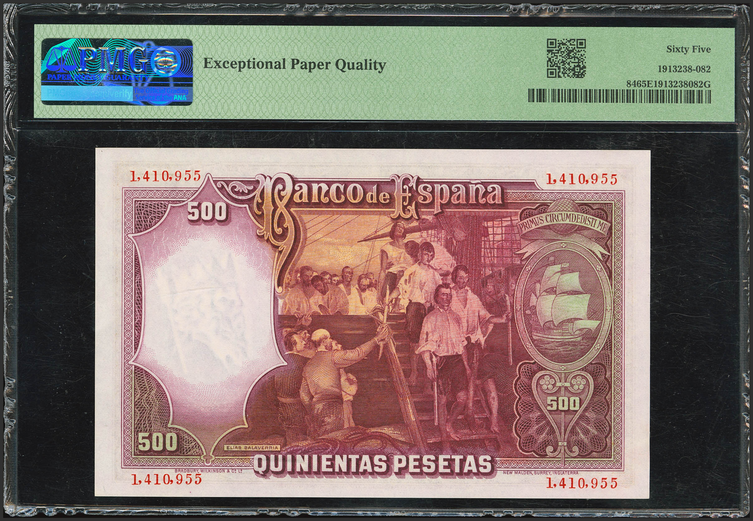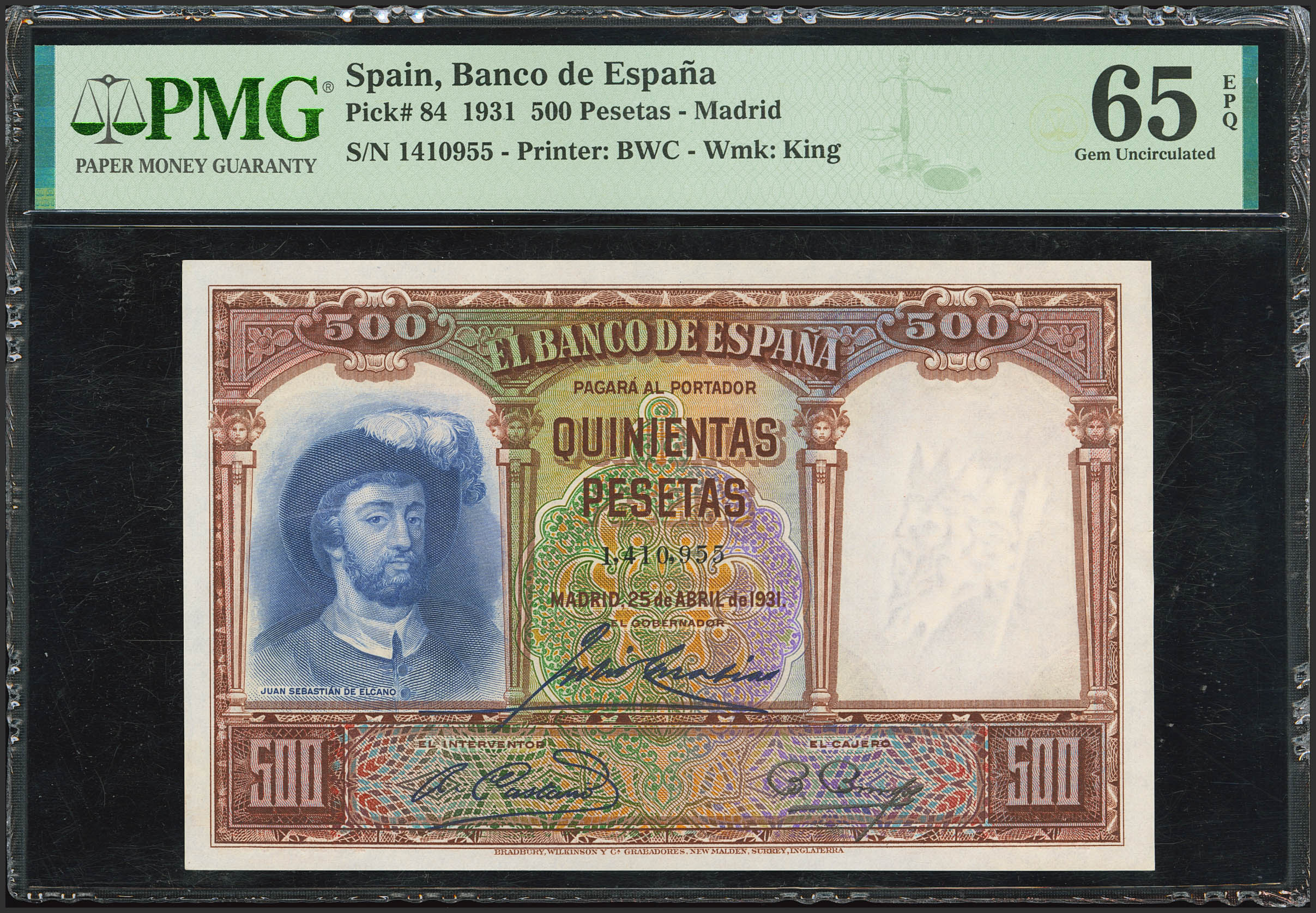 500 Pesetas. 25 de Abril de 1931. Sin serie. (Edifil 2023: 361, Pick: 84). Inusual en esta calidad, apresto original. SC. Encapsulado PMG65EPQ.