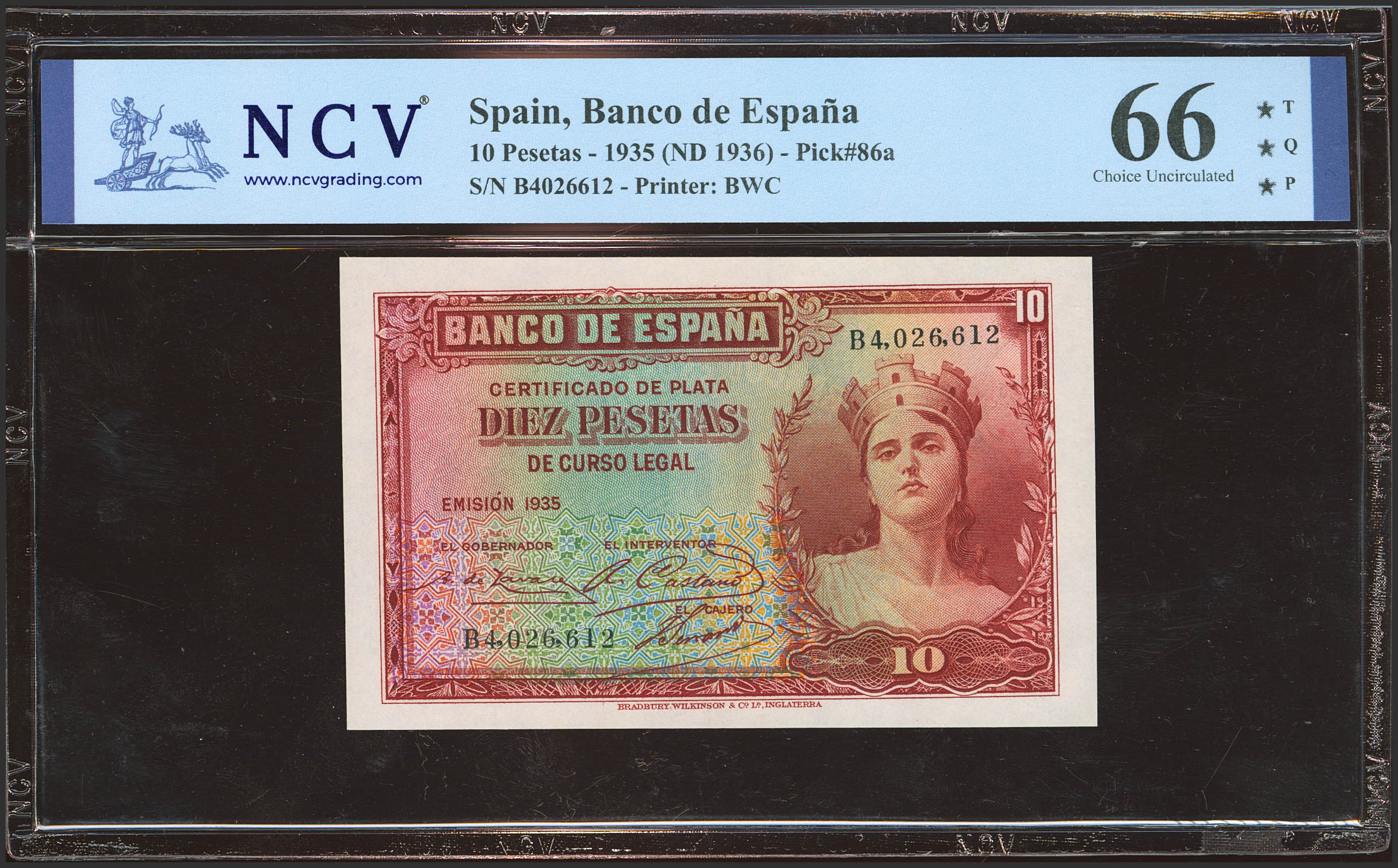 10 Pesetas. 1935. Certificado de Plata. Serie B. (Edifil 2023: 364a, Pick: 86a). Apresto original. SC. Encapsulado NCV66TQP.
