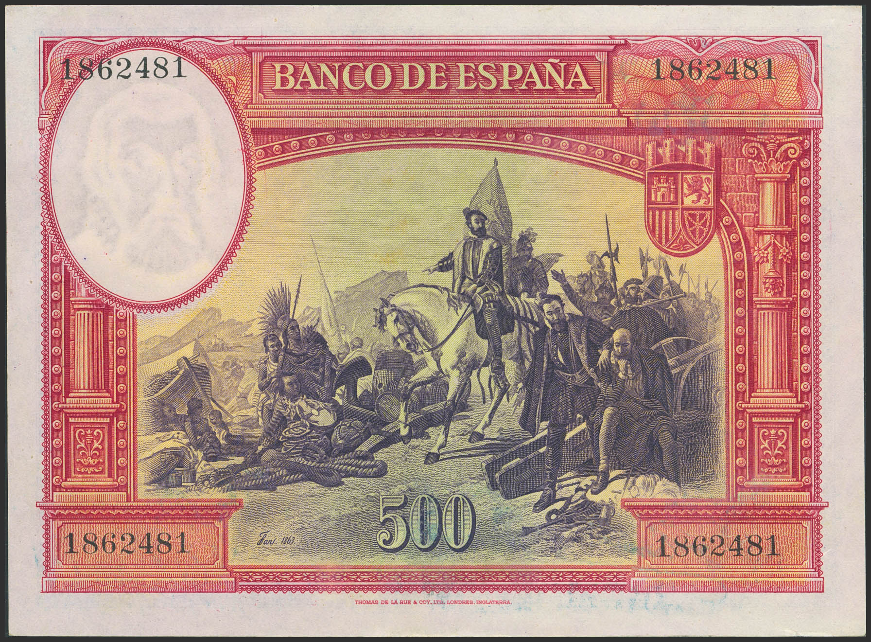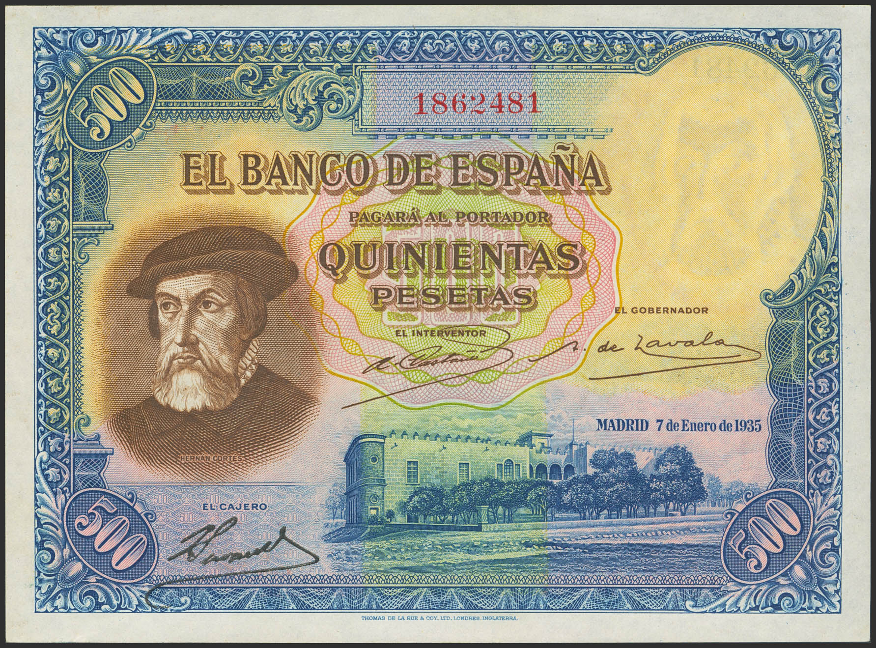 500 Pesetas. 7 de Enero de 1935. Sin serie. (Edifil 2023: 365). Apresto original. SC-.