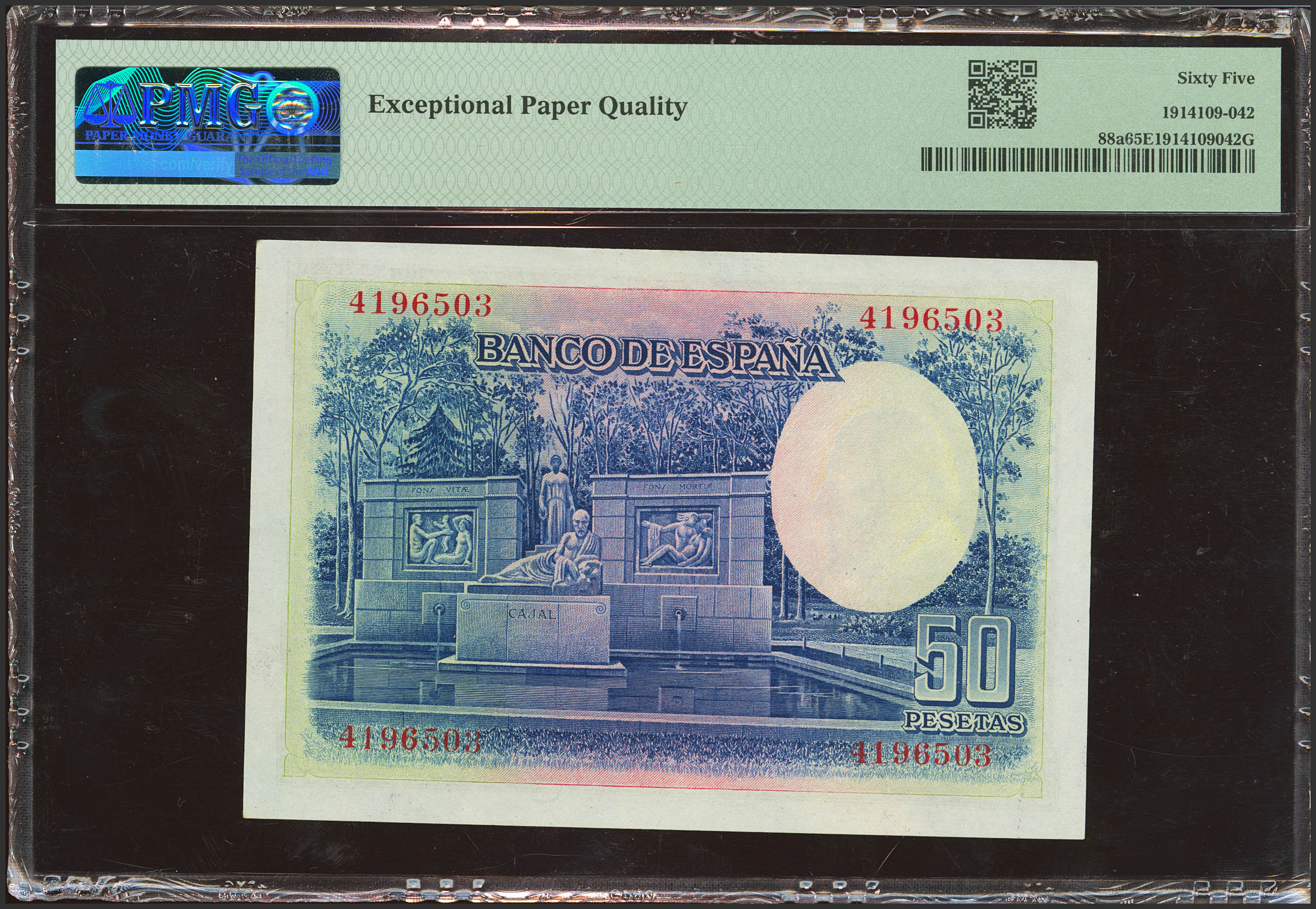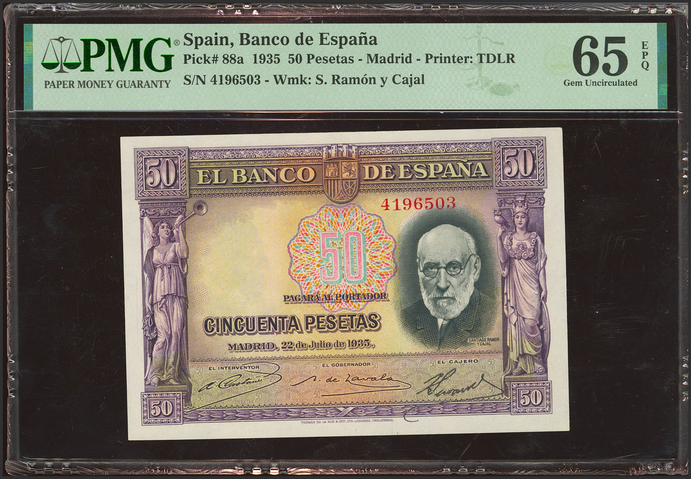 50 Pesetas. 22 de Julio de 1935. Sin serie. (Edifil 2023: 366, Pick: 88a). Apresto original. SC. Encapsulado PMG65EPQ.