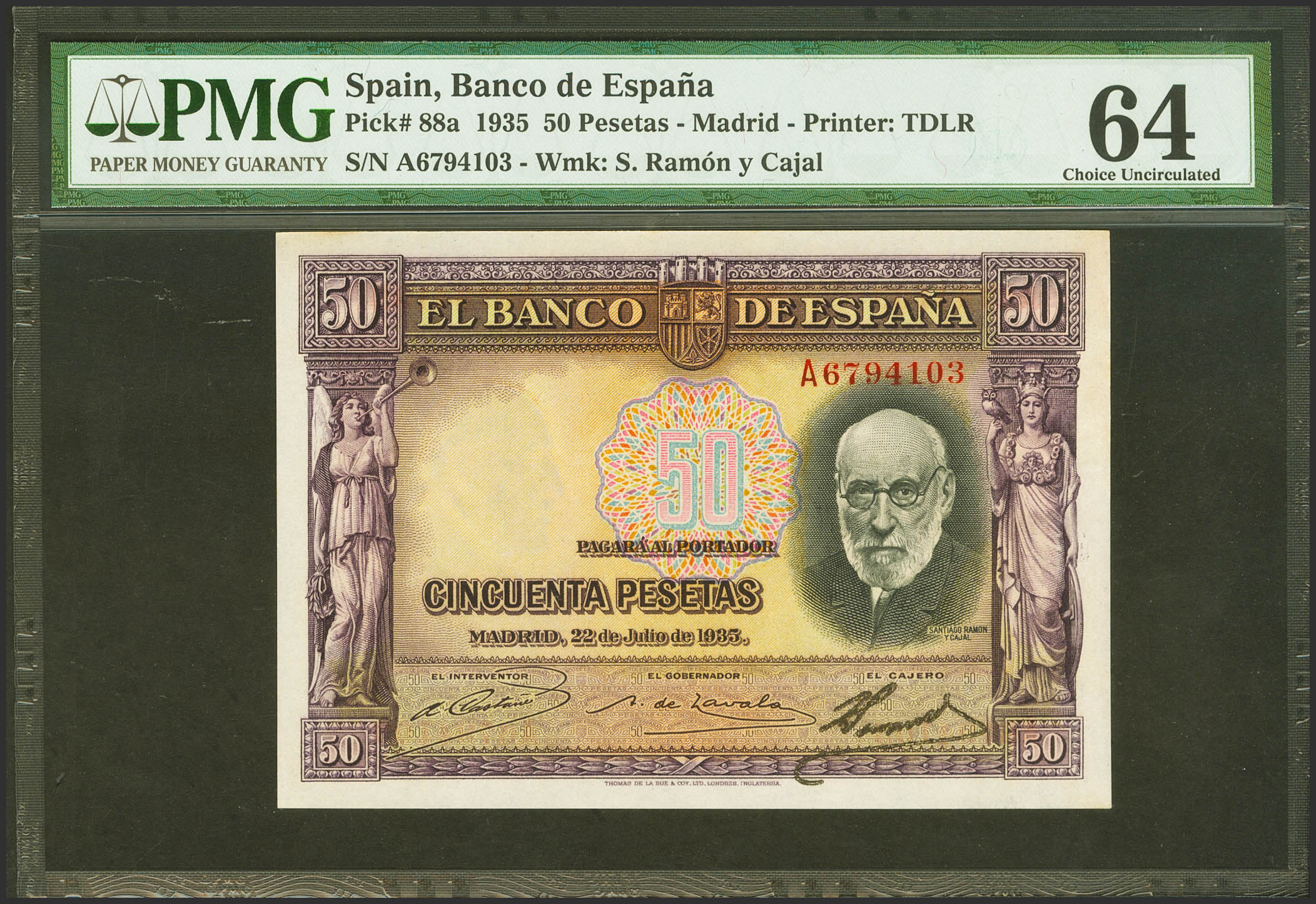 50 Pesetas. 22 de Julio de 1935. Serie A. (Edifil 2021: 366a). SC. Encapsulado PMG64.