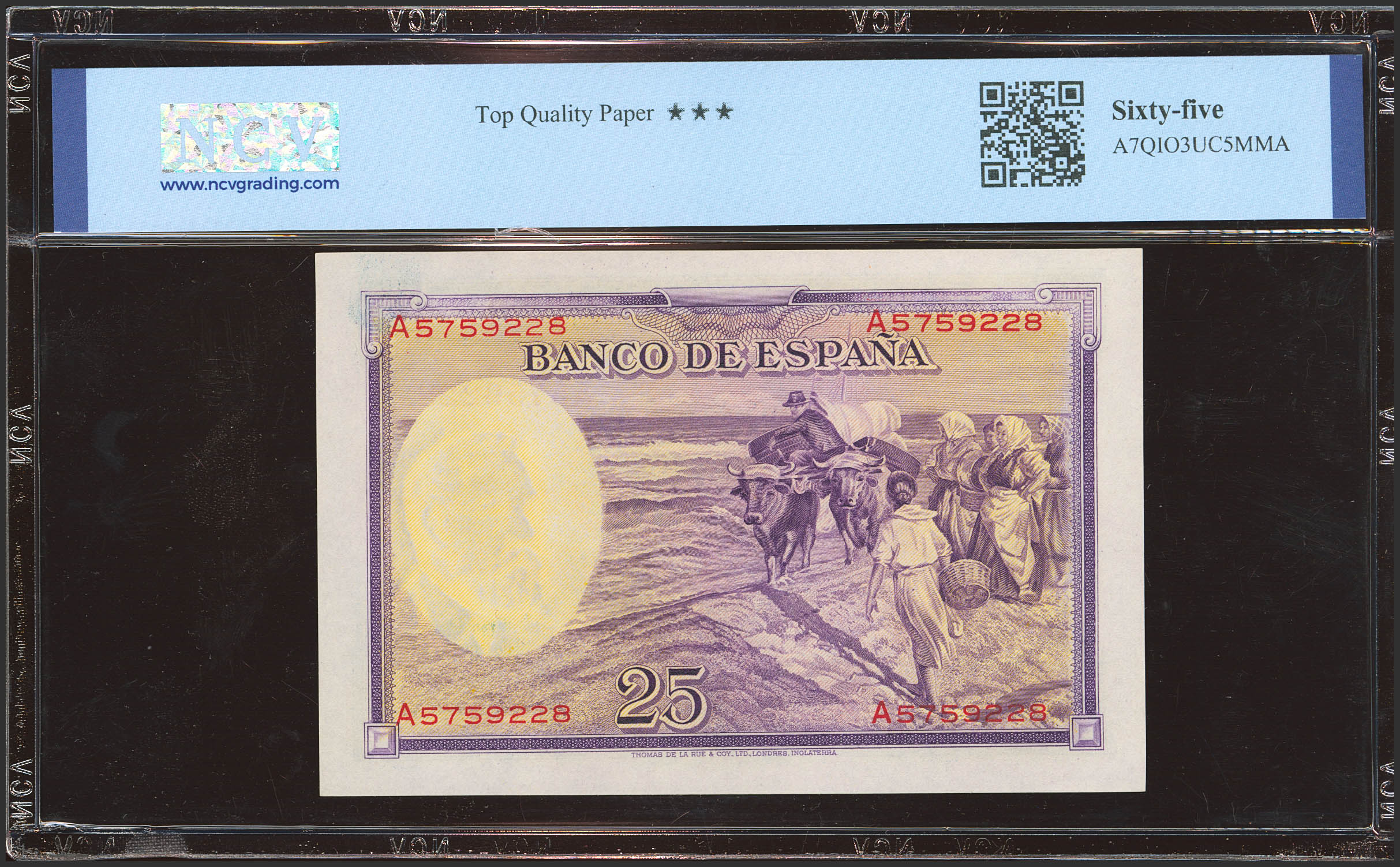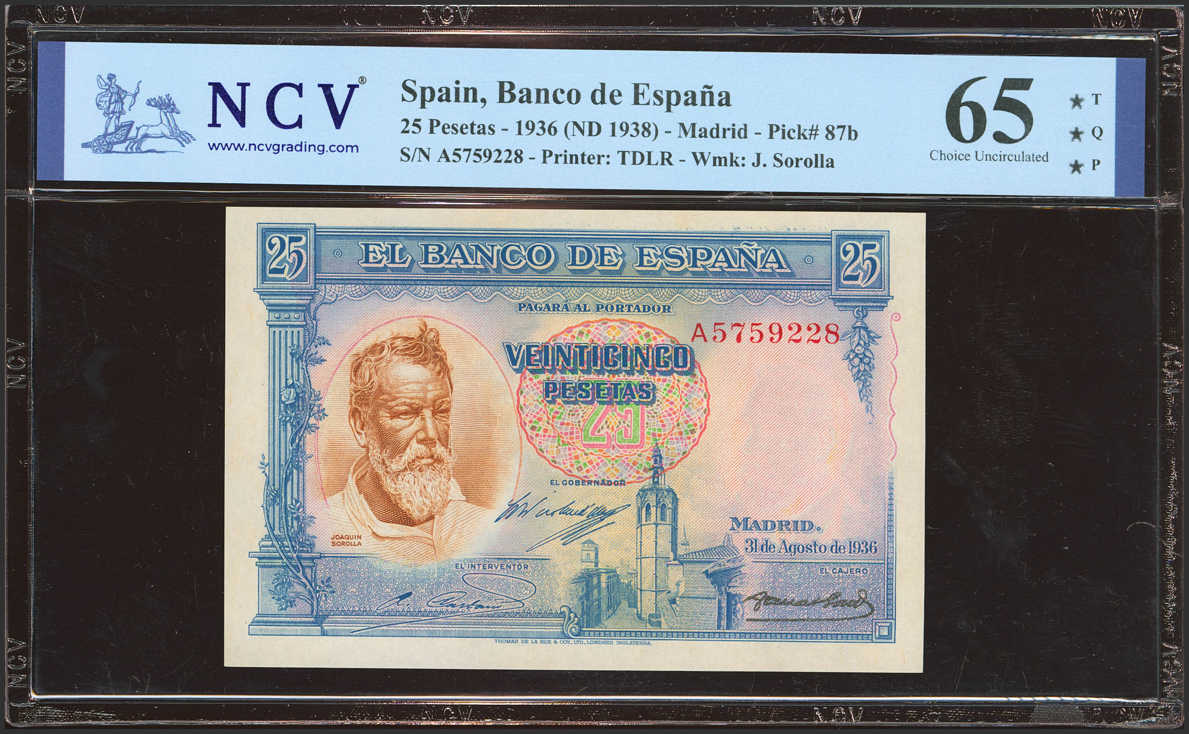 25 Pesetas. 31 de Agosto de 1936. Serie A. (Edifil 2023: 367a, Pick: 87b). Apresto original. SC. Encapsulado NCV65TQP.
